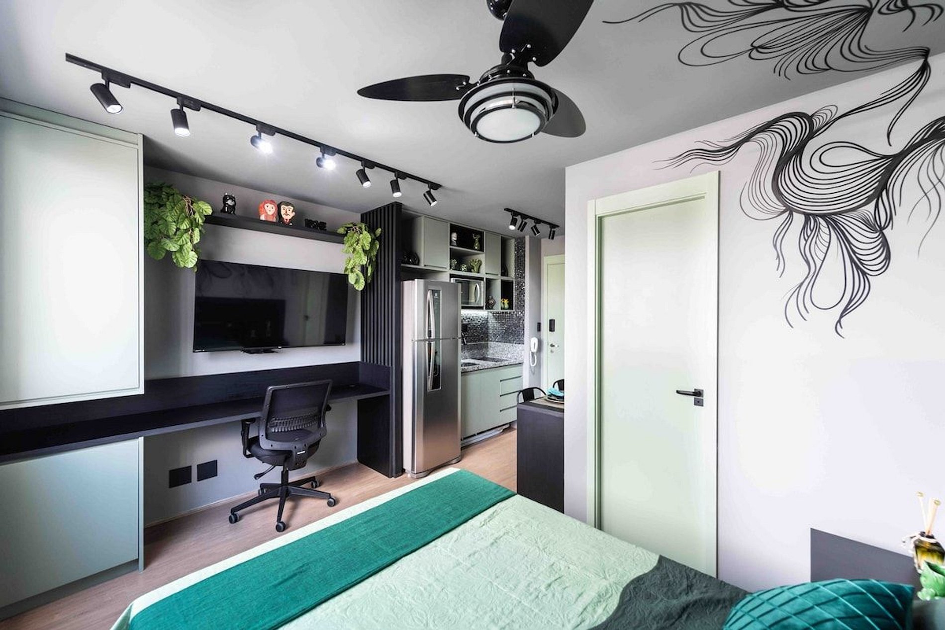 O espaço possui; -Internet Wi-fi de alta velocidade (300 megas). -Smart Tv de 50 polegadas. -Cozinha completa, com utensílios domésticos. -Enxoval completo de cama, como toalhas, lencóis e cobertas. -Persiana Blackout. Além disso o condomínio te dá acesso à excelentes alternativas de lazer, como; - Piscina adulto e infantil. -Academia -Quadra de futebol -Playground -Lavanderia compartilhada, caso precise será pago a parte.