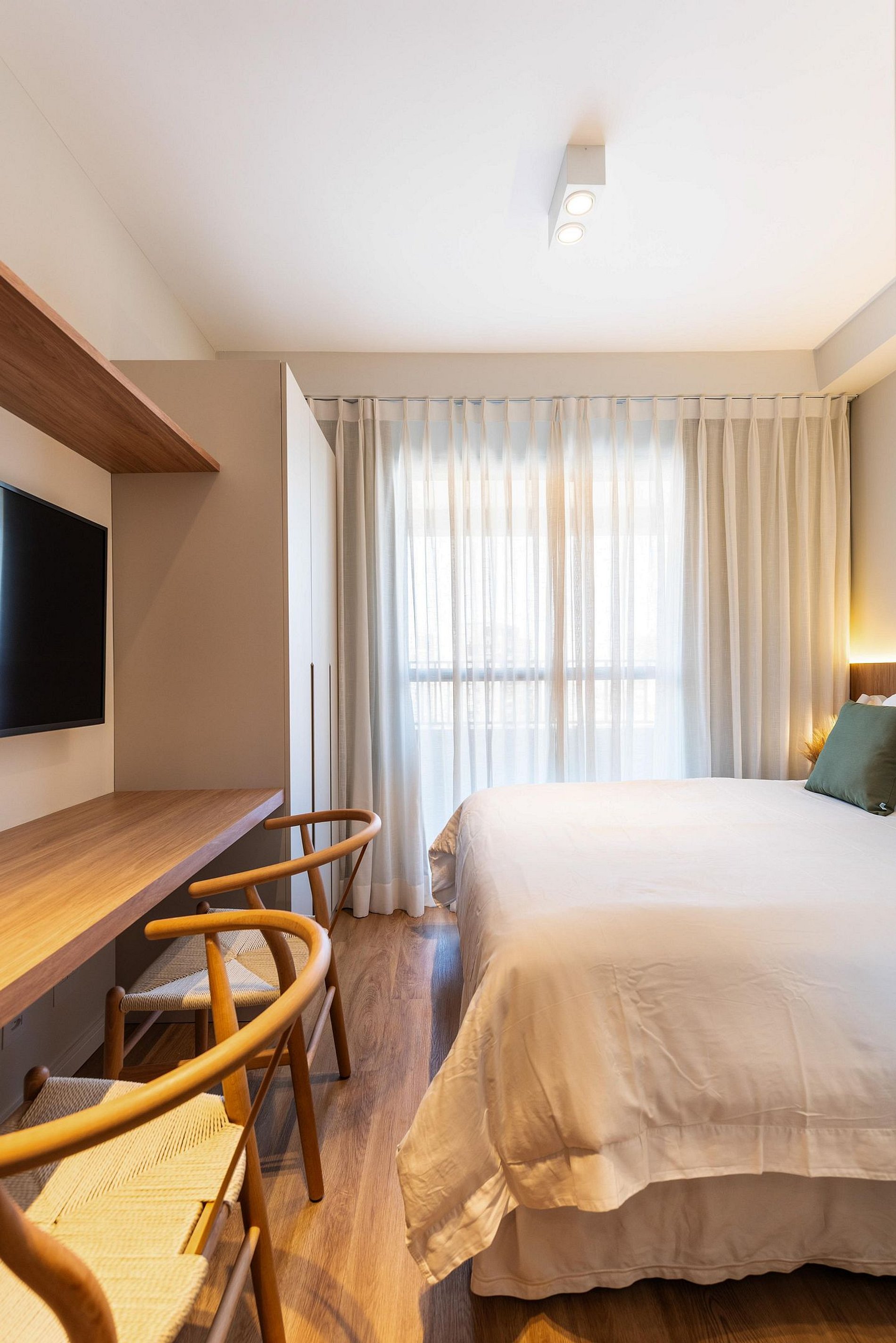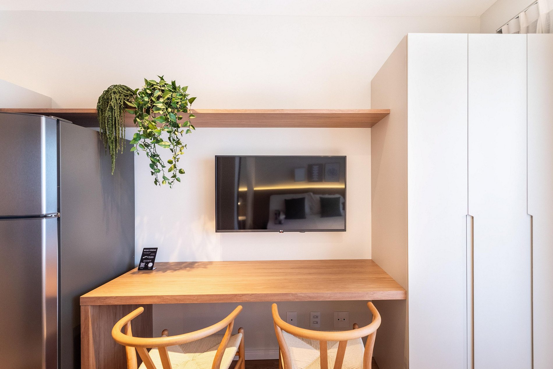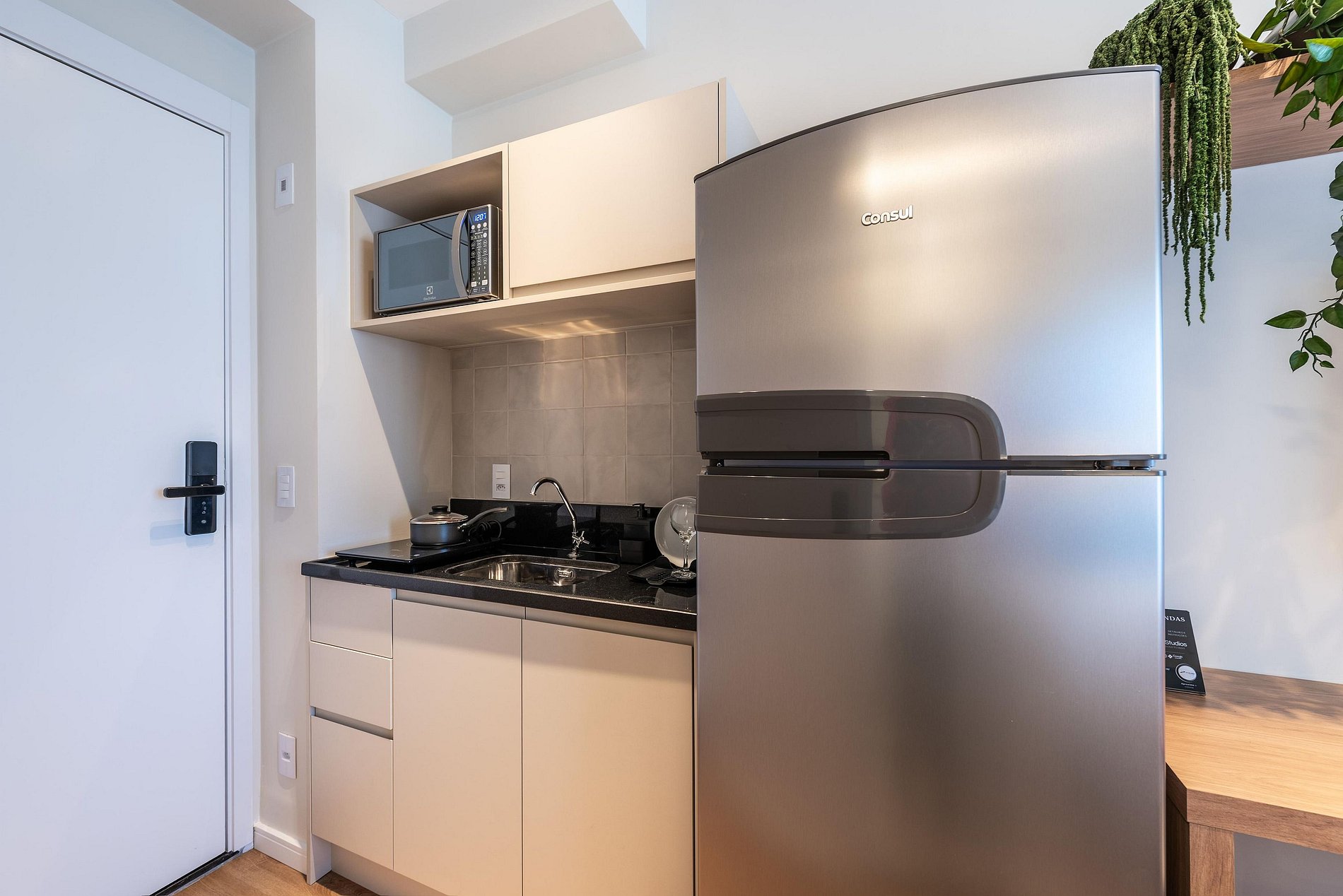 Apartamento compacto e elegante para 2 pessoas na Bela Vista, a poucos minutos do metrô e principais atrações do centro. Conta com ar‐condicionado, Wi‑Fi de alta velocidade , cozinha equipada (geladeira, micro‑ondas, cooktop, cafeteira, utensílios) e filtro de água. No condomínio: piscina, academia, lavanderia compartilhada e portaria 24h. Uma opção prática e confortável para turismo ou trabalho.