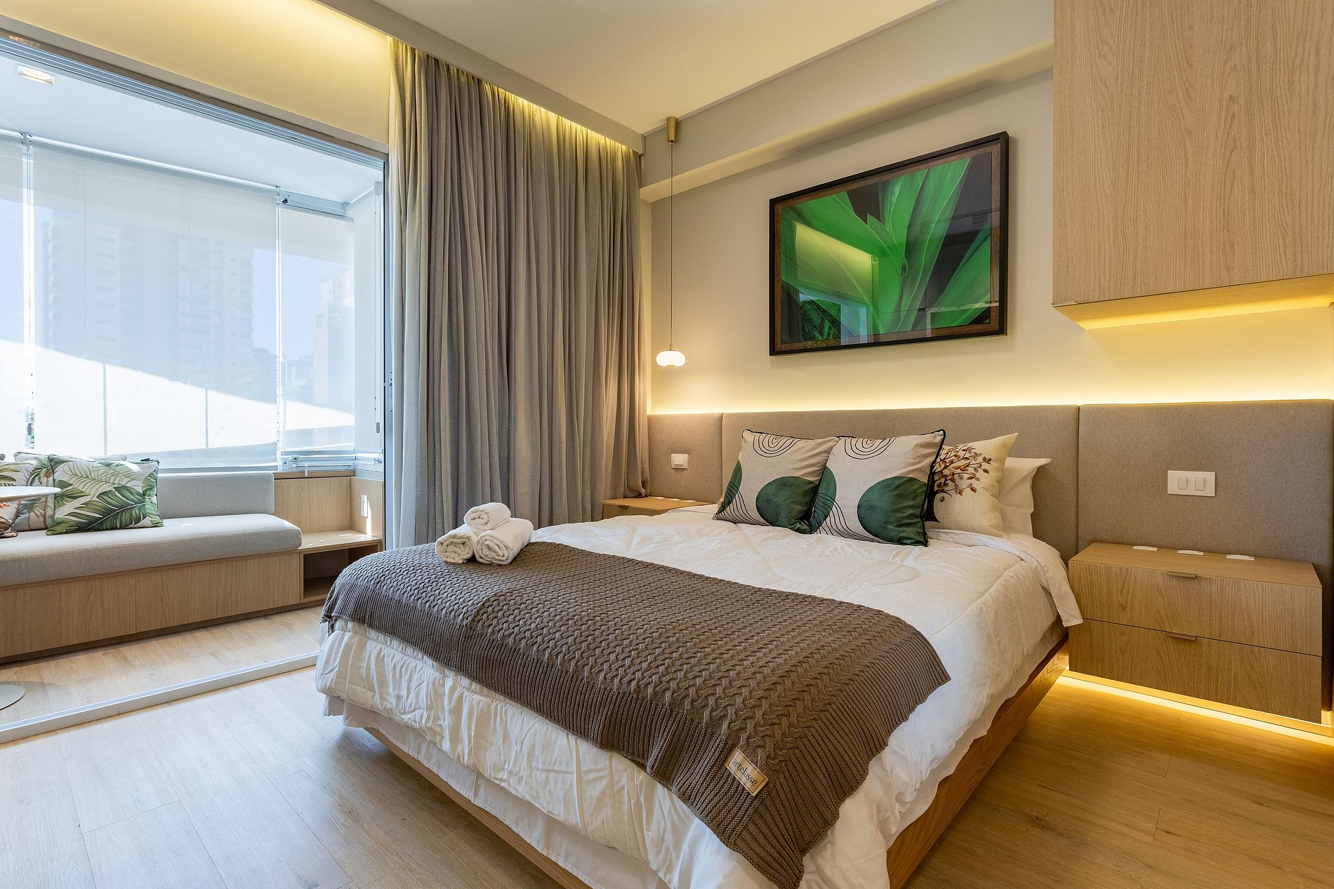 Desfrute de um estúdio sofisticado para 2 pessoas no condomínio Mode Perdizes (Rua Bartira 1003 – bairro de Perdizes, São Paulo). O apartamento oferece TV, geladeira, máquina de café, enxoval de hotelaria, ar‑condicionado e Wi‑Fi. No condomínio você encontra piscina, academia e lavanderia self‑service (com máquina OMO). Ponto privilegiado, próximo a metrô, comércio, lazer e com fácil acesso à mobilidade urbana.