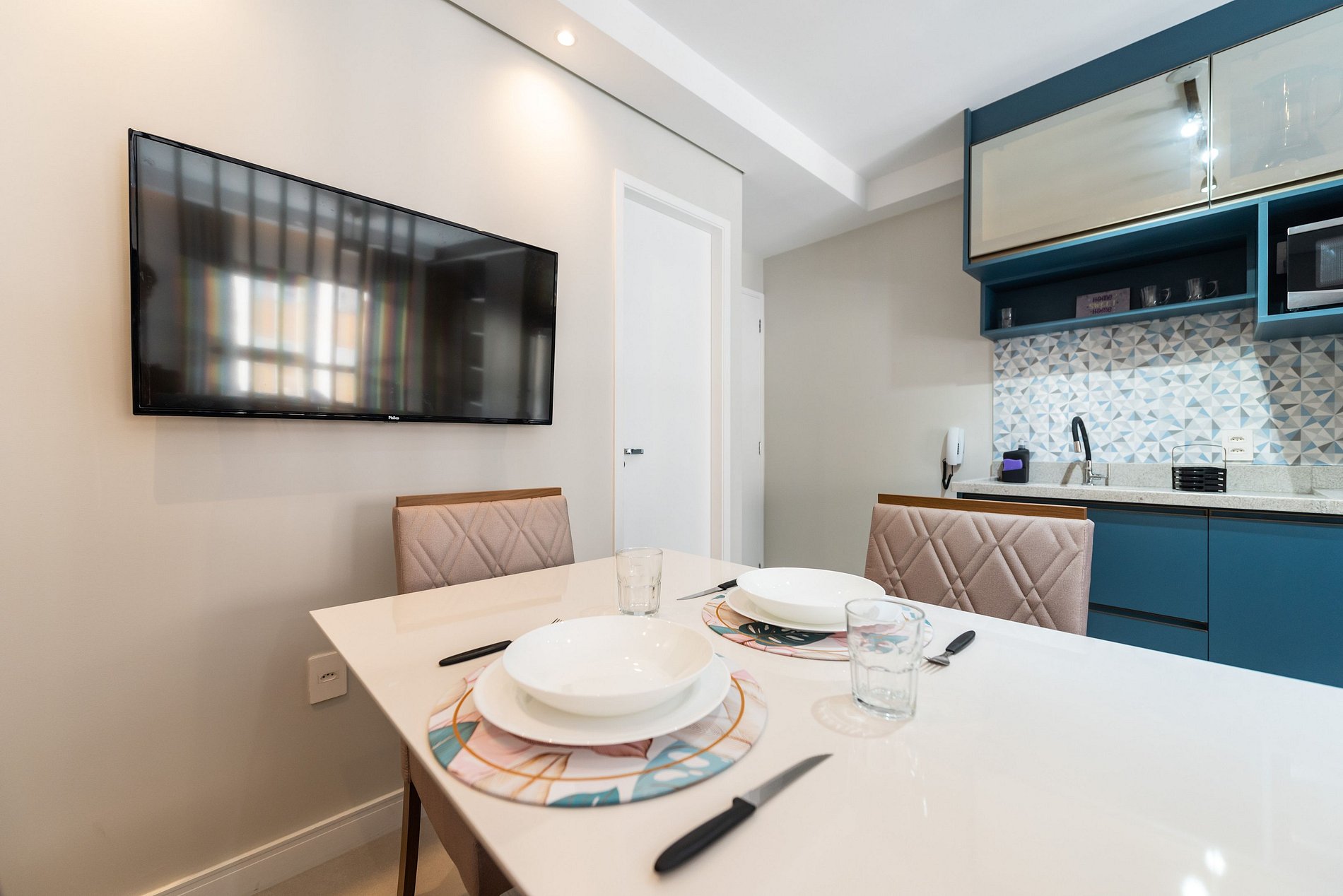 Bem-vindo ao nosso incrível estúdio de alto padrão! Este espaço estiloso e moderno oferece um ambiente completo para a sua estadia. Desfrute de comodidades premium, como TV smart, uma confortável cama de casal e um sofá cama para acomodar ainda mais pessoas. Conecte-se ao mundo com nosso WiFi de alta velocidade e compartilhe momentos especiais na espaçosa mesa de jantar.