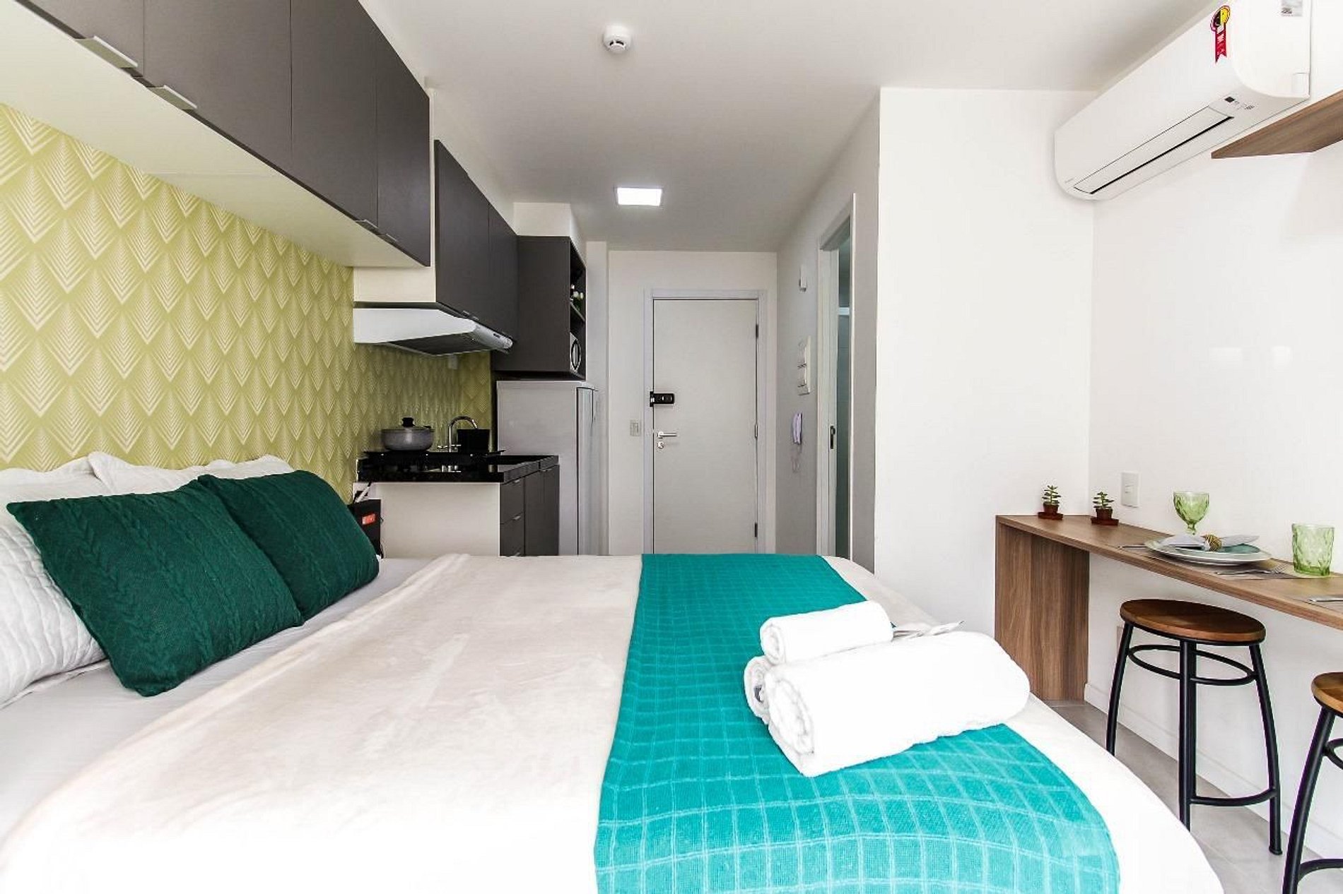 Ar condicionado em todo o apartamento para garantir o seu conforto, independentemente da temperatura exterior.