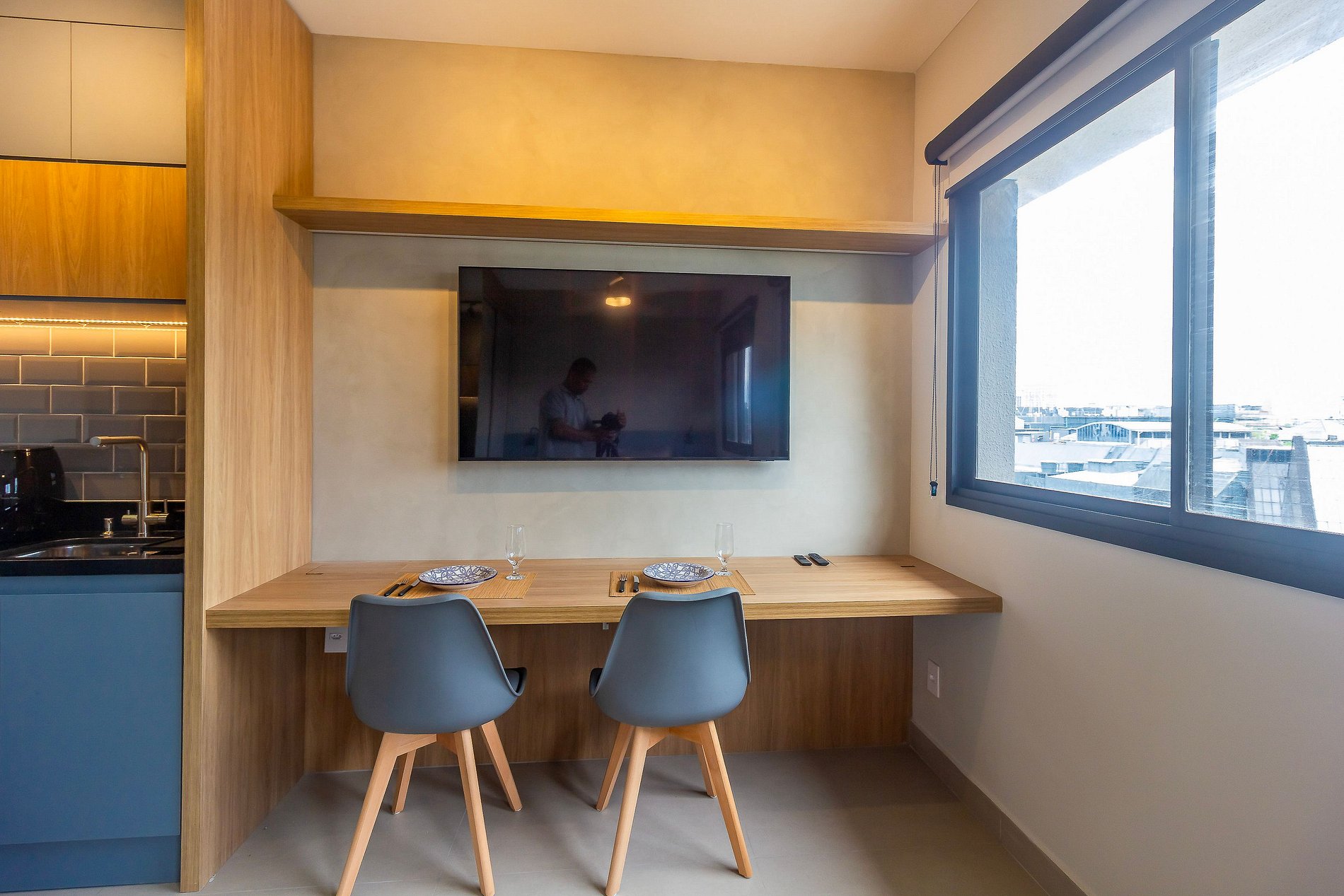 Apartamento Studio, ideal para quem busca modernidade e conforto. Ambiente super arejado, mas que também conta com ar-condicionado e ventilador de teto super silenciosos. Portaria 24h para a sua segurança, academia equipada, piscina externa e serviço de lavanderia OMO.