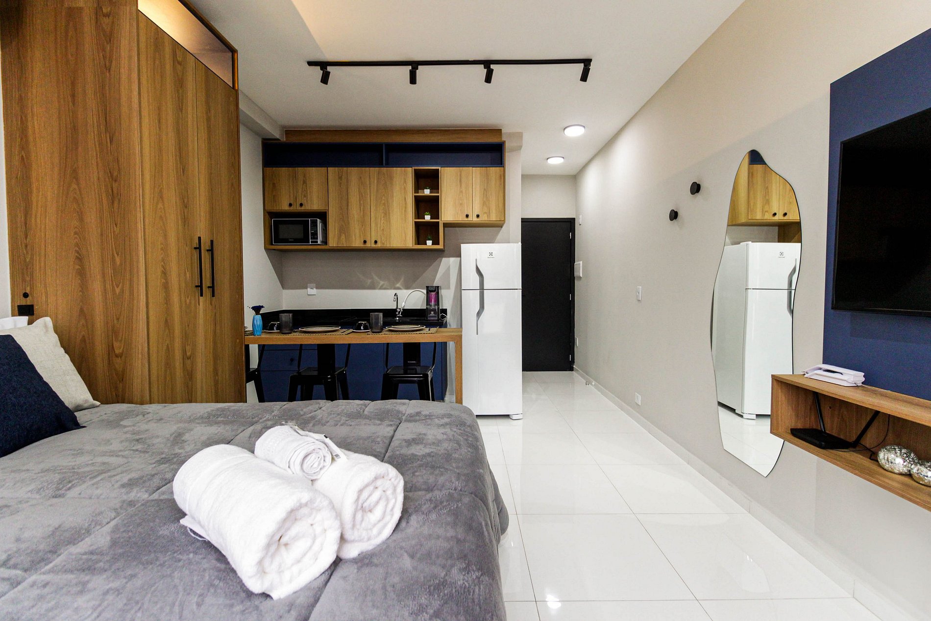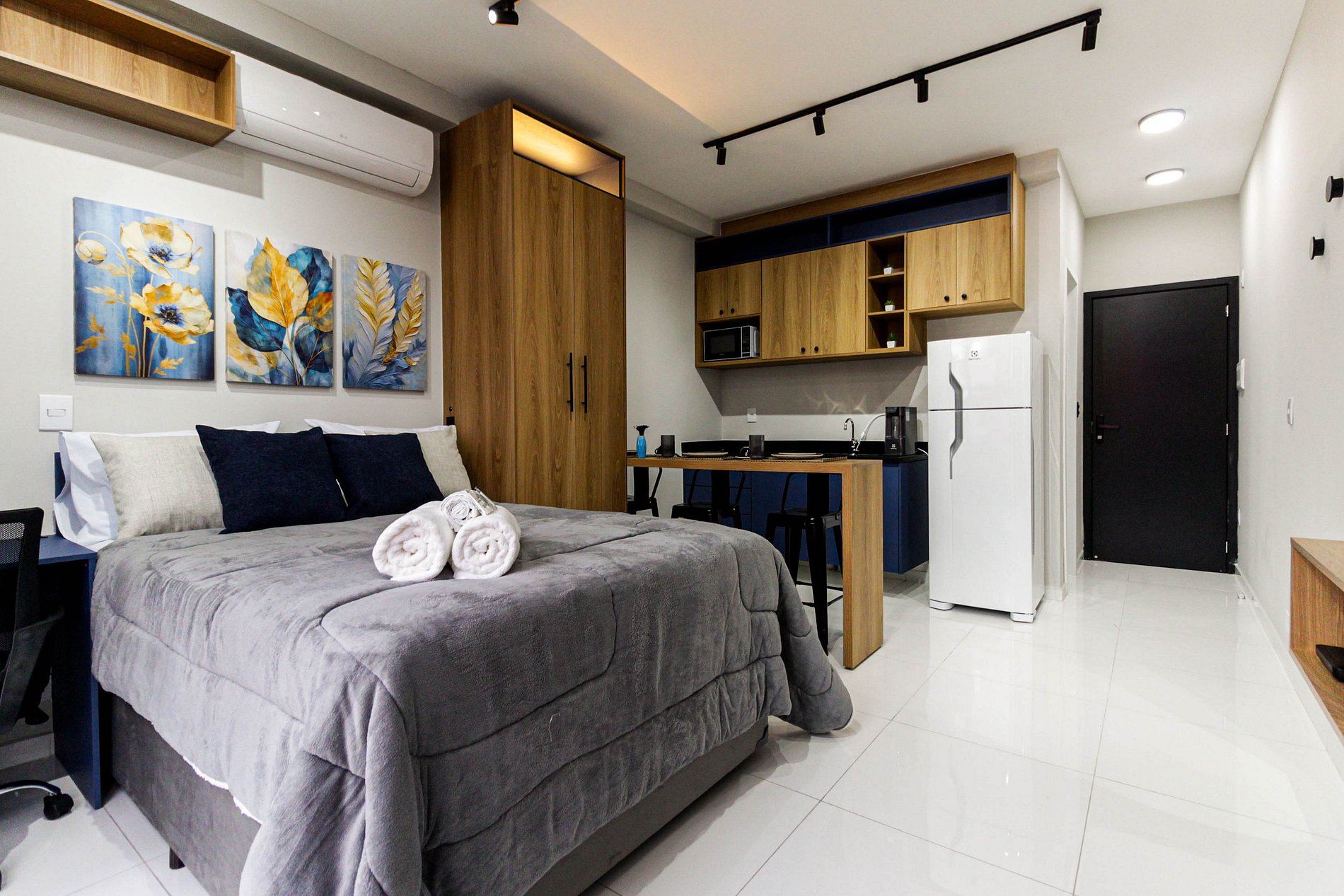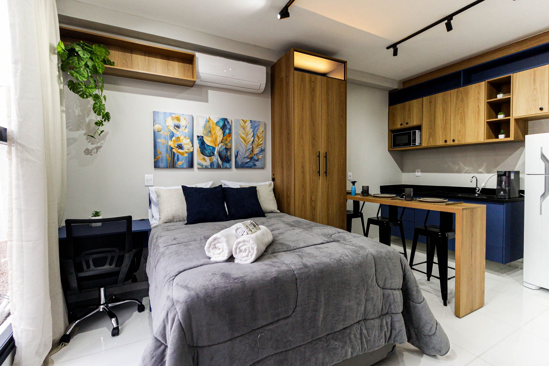 Este studio moderno foi planejado para oferecer uma experiência confortável e prática, ideal para quem visita São Paulo a trabalho ou lazer:
