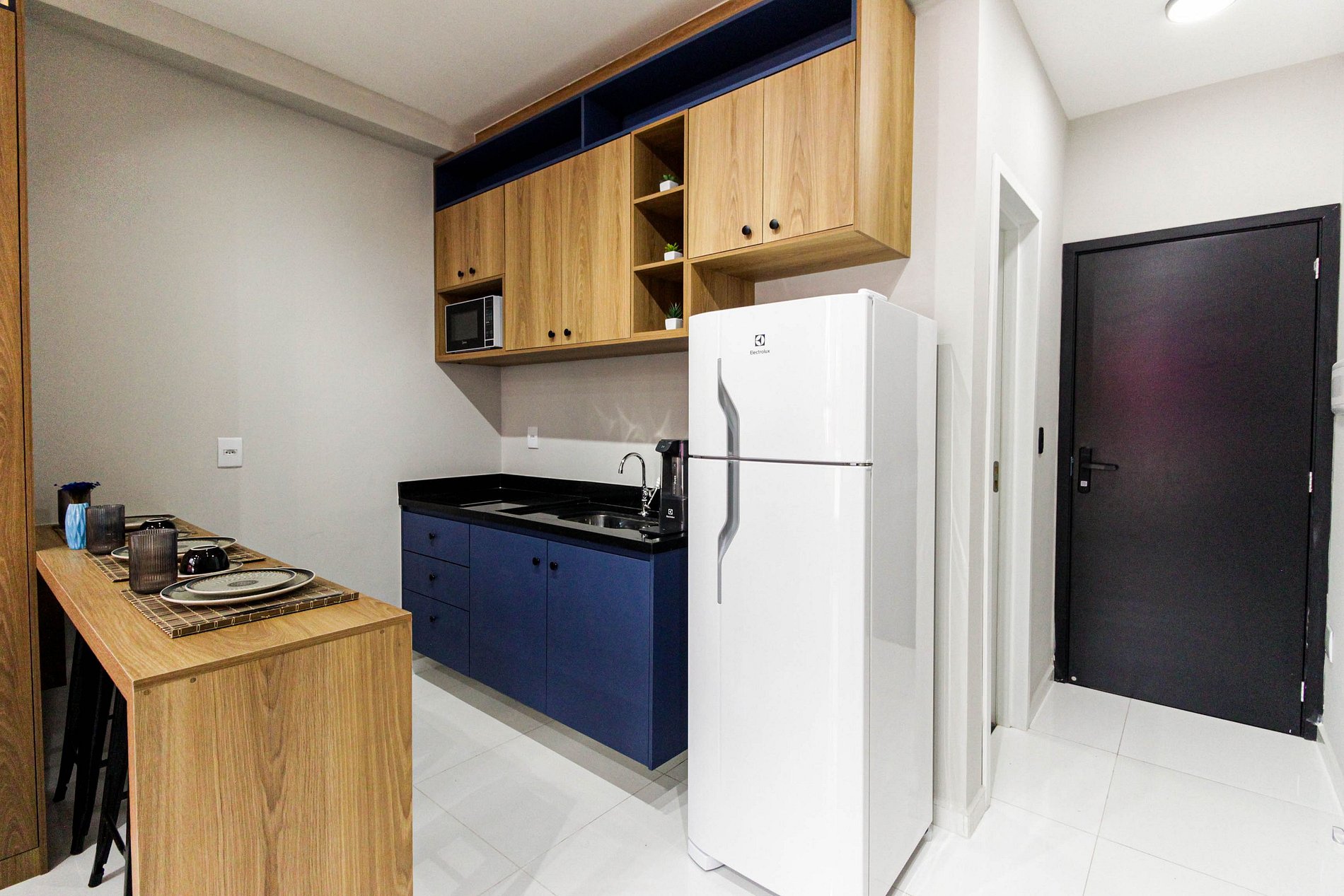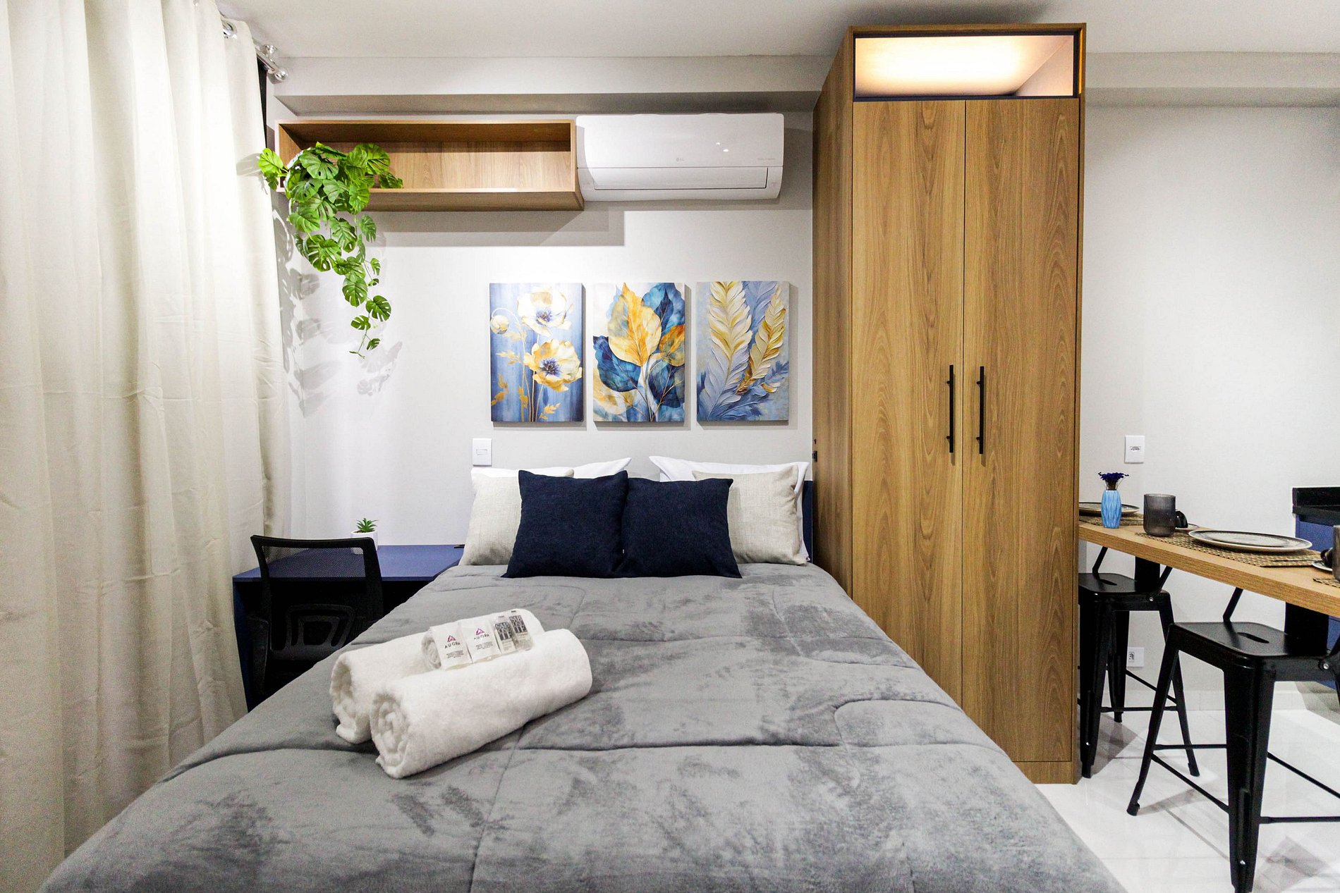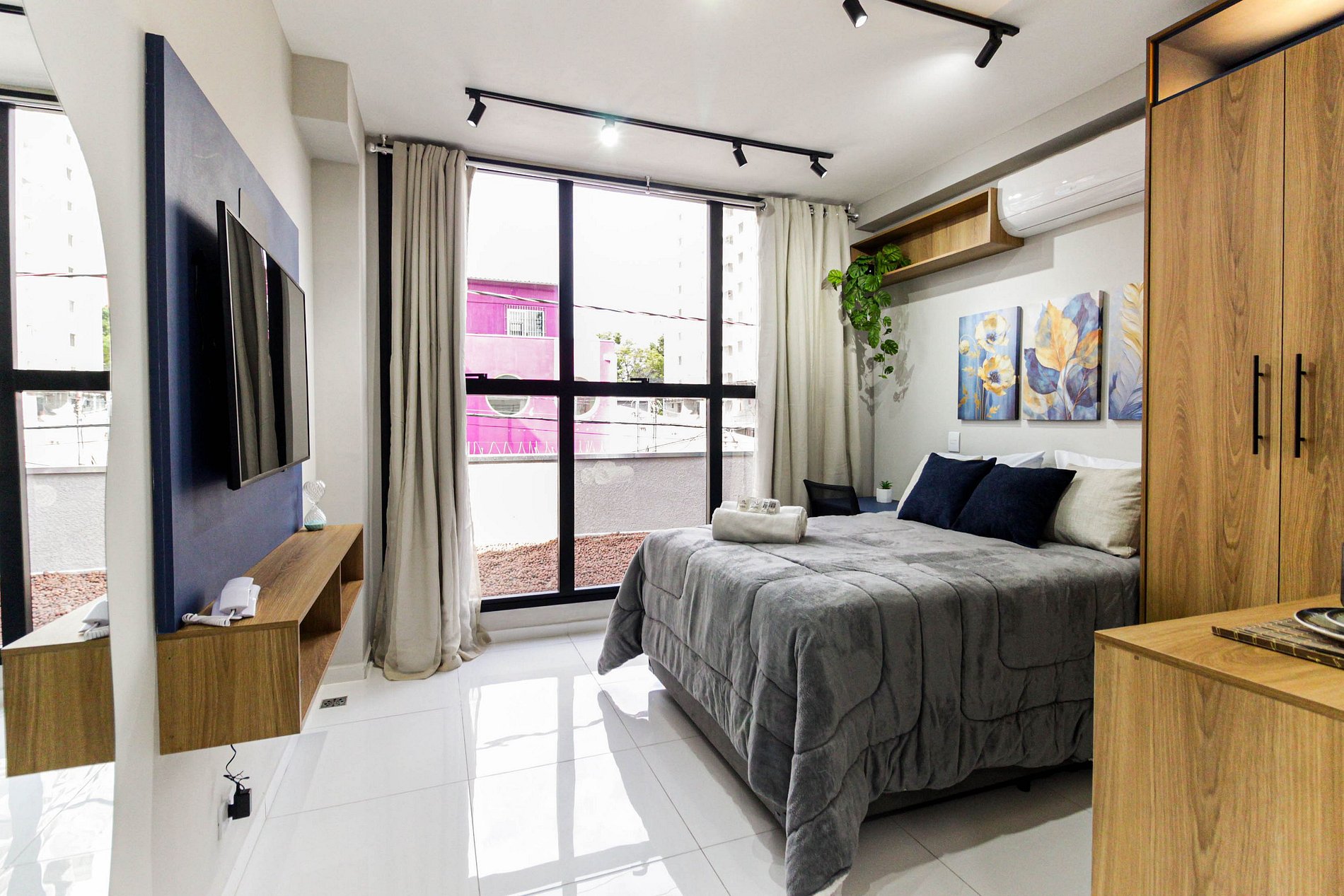 Este studio moderno foi planejado para oferecer uma experiência confortável e prática, ideal para quem visita São Paulo a trabalho ou lazer: