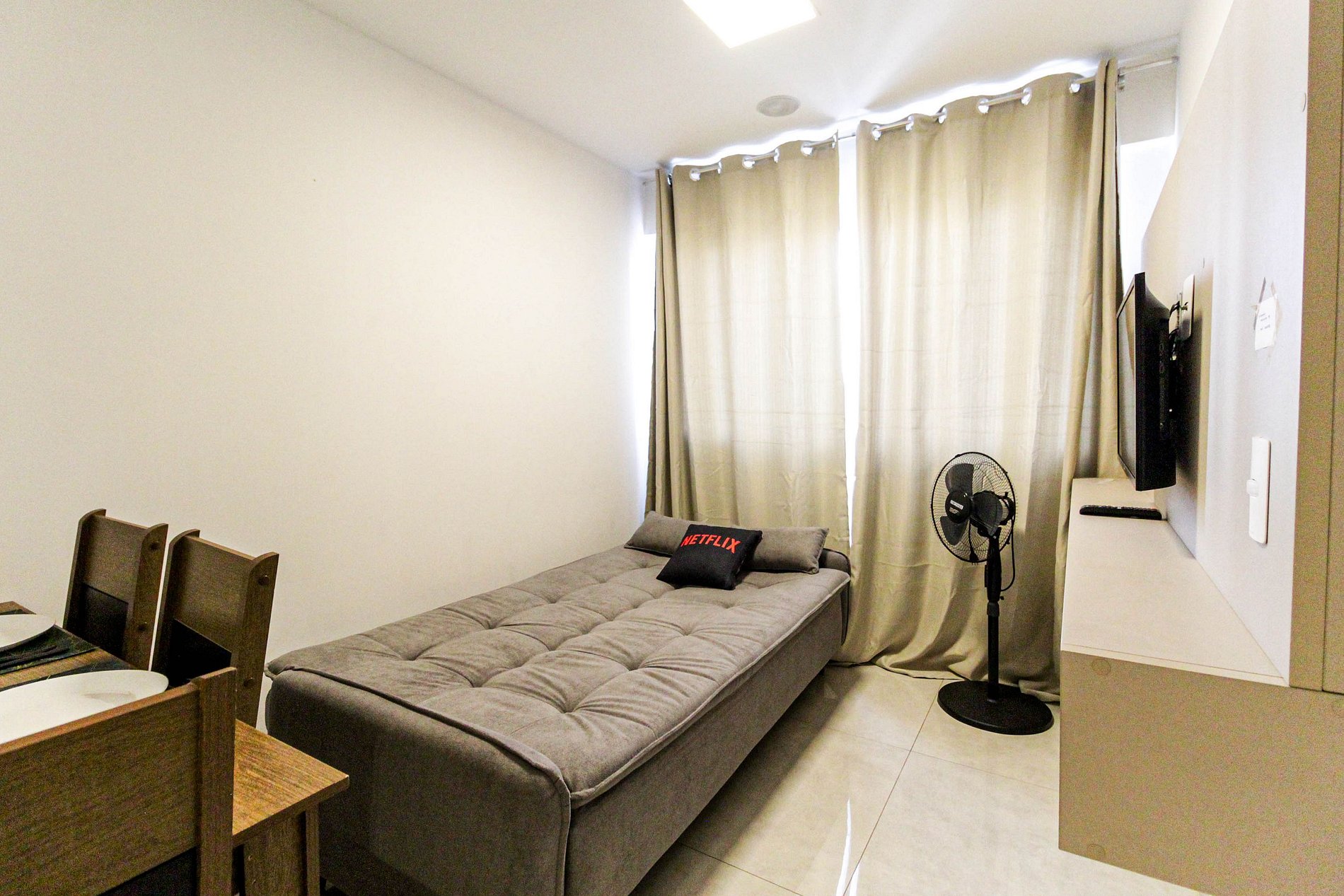 Wi-Fi: O apartamento oferece internet Wi-Fi sem custo adicional. Entretanto, por se tratar de serviço de terceiros (operadora), eventuais falhas ou instabilidades não geram reembolso ou desconto no valor da estadia.