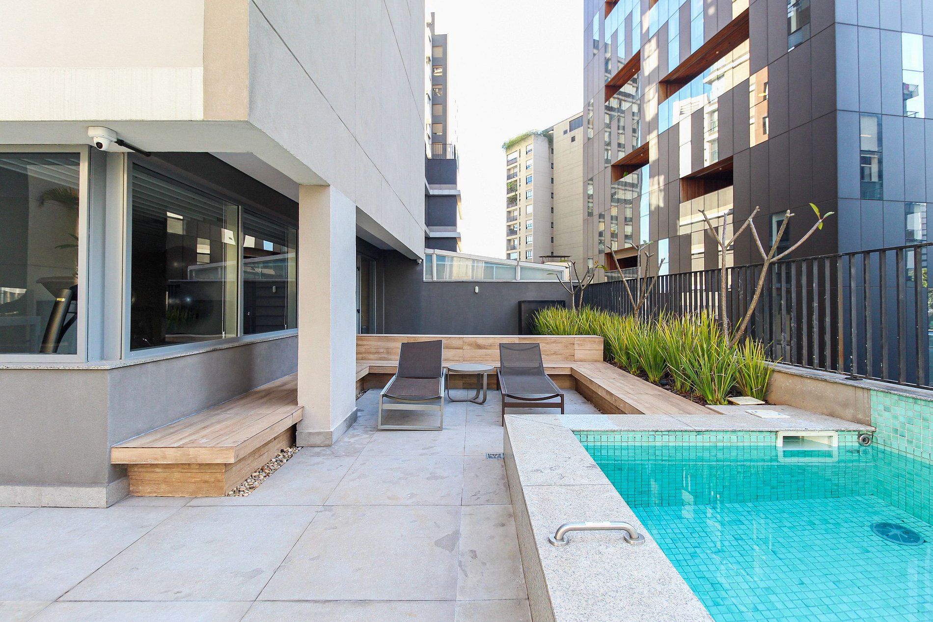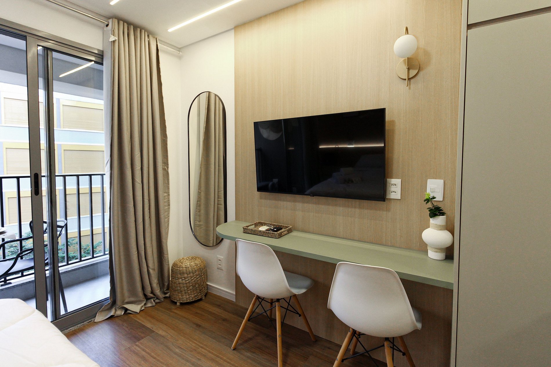 Studio acolhedor para duas pessoas, com cama de casal, ar‑condicionado e varanda privativa. Desfrute de piscina, academia e lavanderia no condomínio. Localizado na Rua da Harmonia, a poucos passos do metrô Vila Madalena, Beco do Batman, bares, cafés e centros culturais. Ideal para quem quer conforto, praticidade e explorar a vida boêmia e criativa da cidade.