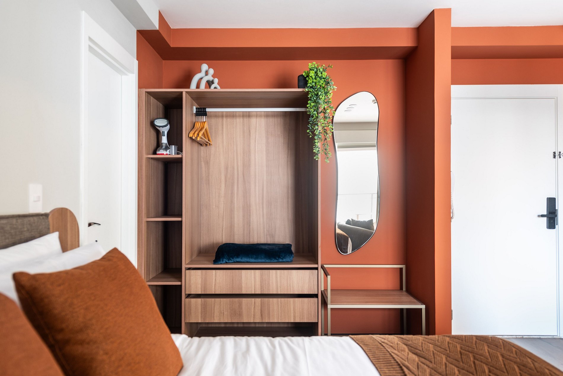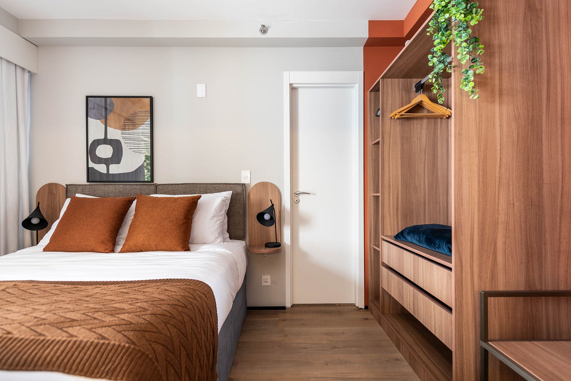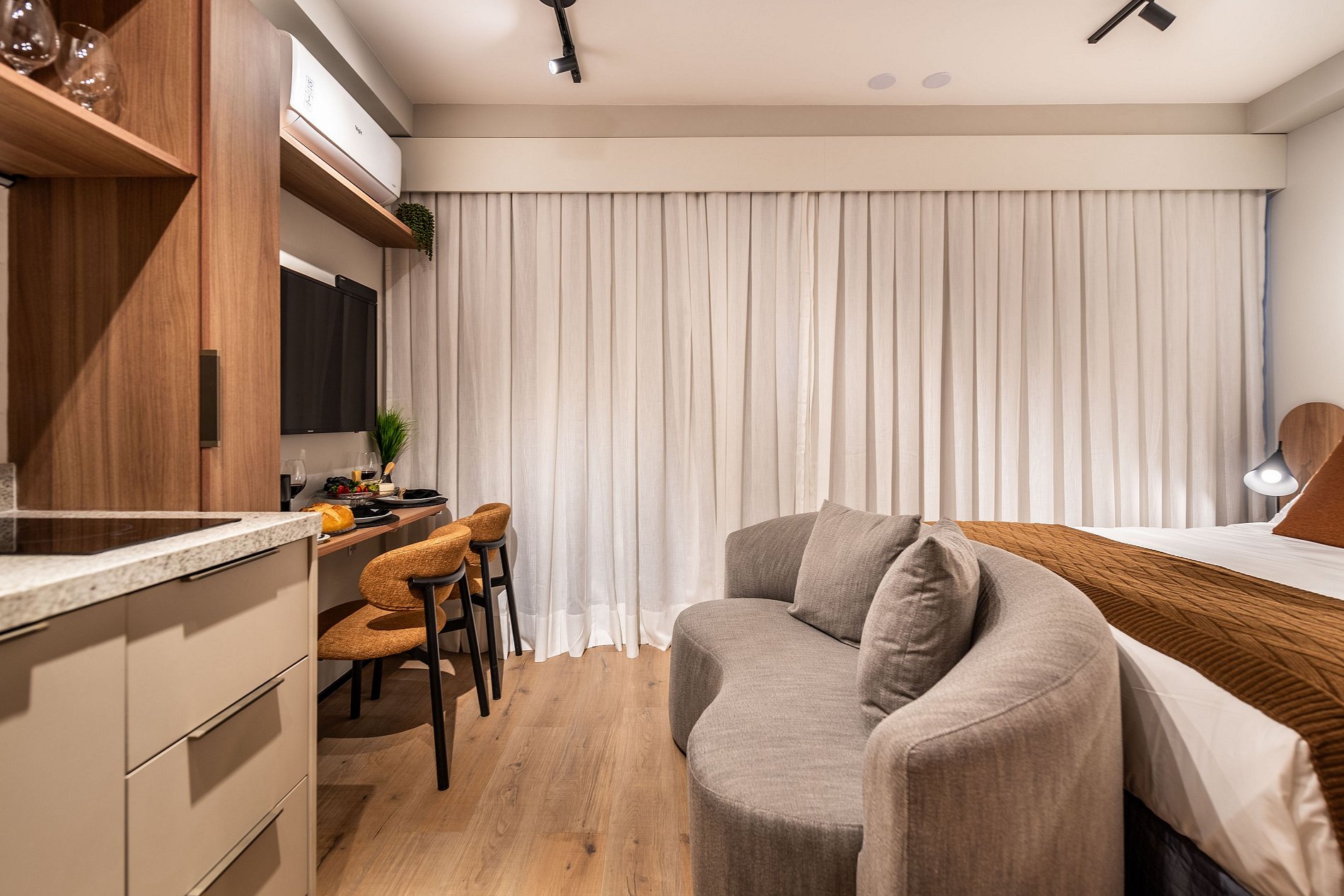 Studio moderno e sofisticado para até 2 pessoas, com cama queen, ar-condicionado, cozinha equipada, máquina de café e enxoval de hotelaria. O condomínio conta com lavanderia. Localizado em área nobre, a poucos minutos do Allianz Parque, Bourbon Shopping, Sesc Pompeia e Parque da Água Branca. Próximo aos hospitais São Camilo e Samaritano e rodeado por bares e restaurantes renomados.