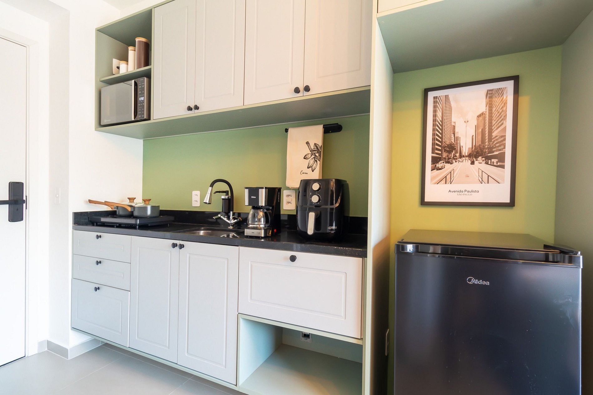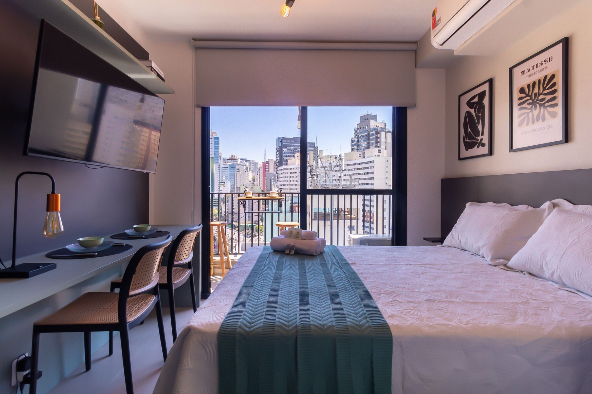 Descubra o conforto e praticidade! Este studio completo acomoda até 2 pessoas e está localizado em Bela Vista, a apenas 650 m do metrô, uma das regiões mais vibrantes da cidade. Ideal para turismo, trabalho ou estudos. Conforto garantido • Cama de casal + colchão de solteiro extra • Ar-condicionado e Wi-Fi de alta velocidade • Cozinha equipada com cooktop, micro-ondas, cafeteira, mixer e air fryer Condomínio moderno e seguro • Piscina • Academia e lavanderia • Espaço coworking • Portaria 24h