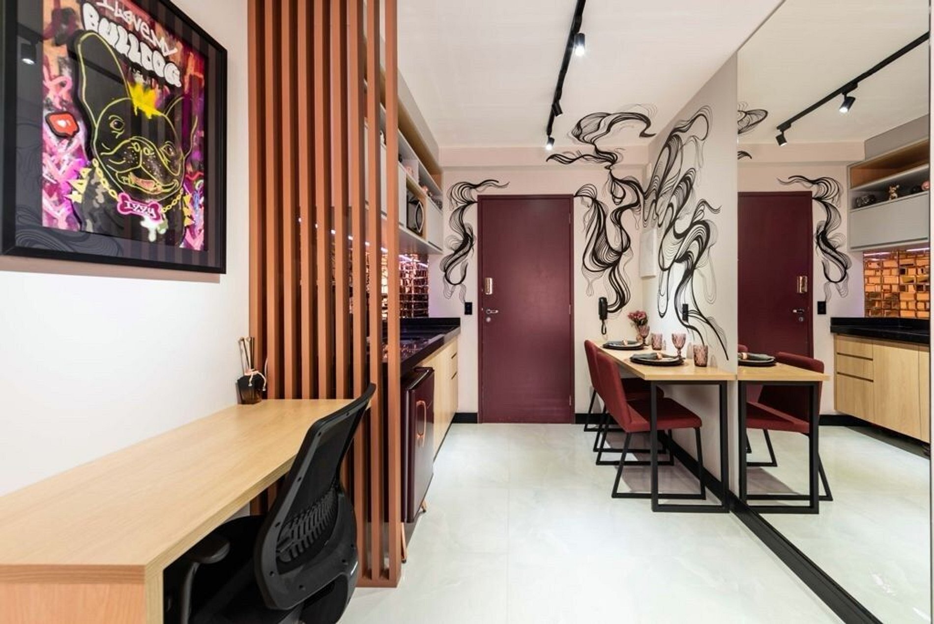 Studio de alto padrão, moderno e estiloso, com TV de 50 polegadas, cama queen, internet rápida, espaço home office com cadeira confortável e cadeira de balanço para fotos especiais. Cozinha completa com fogão de indução, filtro de água gelada e natural e cafeteira Nespresso. Viva a energia vibrante da Frei Caneca, aproveitando cada detalhe pensado para proporcionar uma experiência única e autêntica. Reserve já!