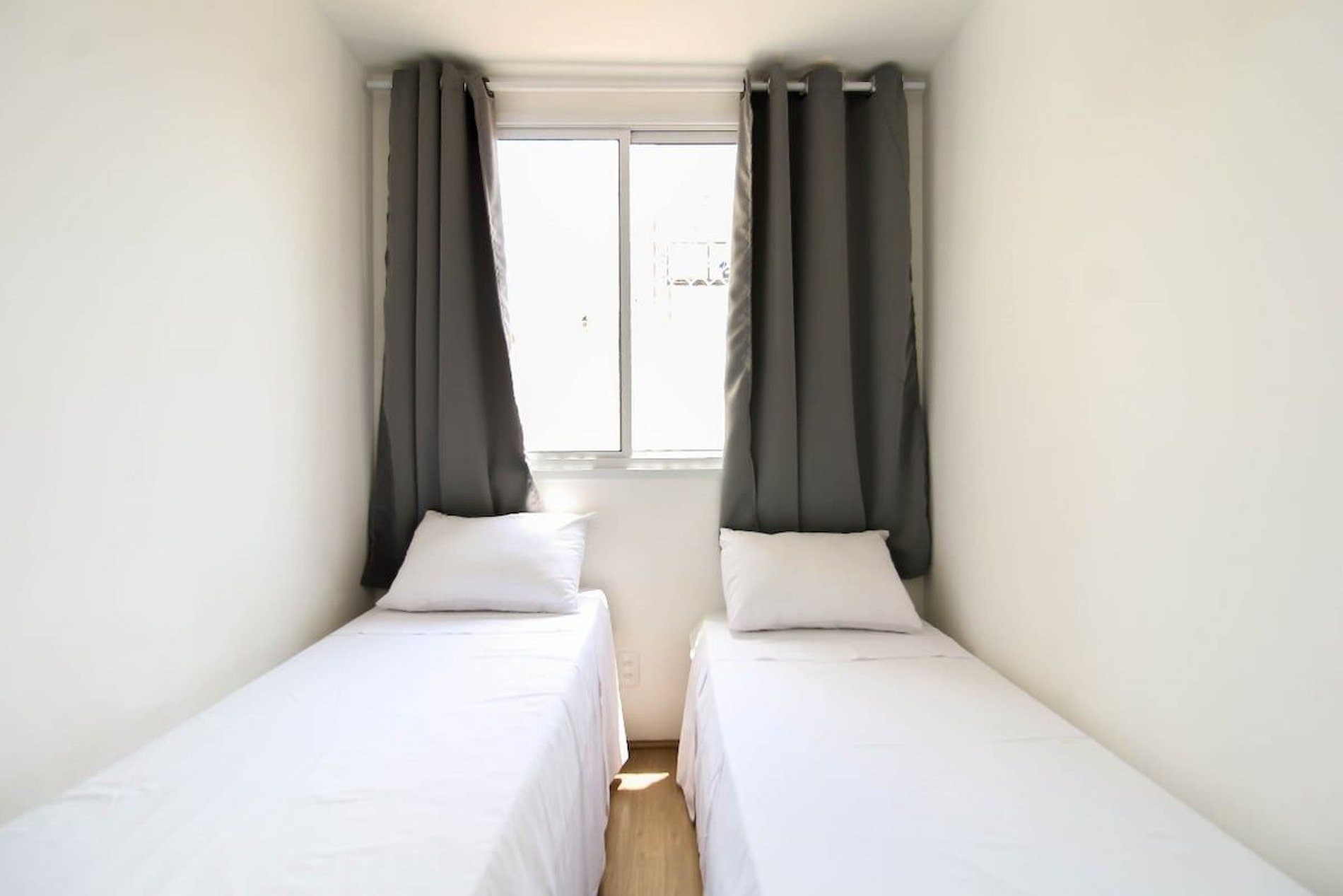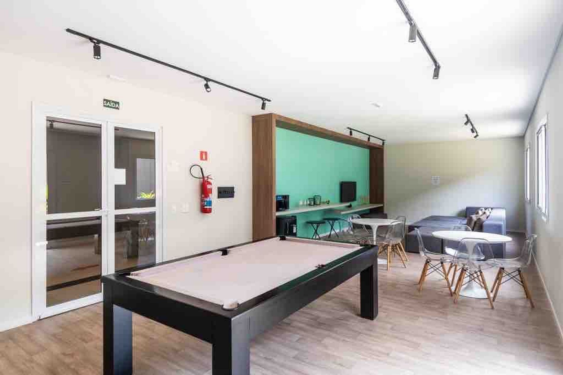 O espaço possui; -Internet Wi-fi de alta velocidade (300 megas). -Smart Tv de 32 polegadas. -Cozinha completa, com utensílios domésticos. -Enxoval completo de cama, como toalhas, lencóis e cobertas. -Cortinas. Além disso o condomínio te dá acesso à excelentes alternativas de lazer, como; - Piscina adulto e infantil. -Academia -Quadra de futebol -Playground -Lavanderia compartilhada, caso precise será pago a parte.