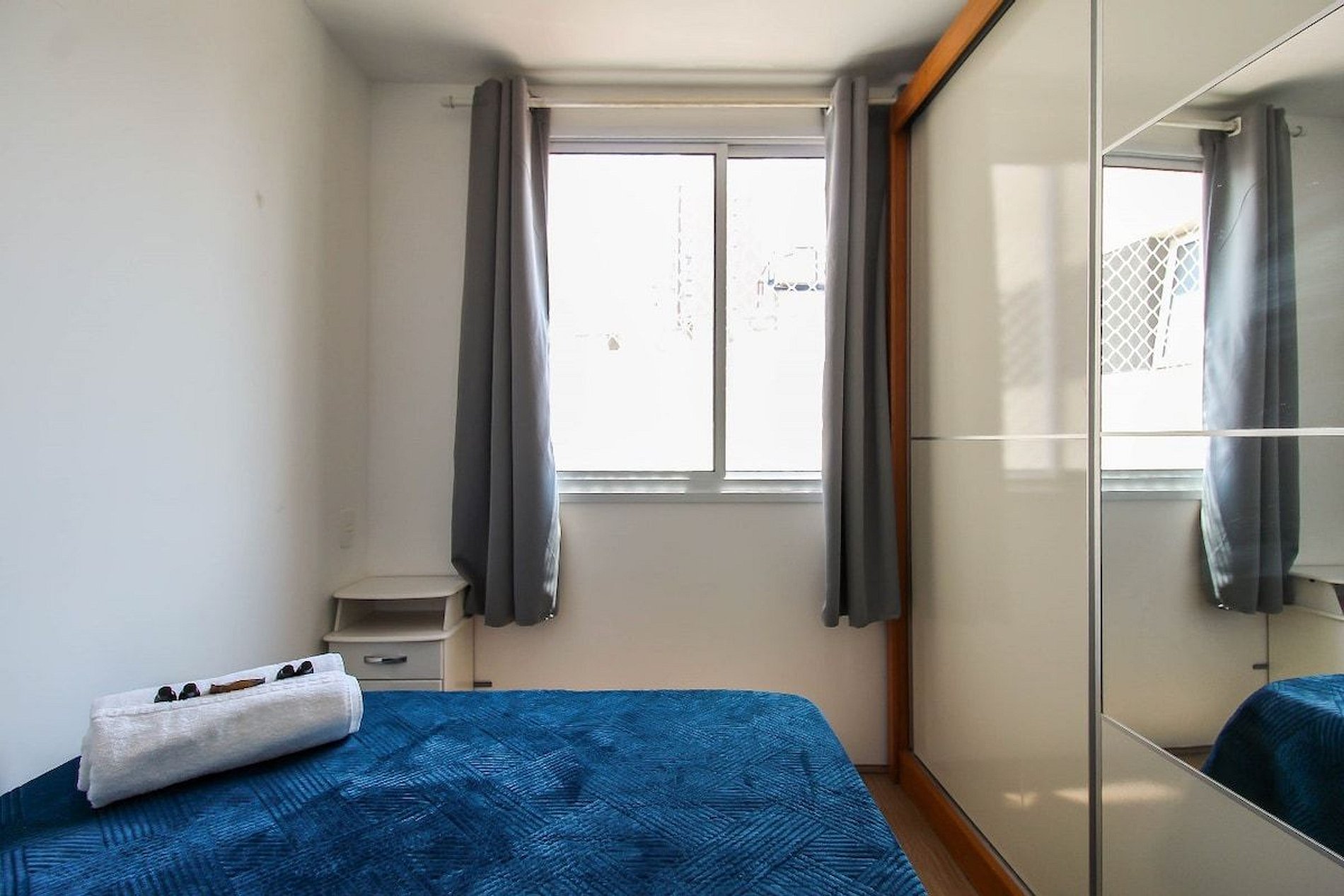 O espaço possui; -Internet Wi-fi de alta velocidade (300 megas). -Smart Tv de 32 polegadas. -Cozinha completa, com utensílios domésticos. -Enxoval completo de cama, como toalhas, lencóis e cobertas. -Cortinas. Além disso o condomínio te dá acesso à excelentes alternativas de lazer, como; - Piscina adulto e infantil. -Academia -Quadra de futebol -Playground -Lavanderia compartilhada, caso precise será pago a parte.