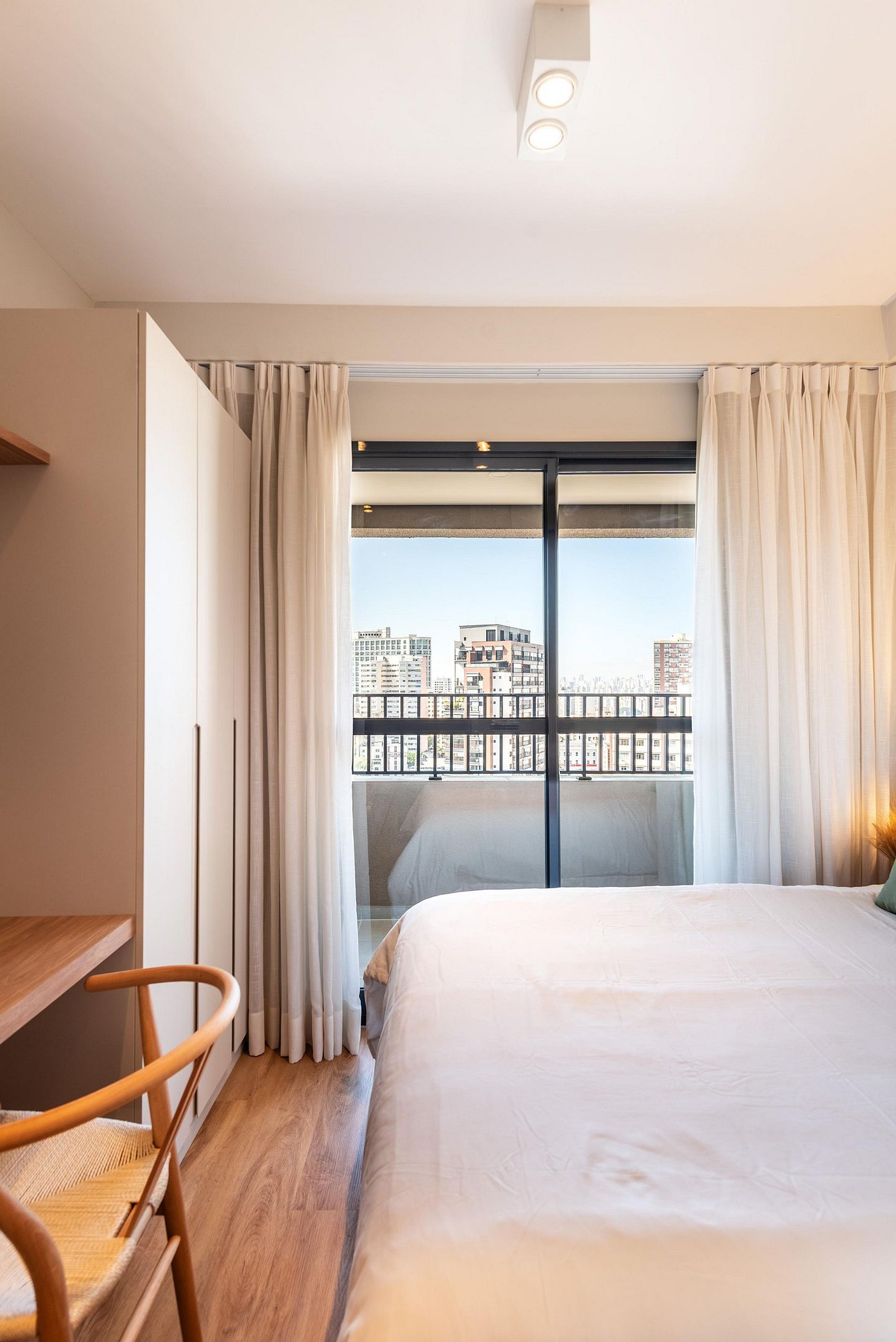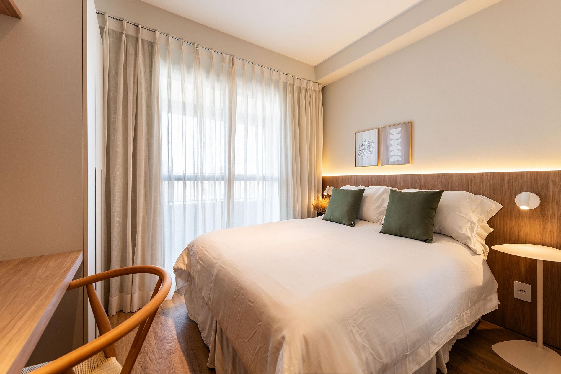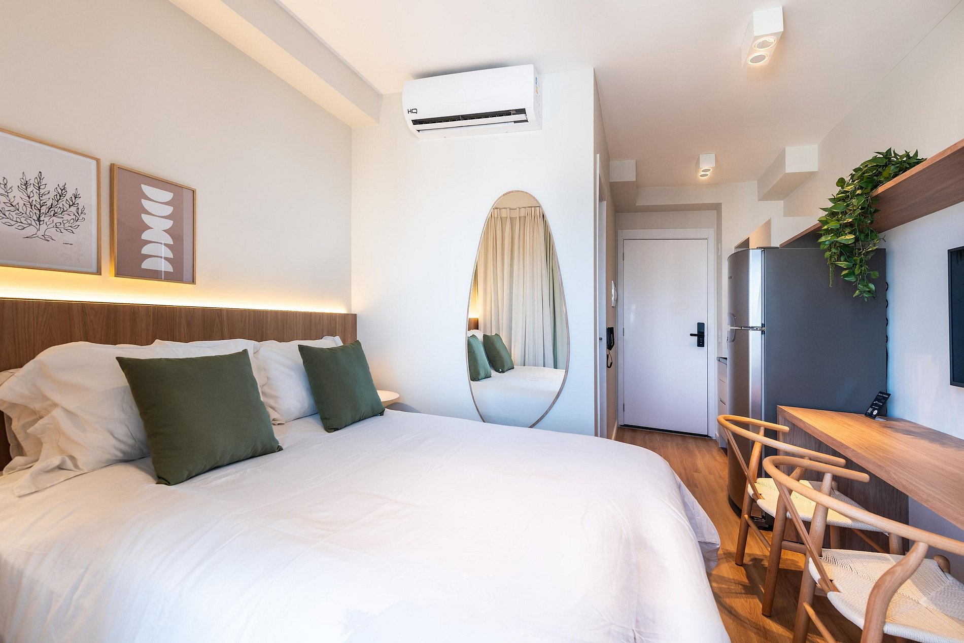 Apartamento compacto e elegante para 2 pessoas na Bela Vista, a poucos minutos do metrô e principais atrações do centro. Conta com ar‐condicionado, Wi‑Fi de alta velocidade , cozinha equipada (geladeira, micro‑ondas, cooktop, cafeteira, utensílios) e filtro de água. No condomínio: piscina, academia, lavanderia compartilhada e portaria 24h. Uma opção prática e confortável para turismo ou trabalho.