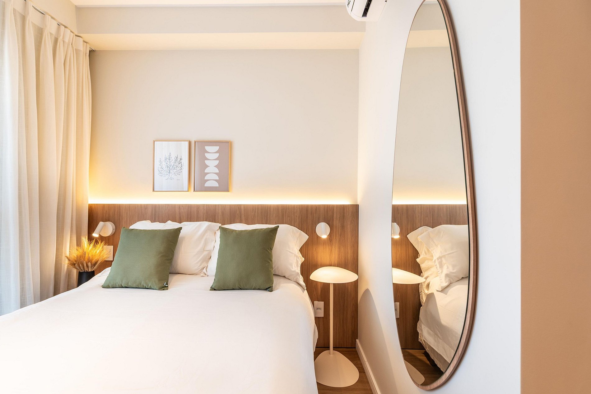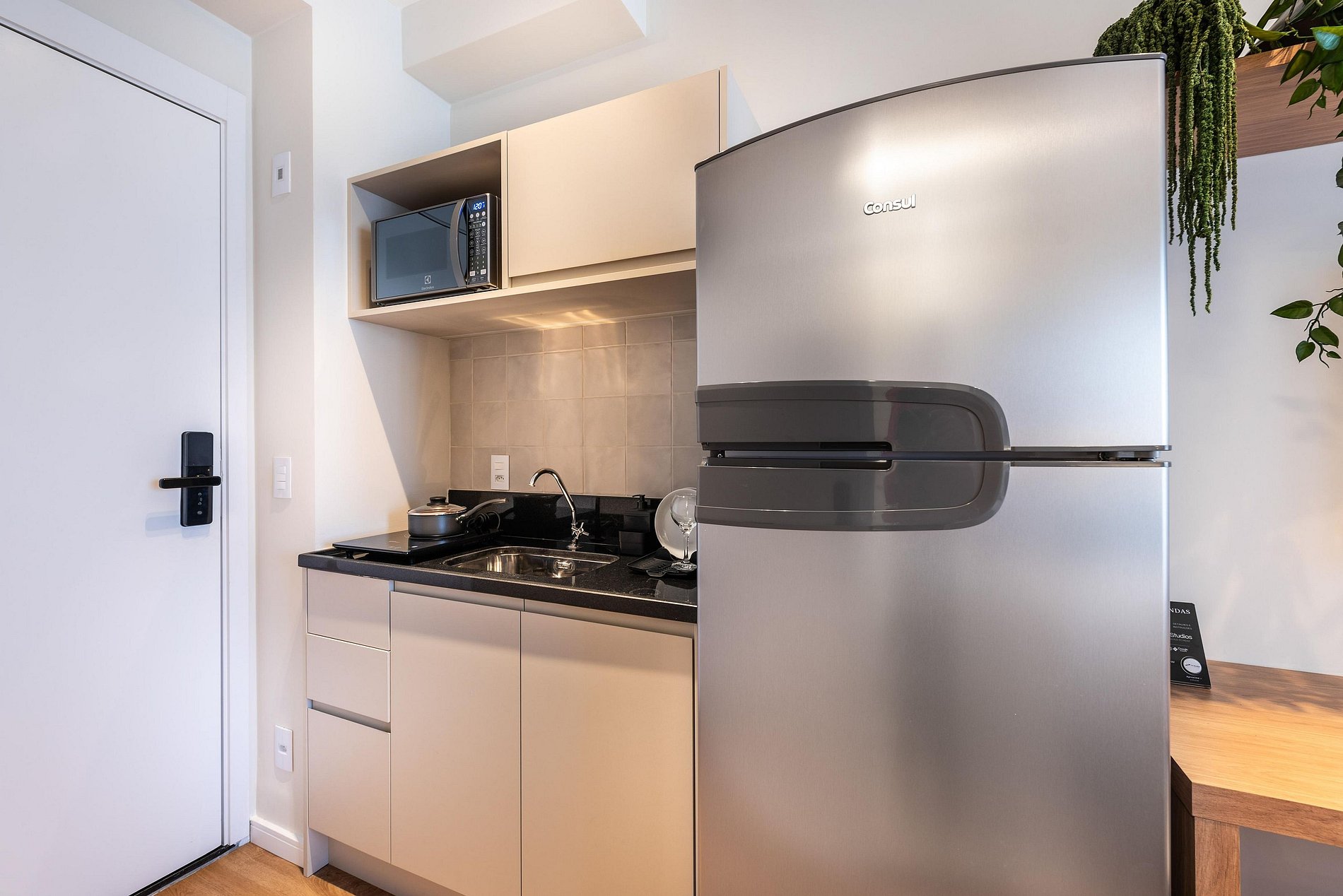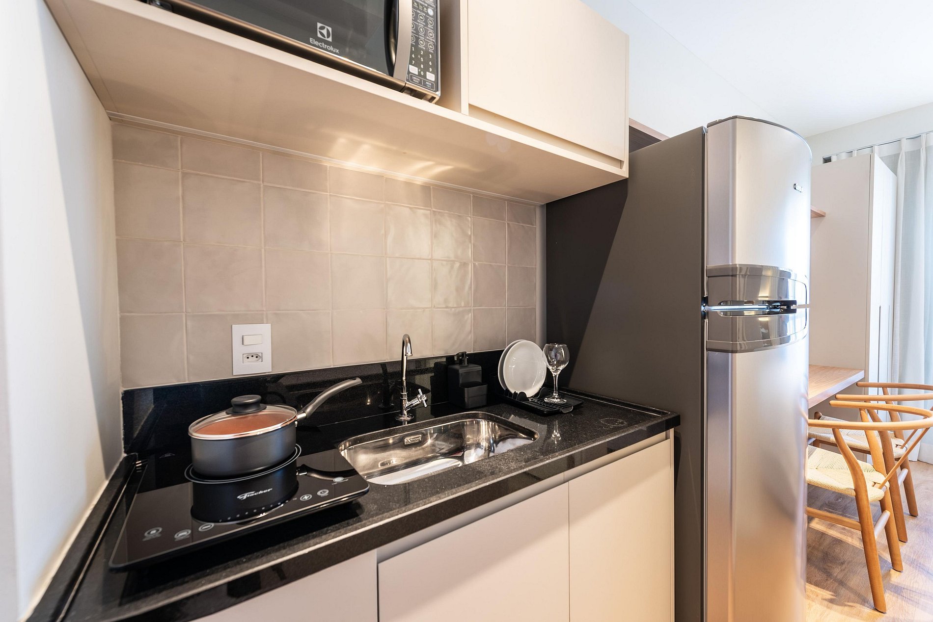 Apartamento compacto e elegante para 2 pessoas na Bela Vista, a poucos minutos do metrô e principais atrações do centro. Conta com ar‐condicionado, Wi‑Fi de alta velocidade , cozinha equipada (geladeira, micro‑ondas, cooktop, cafeteira, utensílios) e filtro de água. No condomínio: piscina, academia, lavanderia compartilhada e portaria 24h. Uma opção prática e confortável para turismo ou trabalho.