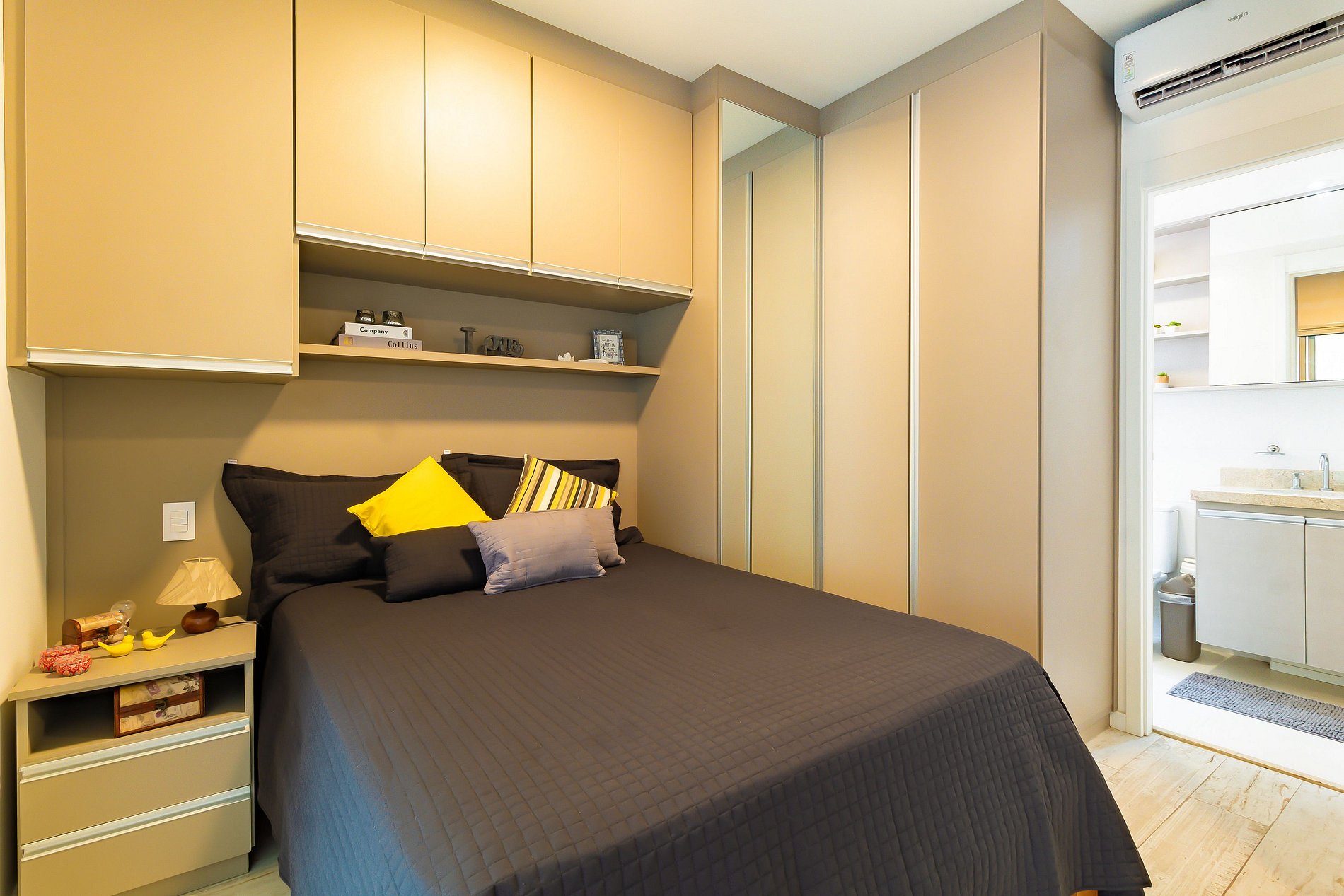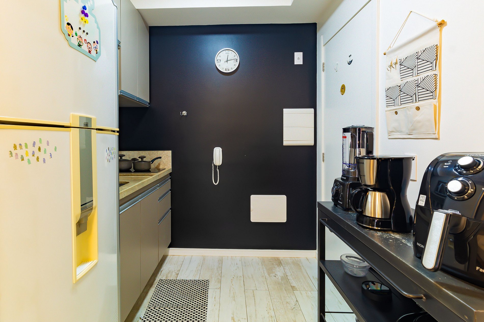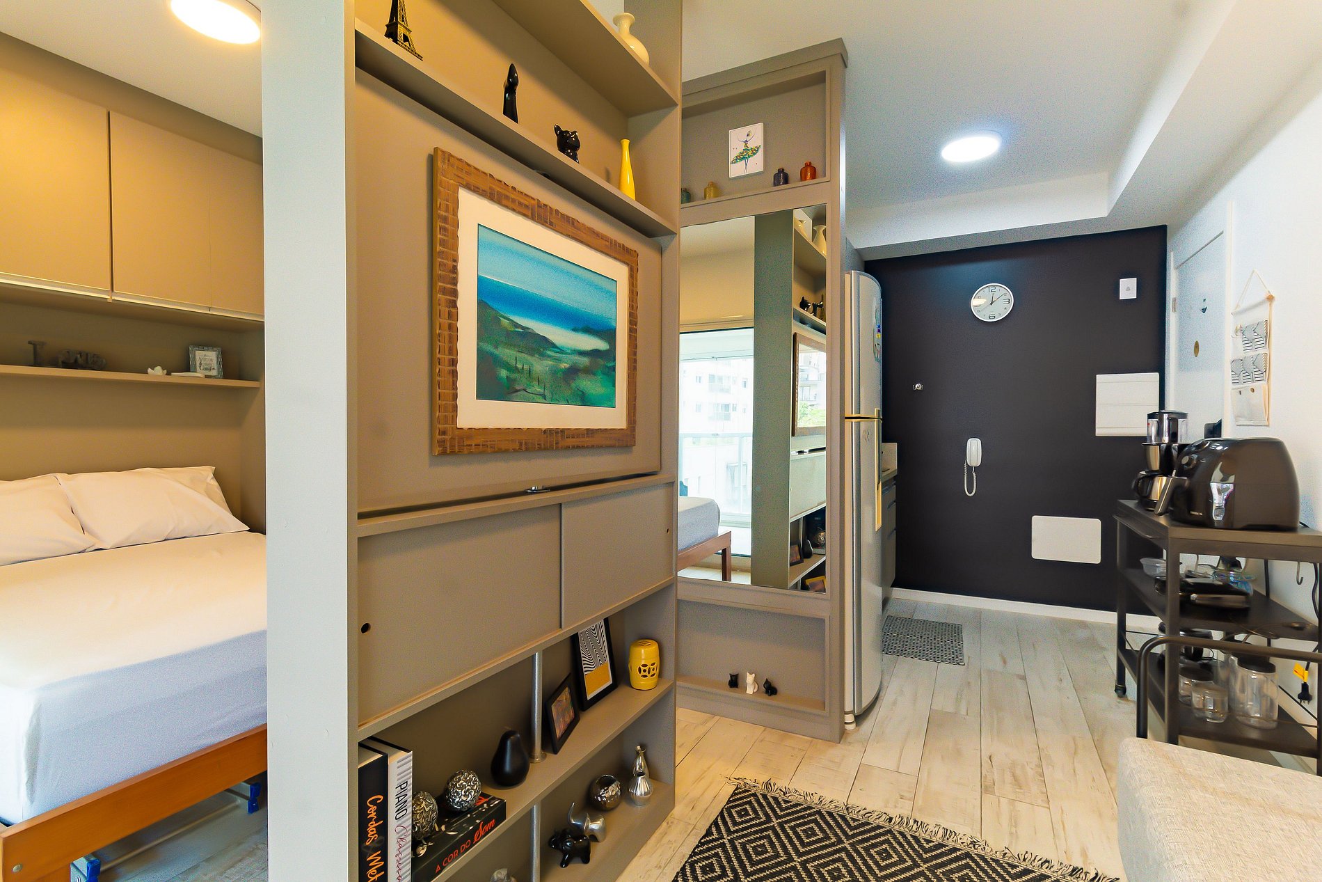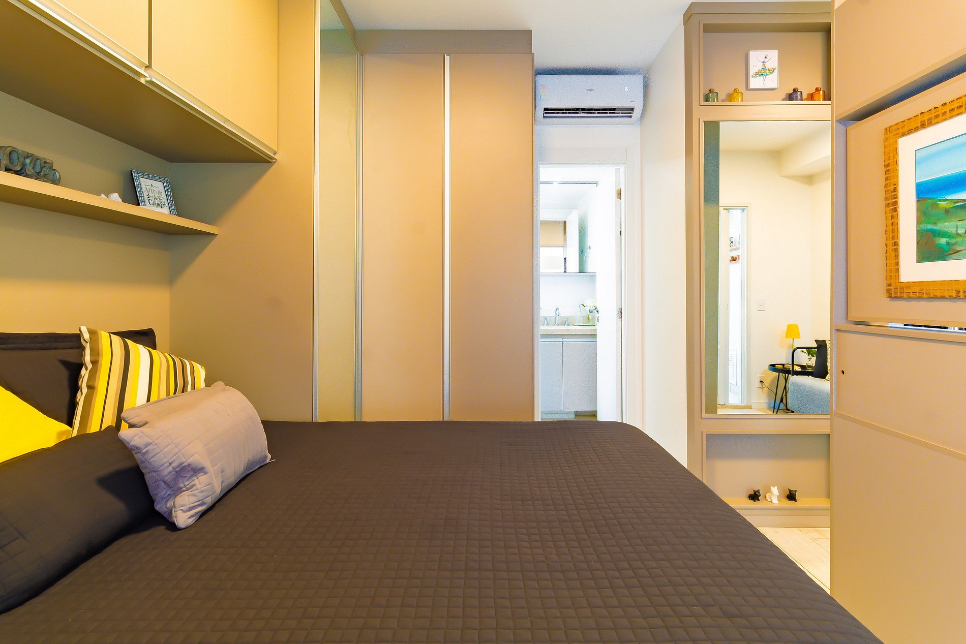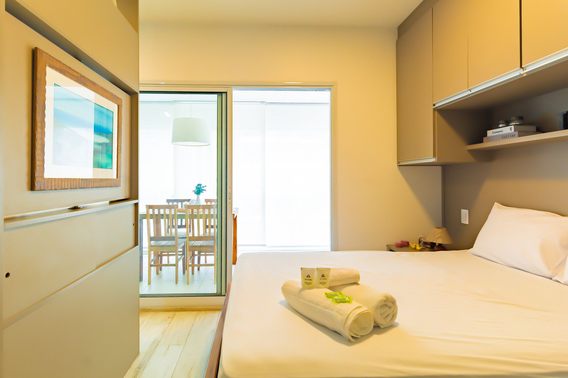 O espaço conta com ar-condicionado, cozinha compacta com itens básicos para preparo de refeições e uma charmosa varanda, ideal para relaxar após um dia na cidade. Um ambiente funcional e acolhedor, pensado para estadias a lazer ou a trabalho.