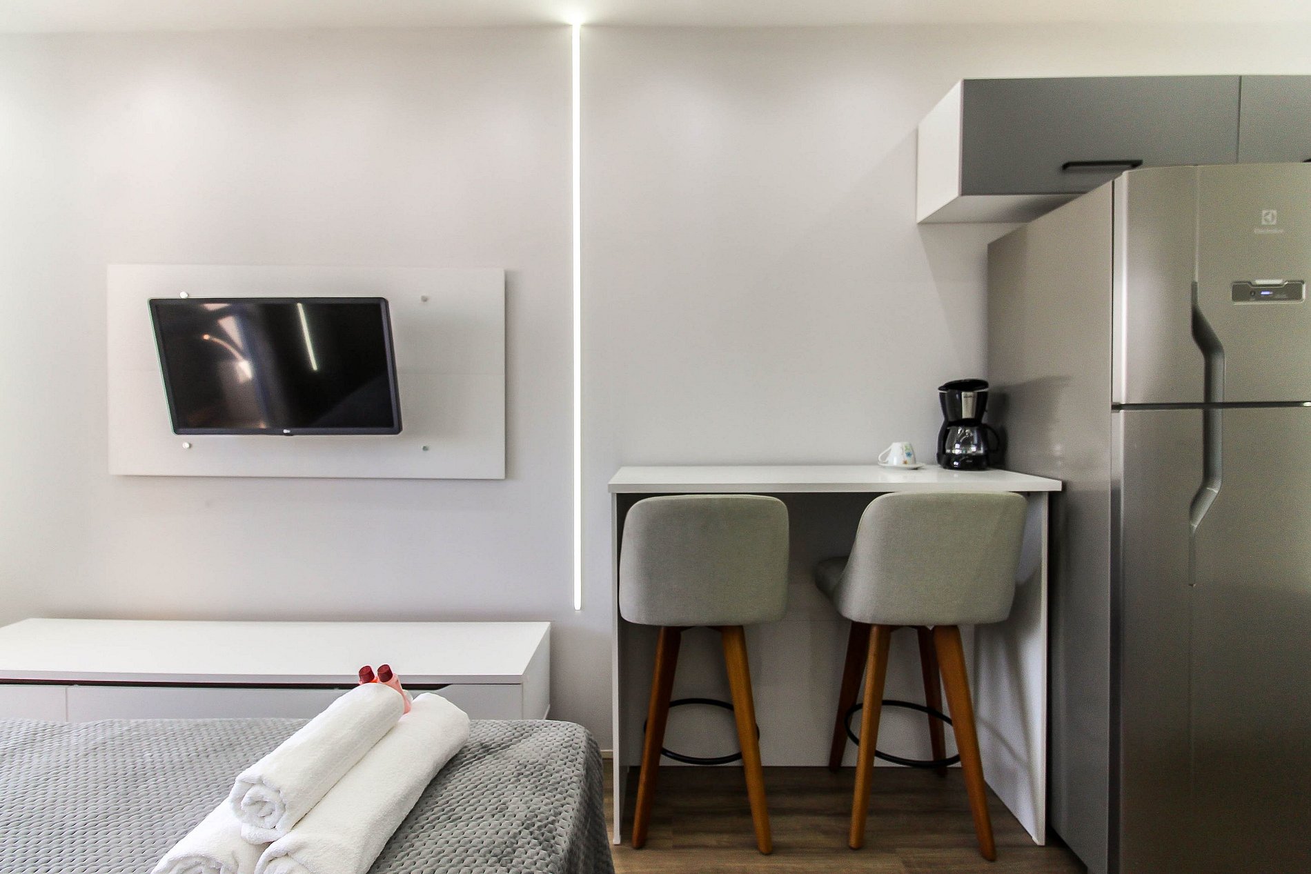 Seja bem-vindo ao nosso estúdio moderno e sofisticado, perfeito para sua estadia em Belém, São Paulo, na Zona Leste! Este espaço encantador foi decorado com atenção aos detalhes, garantindo uma atmosfera elegante e acolhedora para os nossos hóspedes. Com duas camas de solteiro e um colchonete adicional, nosso estúdio pode acomodar confortavelmente até três pessoas, tornando-o ideal para casais, amigos ou famílias pequenas em busca de uma experiência única na cidade. Desfrute de comodidades modernas, incluindo uma TV de 32 polegadas para entretenimento relaxante, uma geladeira para armazenar suas bebidas e lanches, e um cooktop para preparar refeições leves ou lanches rápidos. Além disso, o edifício oferece uma ampla gama de facilidades para tornar sua estadia ainda mais agradável. Mantenha-se em forma na academia bem equipada, mantenha suas roupas frescas com a conveniência da lavanderia no local, e relaxe e recarregue suas energias na piscina refrescante. Localizado em uma região em expansão, nosso estúdio está convenientemente situado ao lado da estação de metrô Belém, proporcionando fácil acesso a todas as atrações que São Paulo tem a oferecer. Explore a cidade com facilidade ou simplesmente aproveite a atmosfera vibrante do bairro, repleto de restaurantes, lojas e outras comodidades. Não importa se você está visitando Belém a negócios ou lazer, nosso estúdio oferece o cenário perfeito para uma estadia inesquecível. Reserve agora e comece a planejar sua escapada para a dinâmica São Paulo!