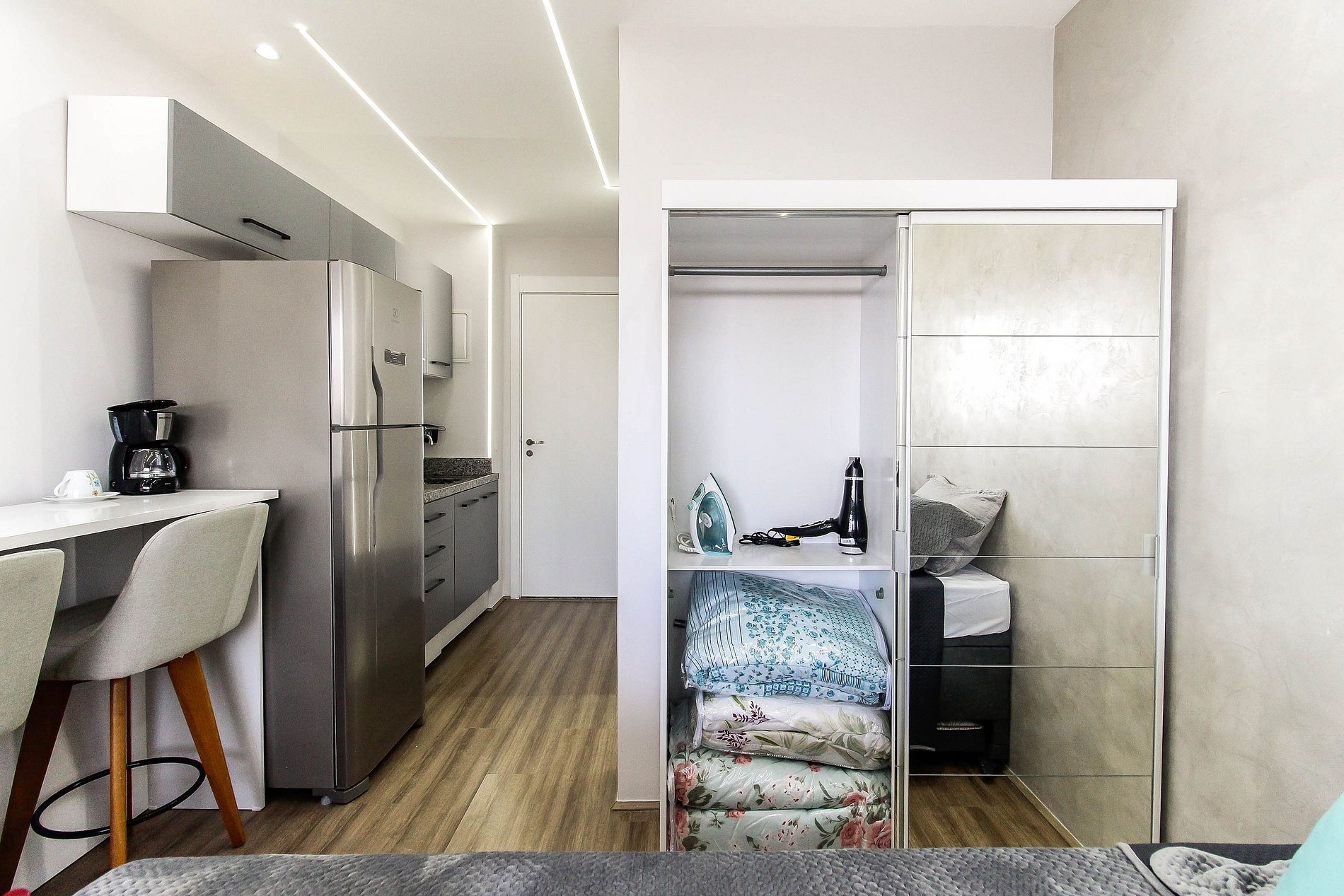 Seja bem-vindo ao nosso estúdio moderno e sofisticado, perfeito para sua estadia em Belém, São Paulo, na Zona Leste! Este espaço encantador foi decorado com atenção aos detalhes, garantindo uma atmosfera elegante e acolhedora para os nossos hóspedes. Com duas camas de solteiro e um colchonete adicional, nosso estúdio pode acomodar confortavelmente até três pessoas, tornando-o ideal para casais, amigos ou famílias pequenas em busca de uma experiência única na cidade. Desfrute de comodidades modernas, incluindo uma TV de 32 polegadas para entretenimento relaxante, uma geladeira para armazenar suas bebidas e lanches, e um cooktop para preparar refeições leves ou lanches rápidos. Além disso, o edifício oferece uma ampla gama de facilidades para tornar sua estadia ainda mais agradável. Mantenha-se em forma na academia bem equipada, mantenha suas roupas frescas com a conveniência da lavanderia no local, e relaxe e recarregue suas energias na piscina refrescante. Localizado em uma região em expansão, nosso estúdio está convenientemente situado ao lado da estação de metrô Belém, proporcionando fácil acesso a todas as atrações que São Paulo tem a oferecer. Explore a cidade com facilidade ou simplesmente aproveite a atmosfera vibrante do bairro, repleto de restaurantes, lojas e outras comodidades. Não importa se você está visitando Belém a negócios ou lazer, nosso estúdio oferece o cenário perfeito para uma estadia inesquecível. Reserve agora e comece a planejar sua escapada para a dinâmica São Paulo!
