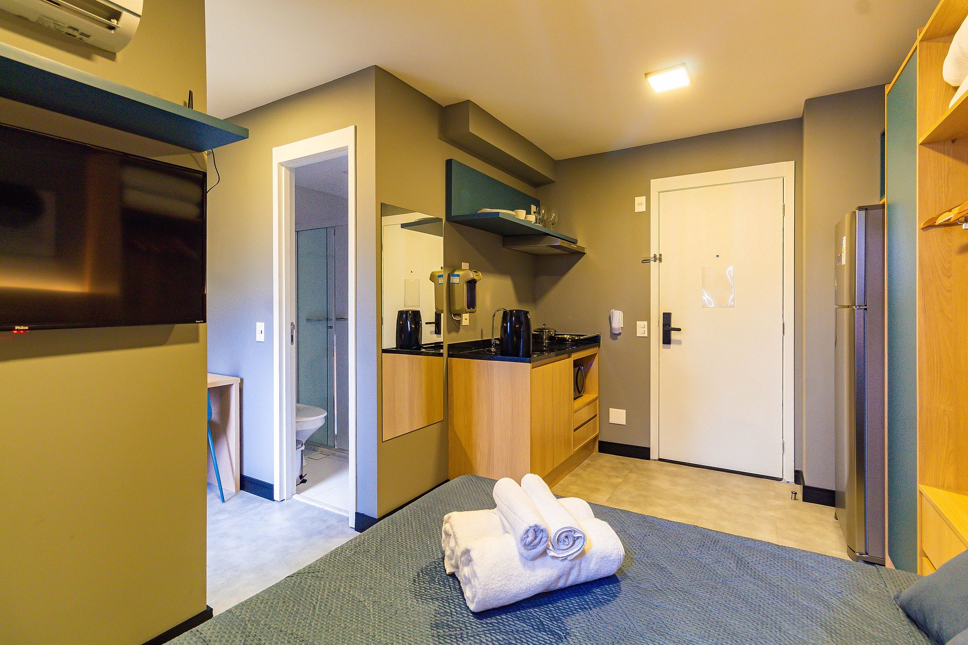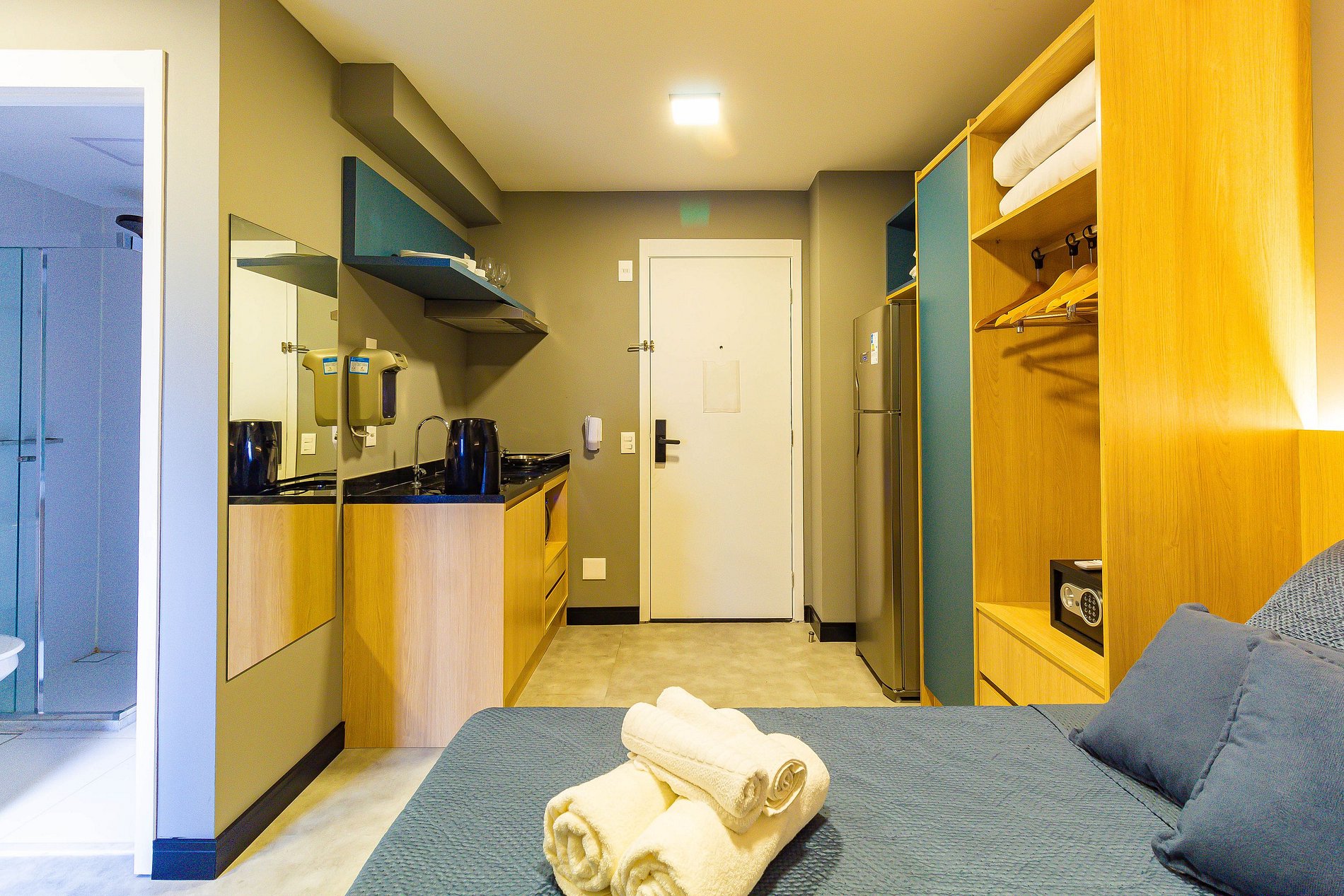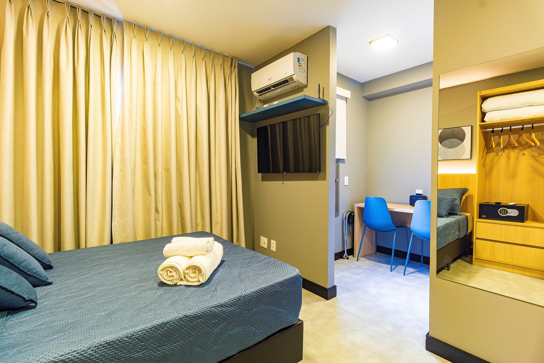 Aproveite uma estadia confortável e prática em um espaço ideal para até 2 pessoas, localizado próximo a excelentes opções de comércio, restaurantes e fácil acesso às principais vias da região. O apartamento conta com uma cozinha compacta equipada, perfeita para preparar refeições rápidas, além de ar-condicionado para garantir seu conforto em qualquer época do ano. Perfeito para quem busca praticidade, boa localização e um ambiente aconchegante, seja para viagens a lazer ou a trabalho.