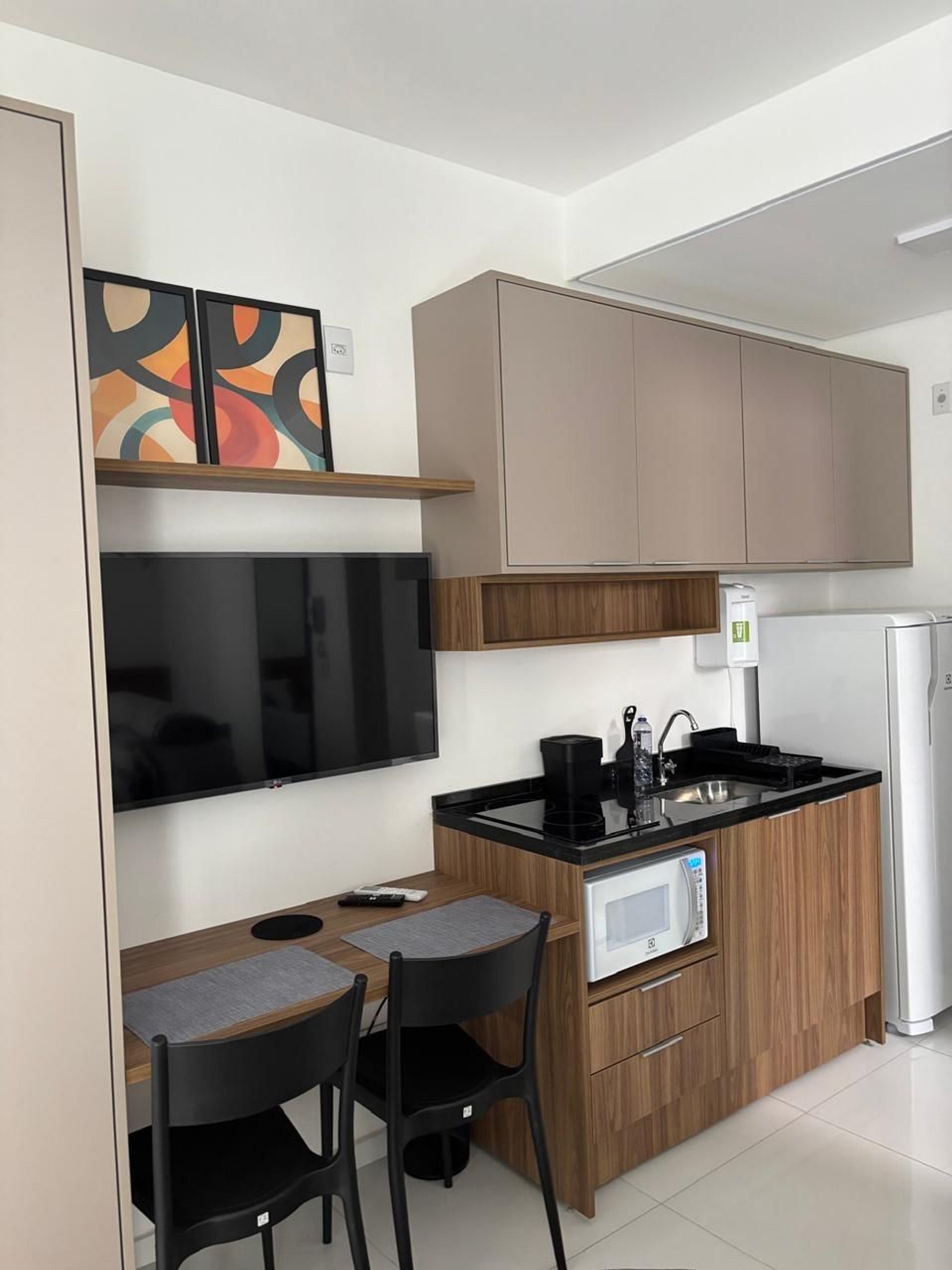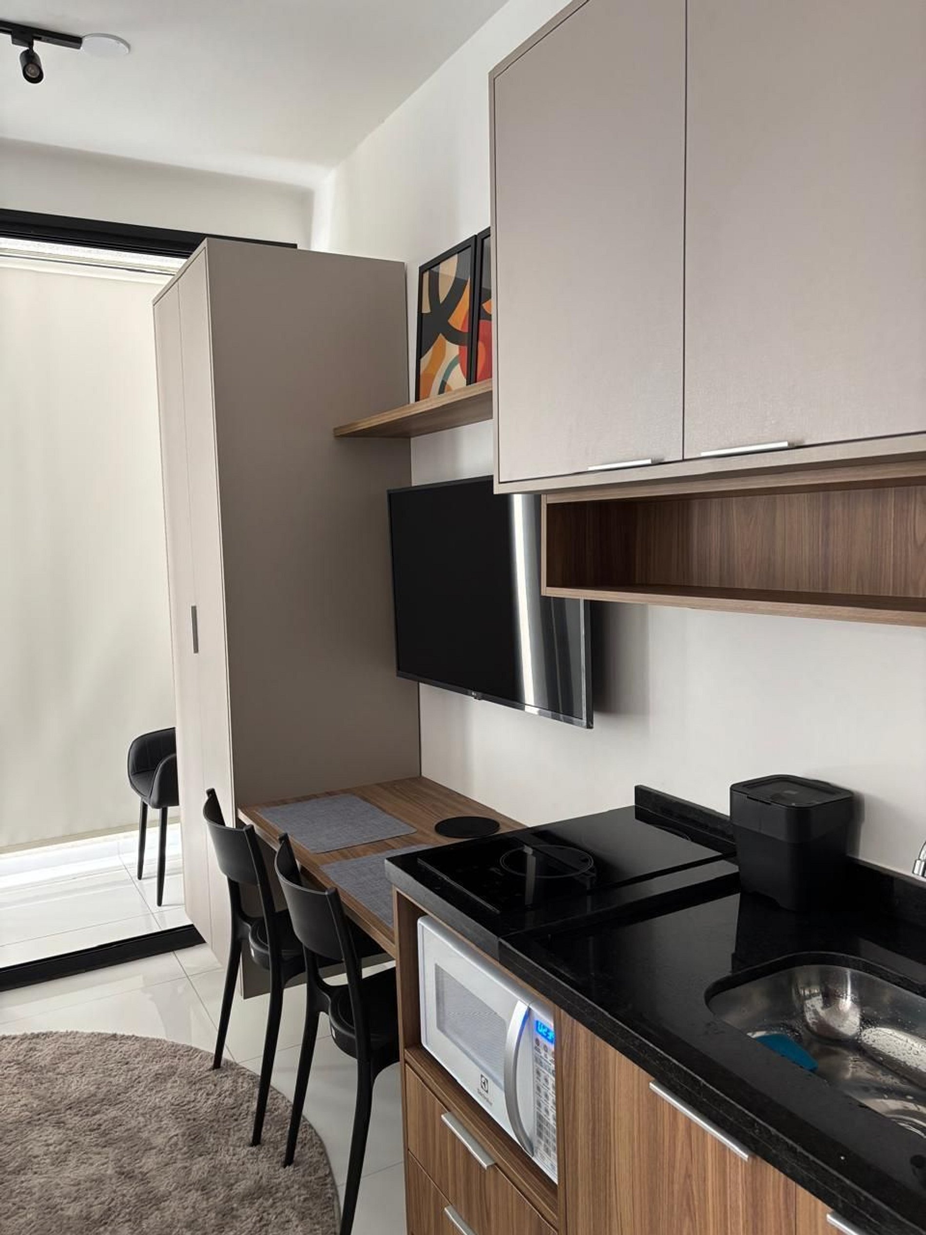 Desfrute de uma estadia charmosa e confortável neste apartamento moderno, perfeito para até 2 pessoas. O espaço é bem planejado, com cozinha compacta equipada e uma agradável sacada para relaxar.