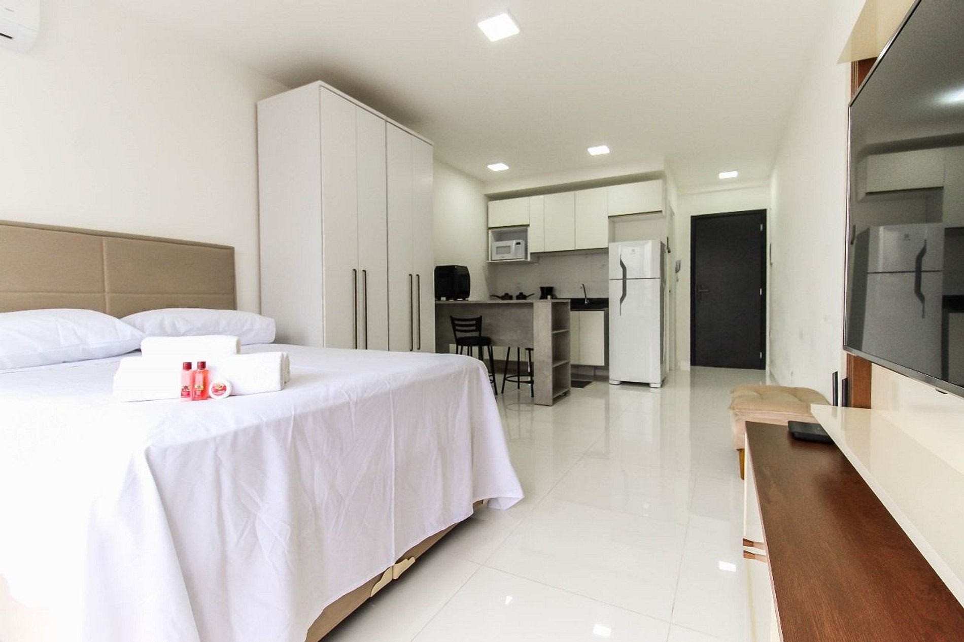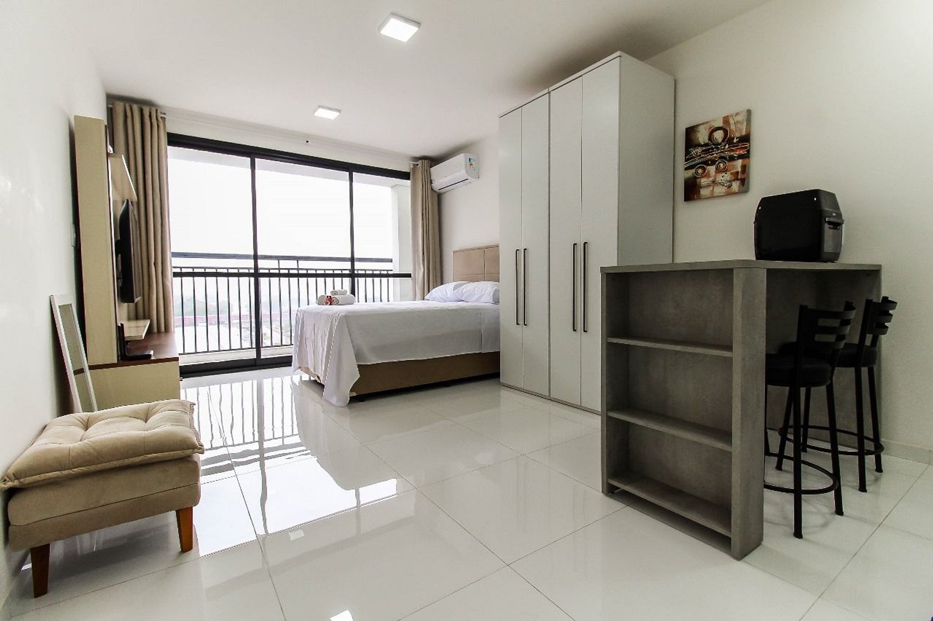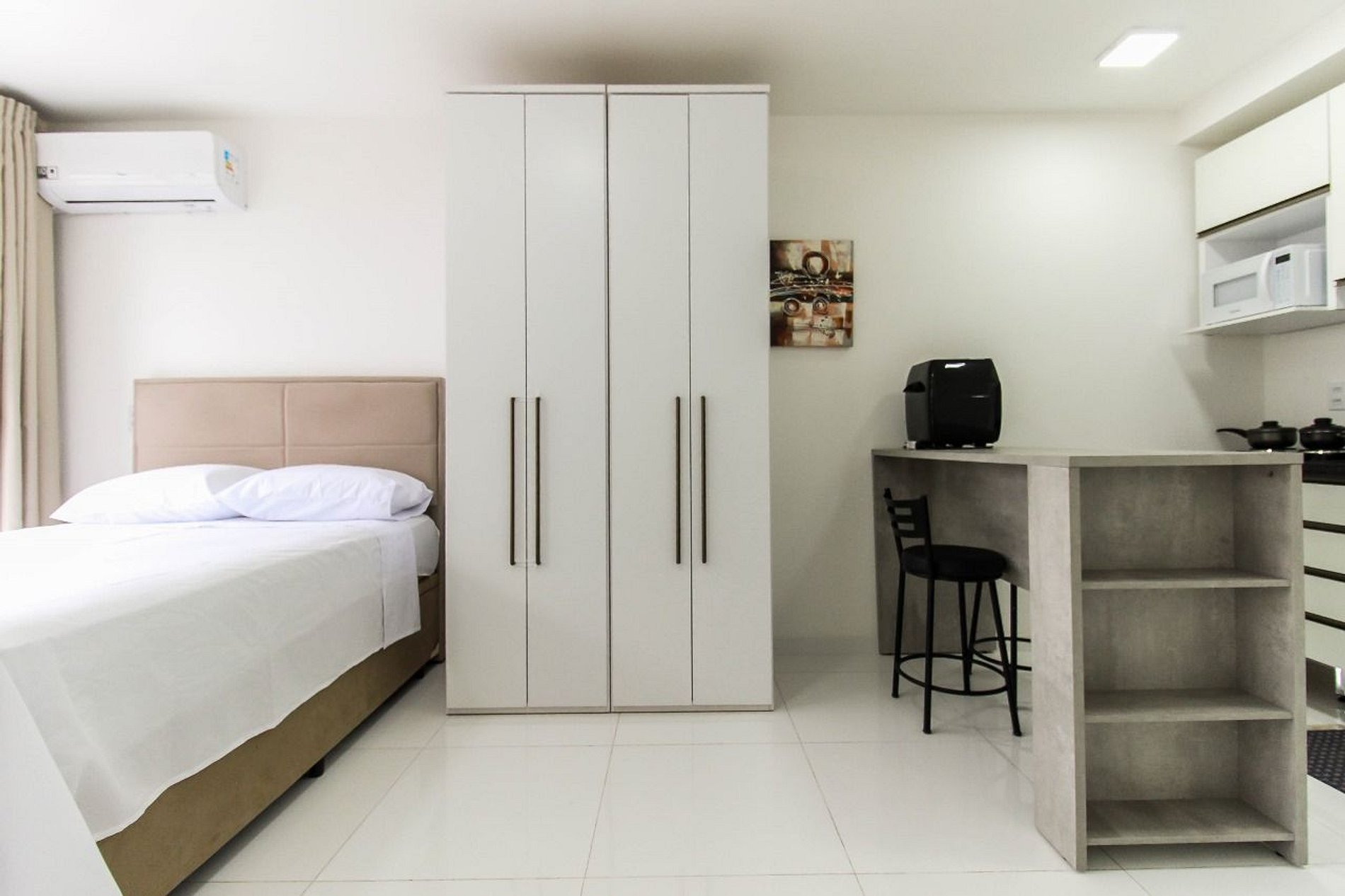 Acomodação completa e moderna, studio é totalmente equipado e decorado com muito bom gosto. Possui cama, TV smart, cozinha completa, ar-condicionado e tudo o que você precisa para uma estadia confortável.