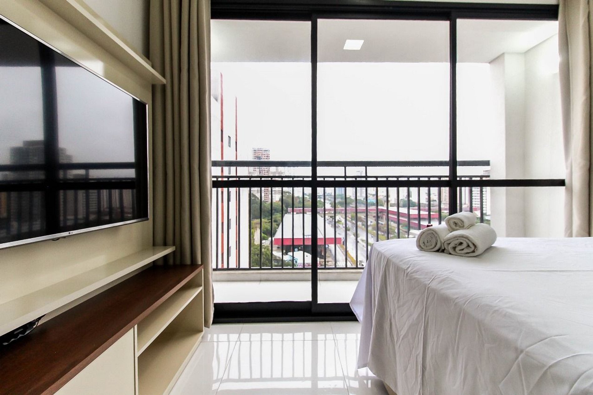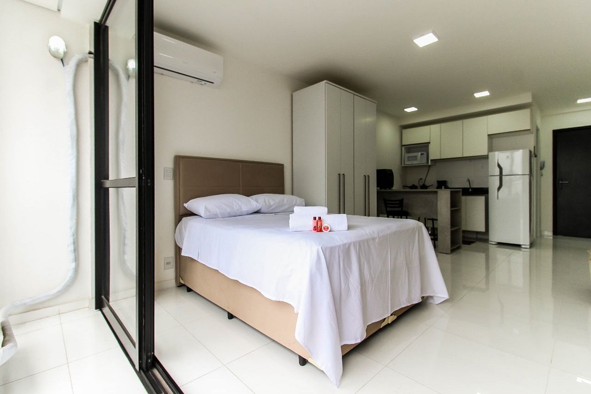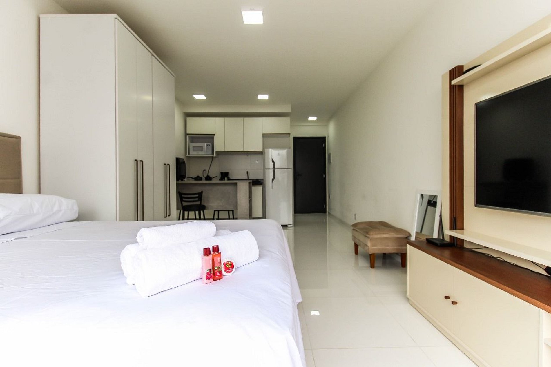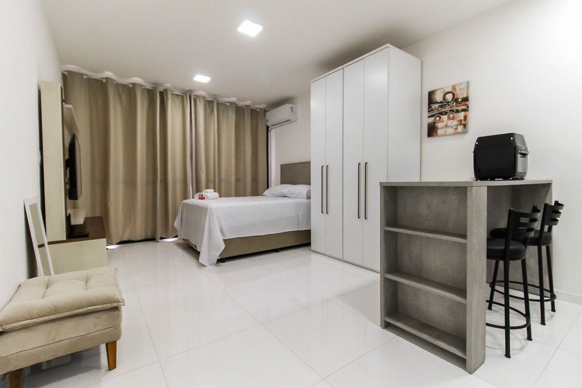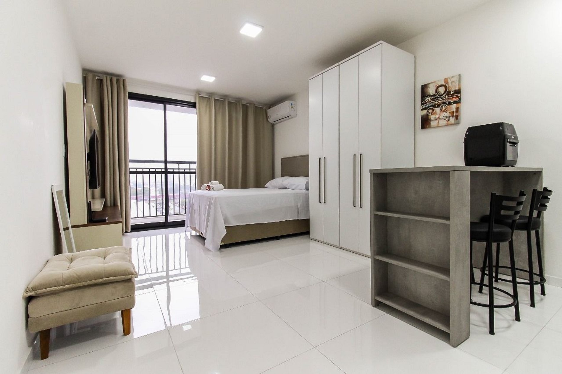 Nosso studio é perfeito para quem viaja a negócios ou a lazer. A localização privilegiada e a infraestrutura completa tornam a sua estadia muito mais agradável.