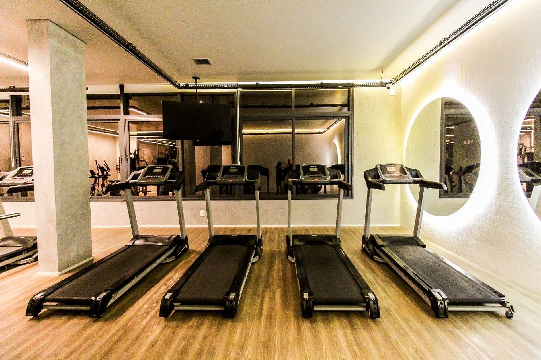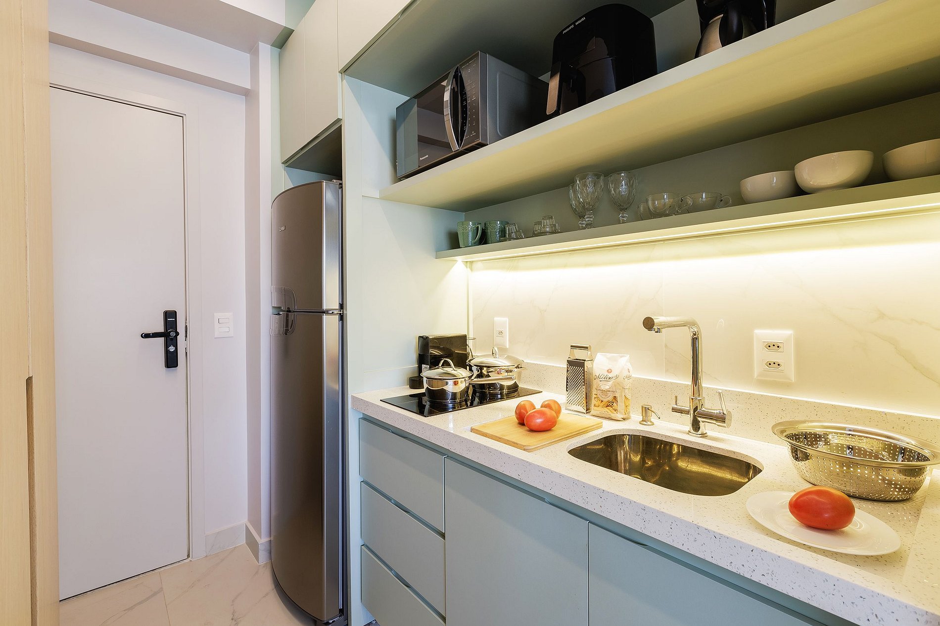Os hóspedes podem usufruir da completa infraestrutura do prédio, incluindo academia, piscina e lavanderia.