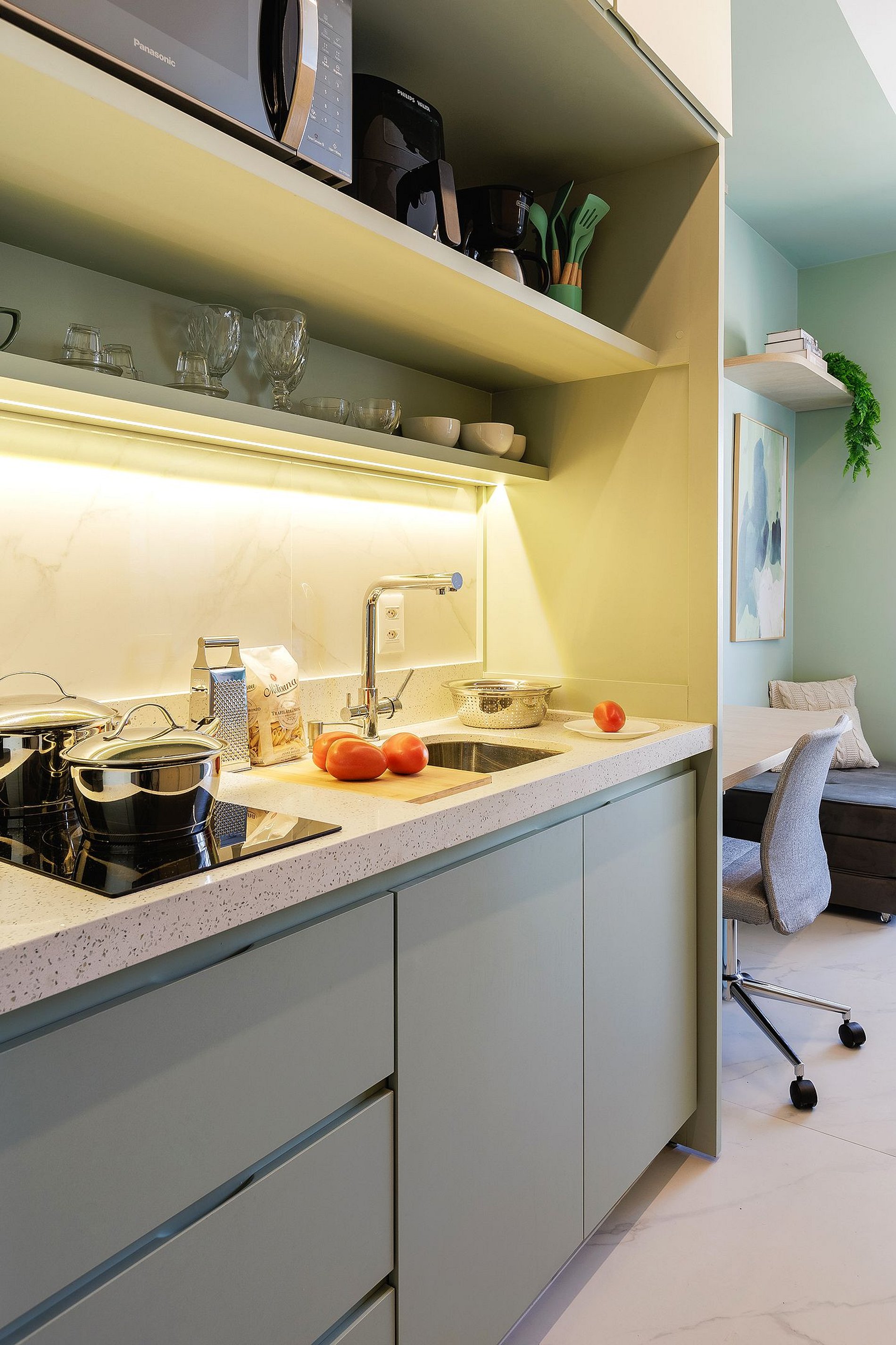 Cozinha Completa: Cozinha equipada com eletrodomésticos novos e modernos: cooktop por indução, geladeira, micro-ondas, cafeteira, airfryer e liquidificador. Também fornecemos pratos, panelas, talheres, copos, xícaras de café, taças e tudo o que você precisa para o dia a dia, garantindo praticidade para quem deseja apenas curtir e relaxar.