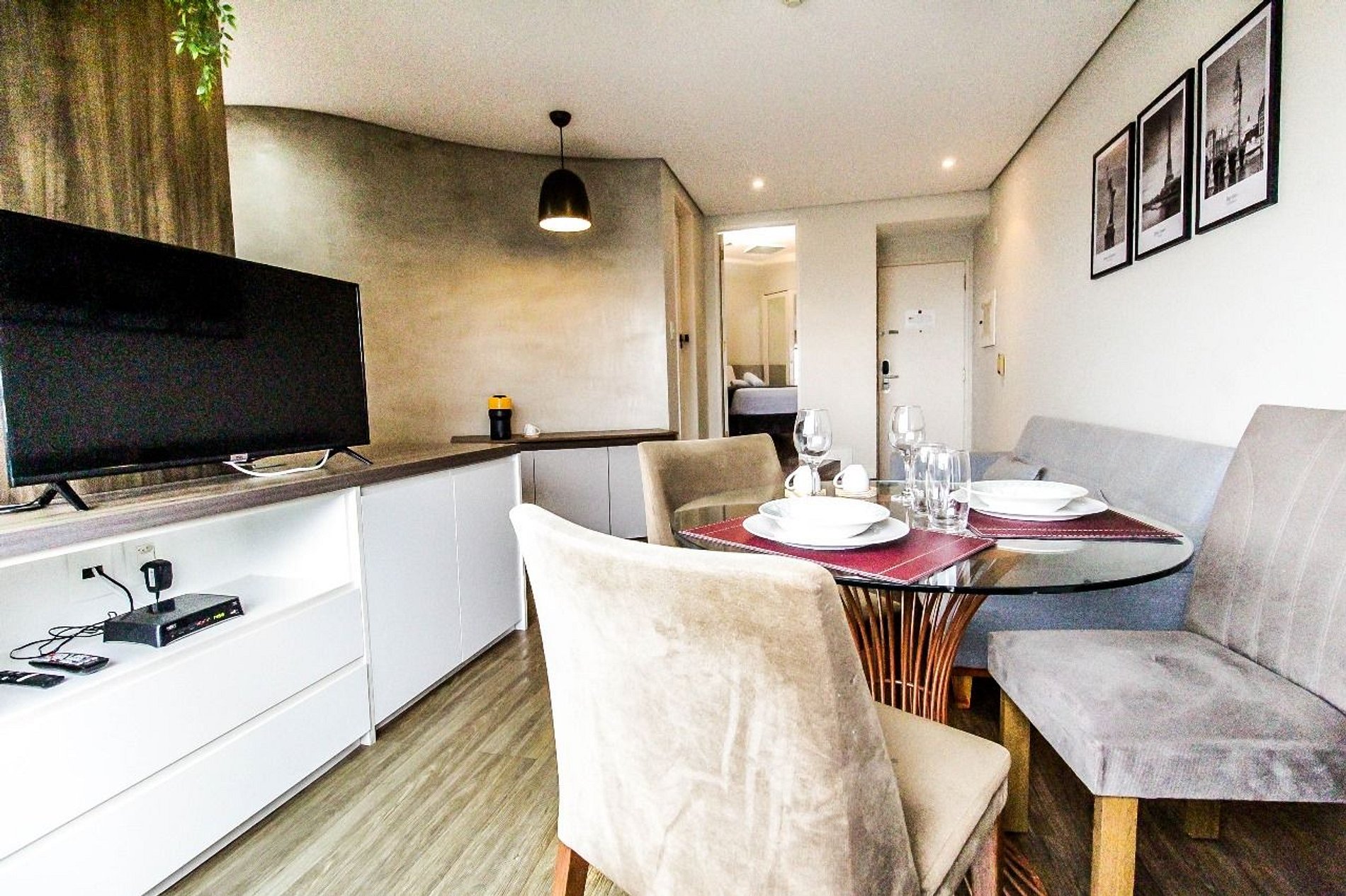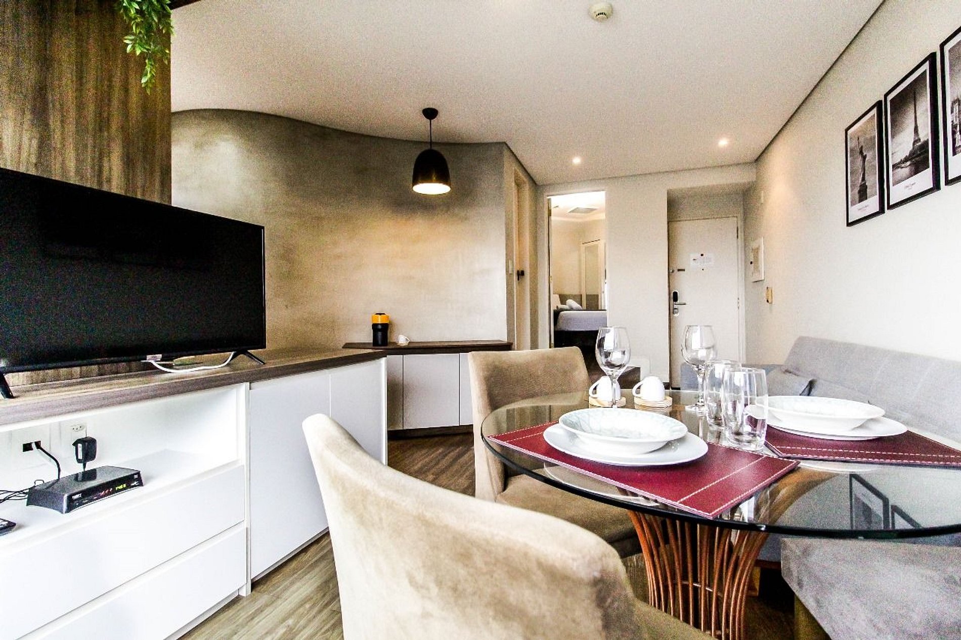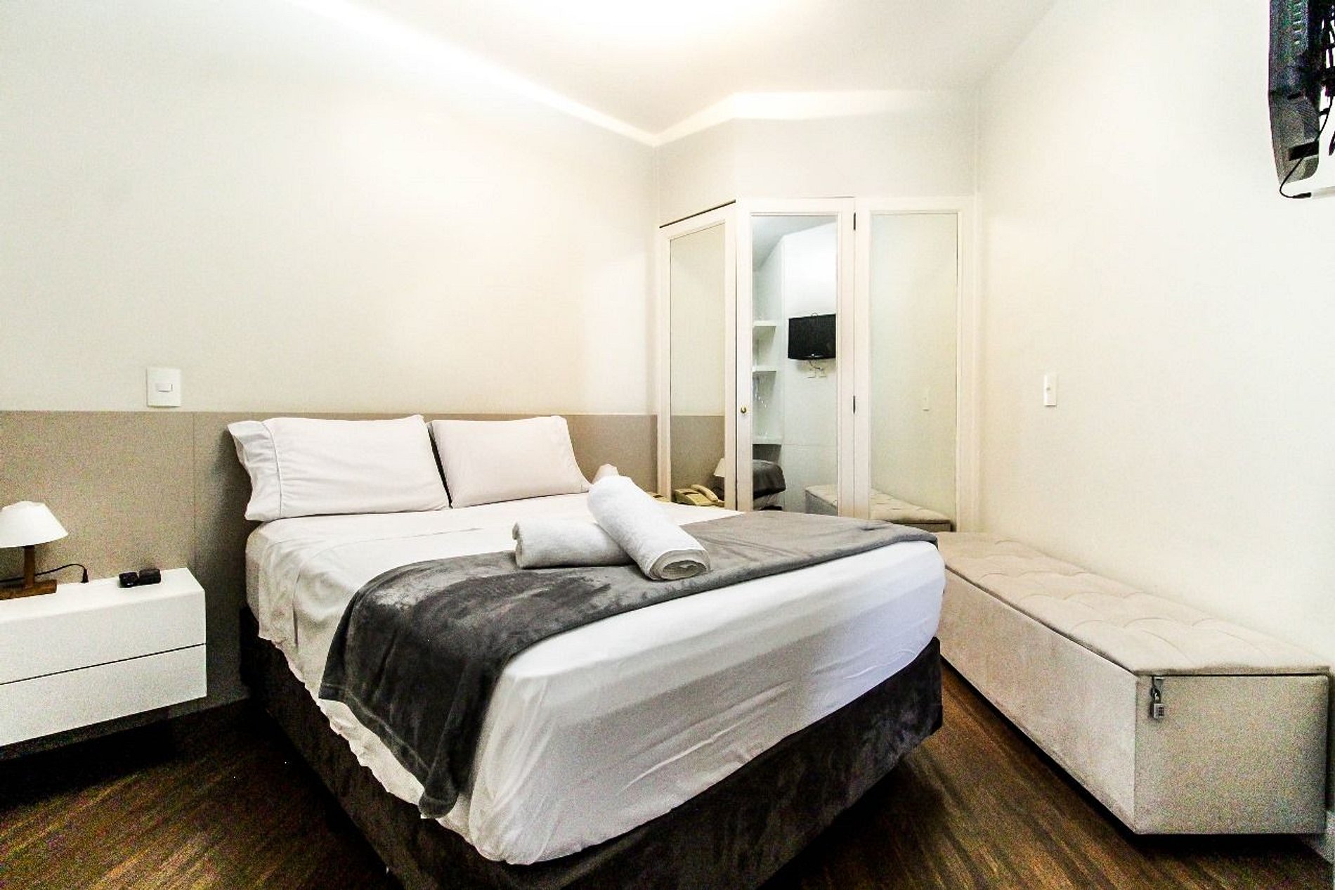 Com recepção 24 horas, piscina na cobertura, academia, spa e um mini mercado e vaga de garagem, o flat oferece todo o conforto e conveniência para sua estadia. A localização é excelente, estando próximo a pontos turísticos renomados como o Parque Ibirapuera e o MASP, além de hospitais como o Nove de Julho e a Paulista. É uma base ideal para explorar o melhor da cidade, desde centros culturais até ótimos restaurantes e lojas.