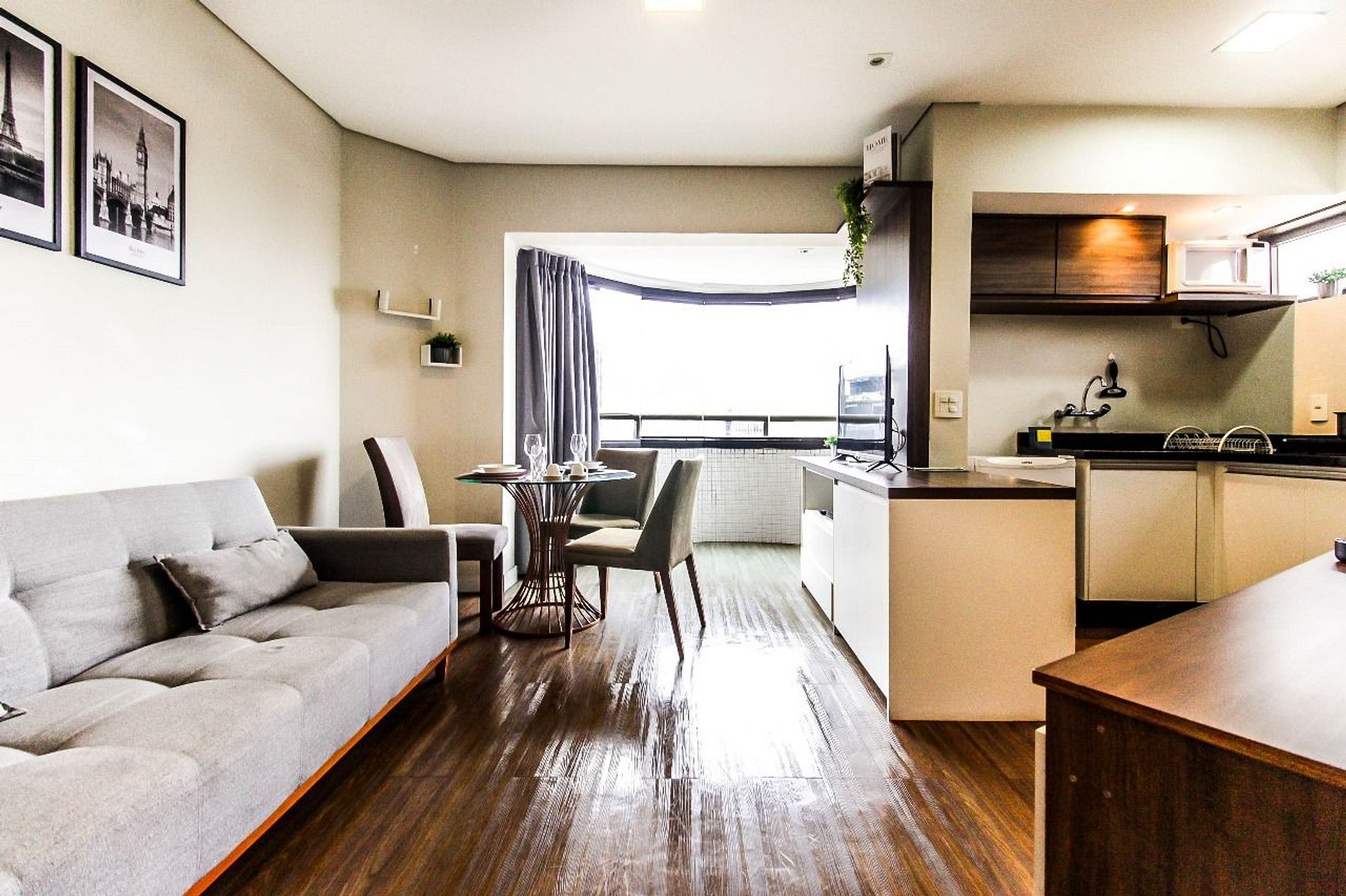 Descubra São Paulo com estilo neste lindo flat de 55m², acomodando até 4 pessoas, localizado estrategicamente atrás do MASP e a apenas 100 metros da famosa Avenida Paulista. No 25º andar, o flat oferece uma vista privilegiada da cidade, perfeita para quem aprecia um cenário urbano.