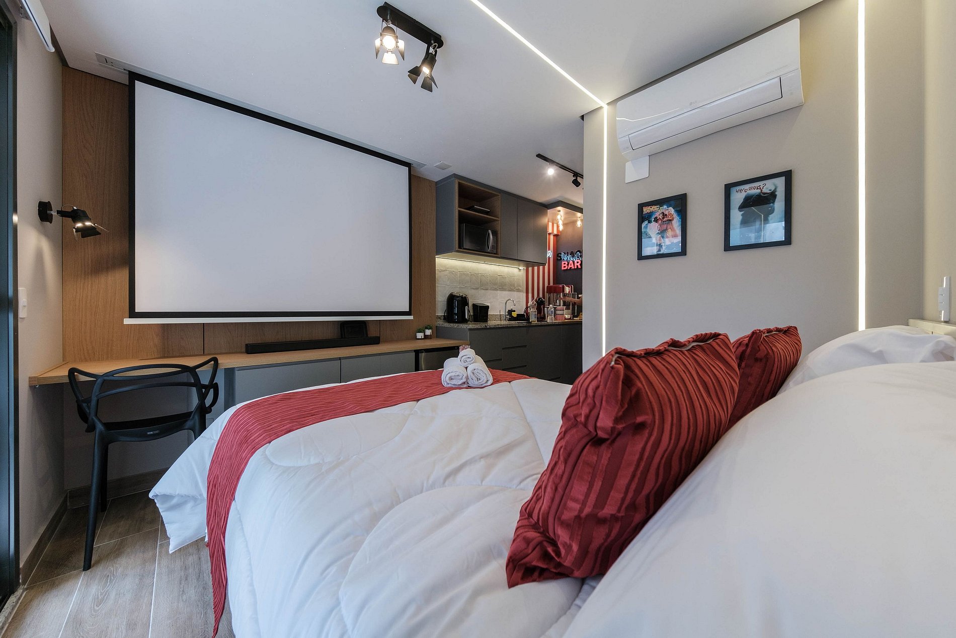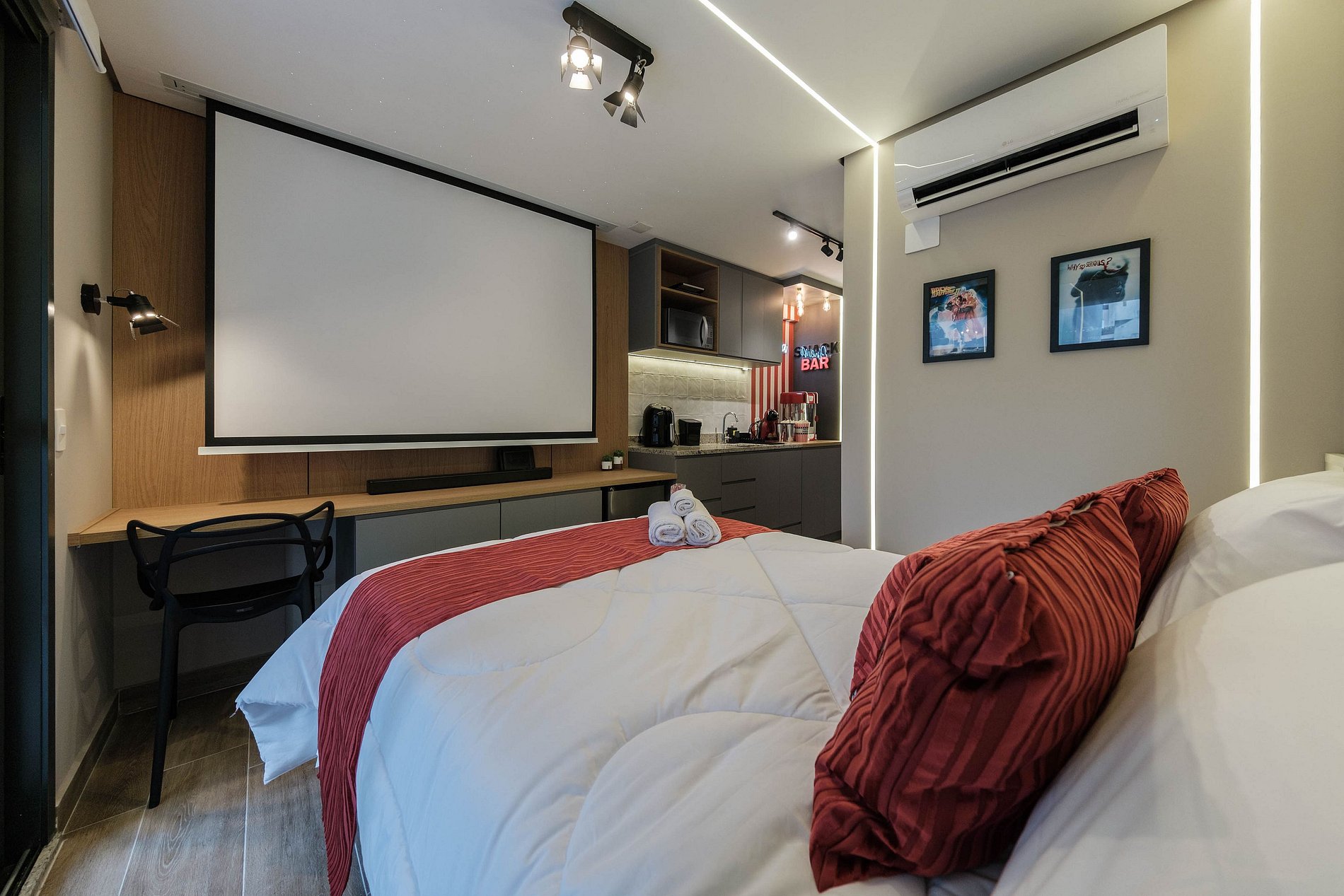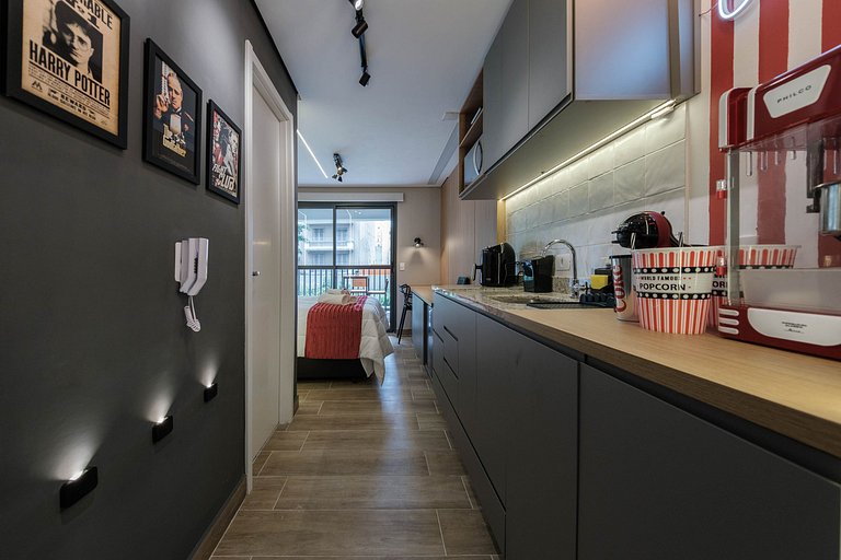 Desfrute de uma estadia única e aconchegante a dois neste studio no coração de São Paulo! Com tela de 90 polegadas, projetor 4K, soundbar imersivo e pipoqueira exclusiva, suas noites serão uma verdadeira experiência de cinema privativo. O prédio oferece piscina com vista, academia moderna, coworking, spa, lavanderia e áreas de lazer para uma experiência completa. O lugar perfeito para relaxar, explorar a cidade e viver momentos especiais juntos!