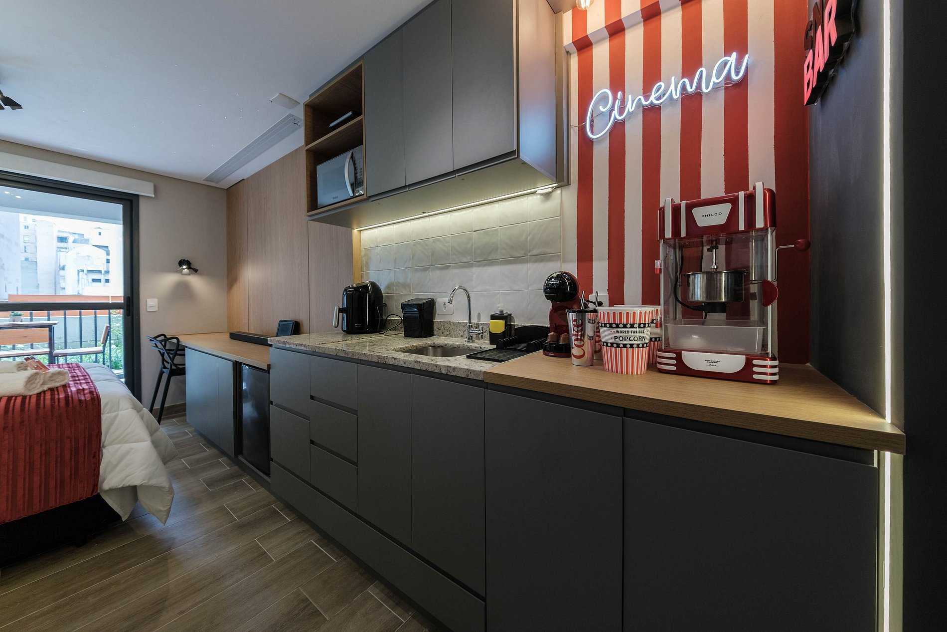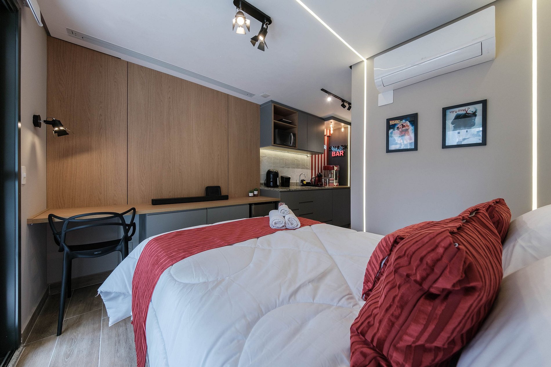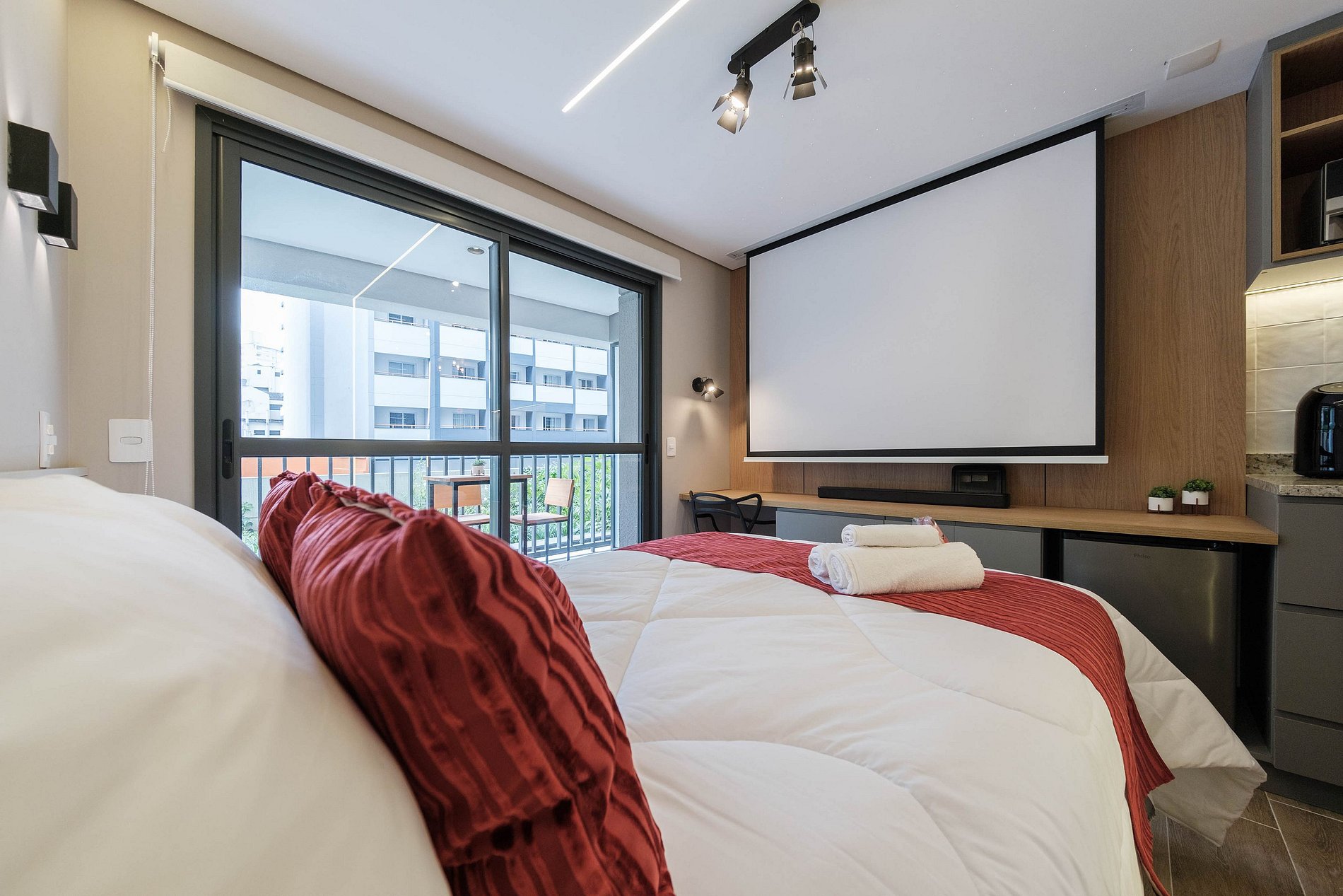 Desfrute de uma estadia única e aconchegante a dois neste studio no coração de São Paulo! Com tela de 90 polegadas, projetor 4K, soundbar imersivo e pipoqueira exclusiva, suas noites serão uma verdadeira experiência de cinema privativo. O prédio oferece piscina com vista, academia moderna, coworking, spa, lavanderia e áreas de lazer para uma experiência completa. O lugar perfeito para relaxar, explorar a cidade e viver momentos especiais juntos!