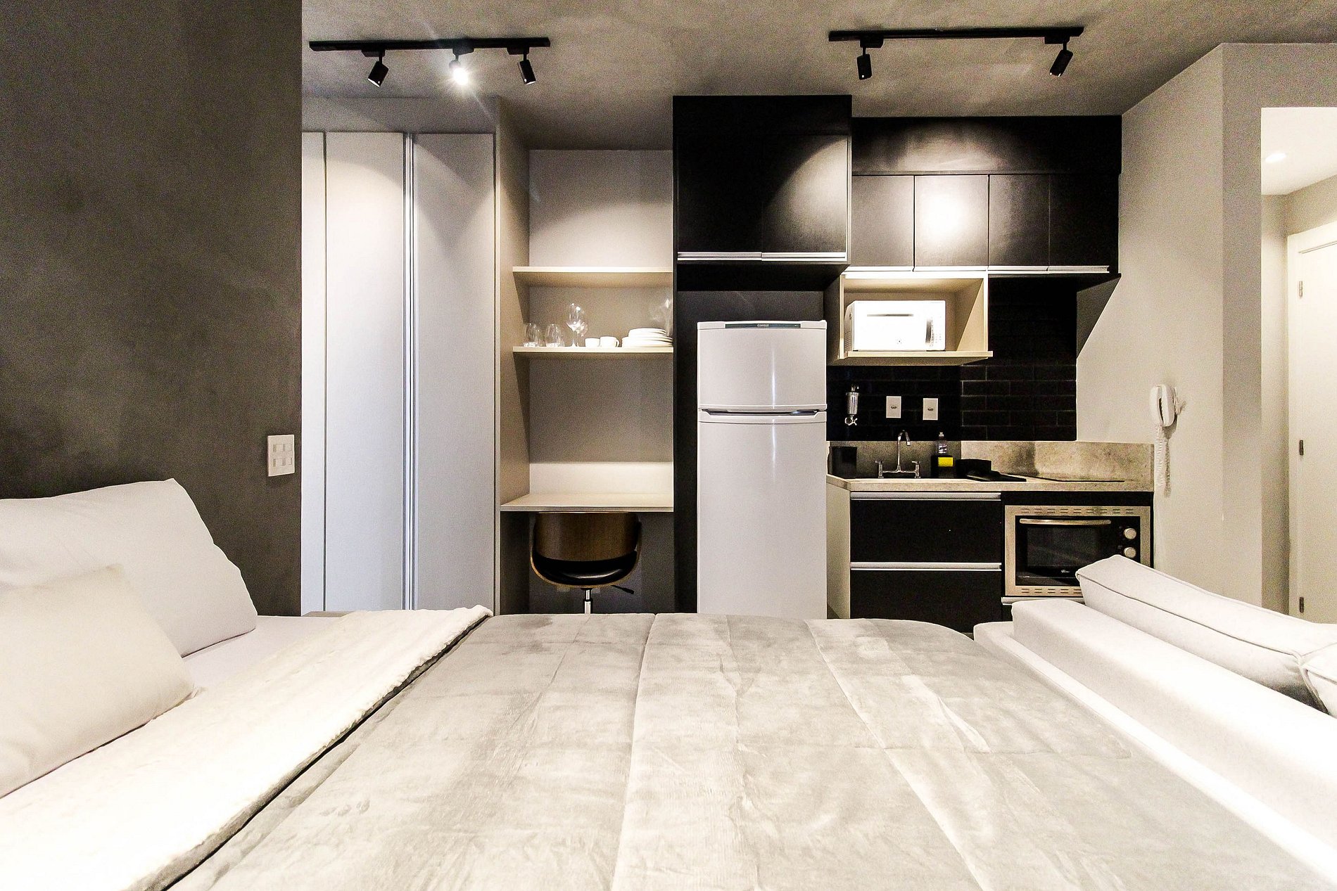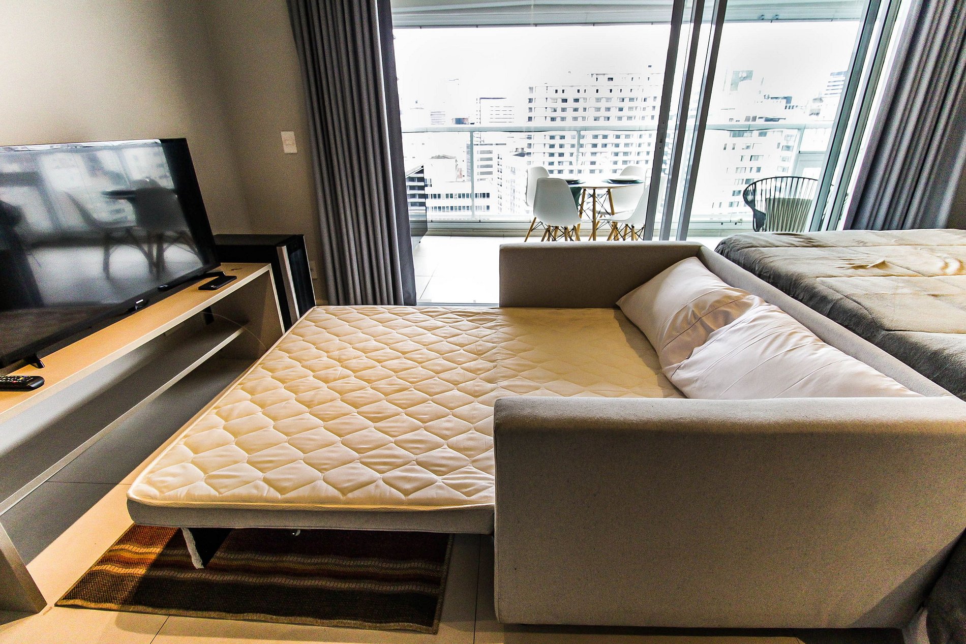 Situado na região privilegiada da Augusta, este apartamento de alto padrão oferece uma experiência única. O quarto dispõe de uma cama de casal, além de um sofá-cama. A sala conta com uma TV de tela plana grande, enquanto a cozinha equipada inclui microondas, geladeira e bebedouro. O apartamento possui banheiro, e fornecemos toalhas e roupas de cama para sua comodidade. Com vaga de garagem e ar condicionado. A vista incrível da varanda completa a experiência única deste local exclusivo.