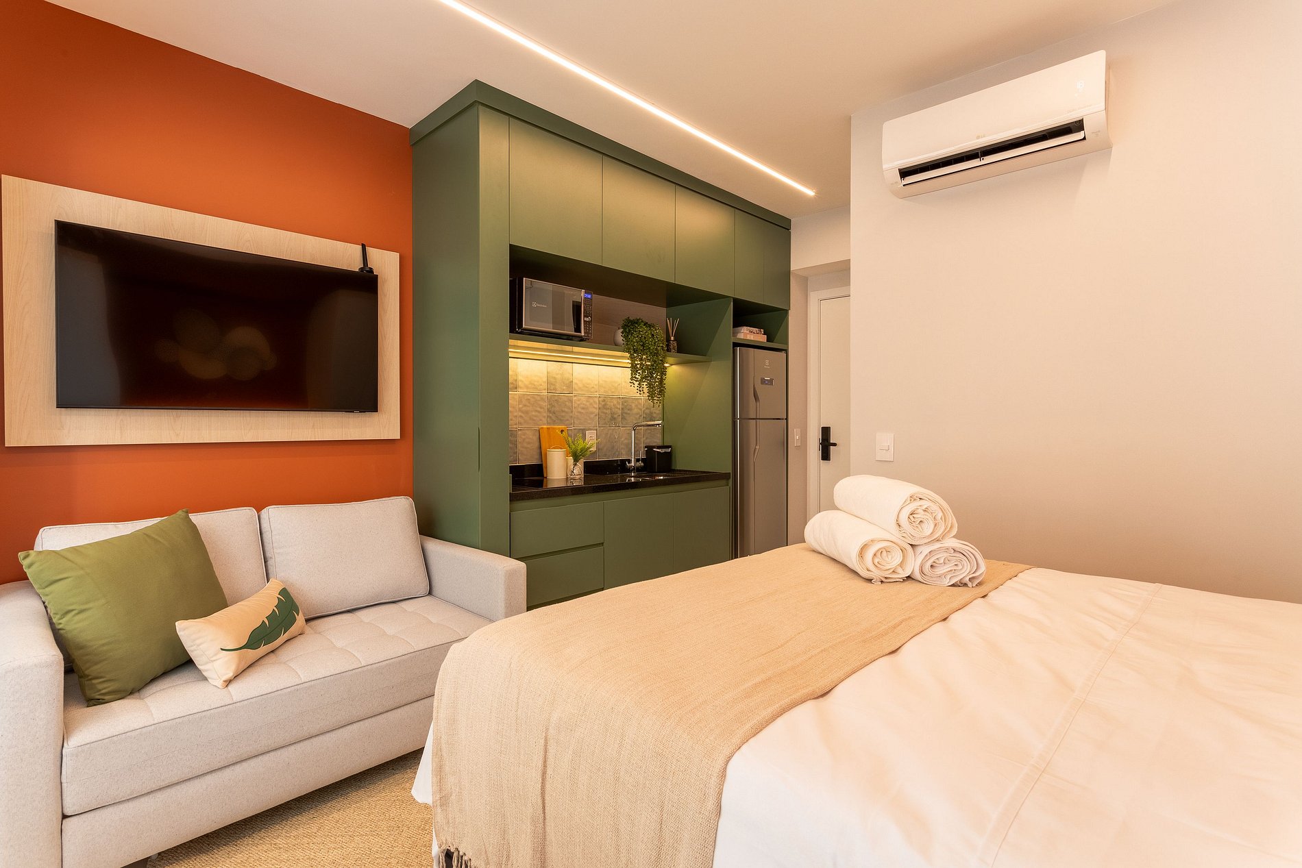 Desfrute de um studio novo e sofisticado, perfeito para até 4 pessoas, em uma região nobre próxima ao Allianz Parque. Com decoração impecável, o espaço oferece cama queen, sofá-cama, mesa de jantar, máquina de café e enxovais de hotelaria. O condomínio conta com piscina na cobertura com vista incrível, academia e lavanderia. Ideal para lazer ou trabalho, garantindo conforto e praticidade em uma localização privilegiada