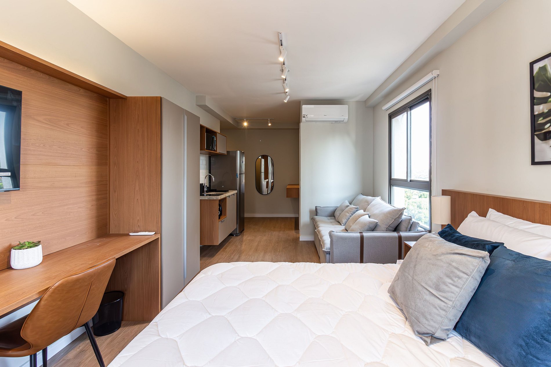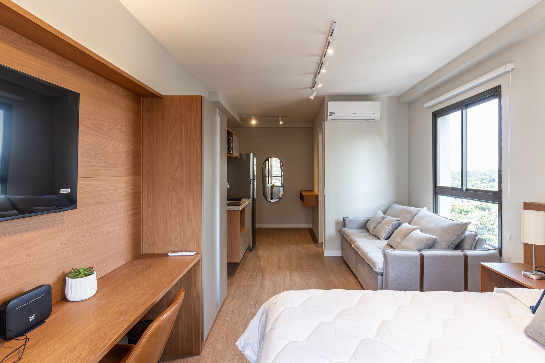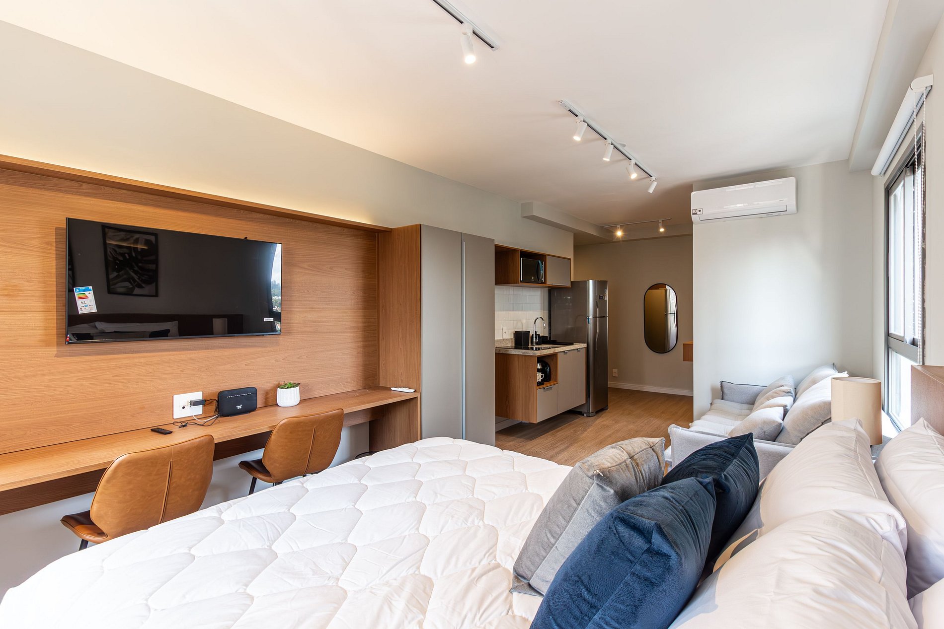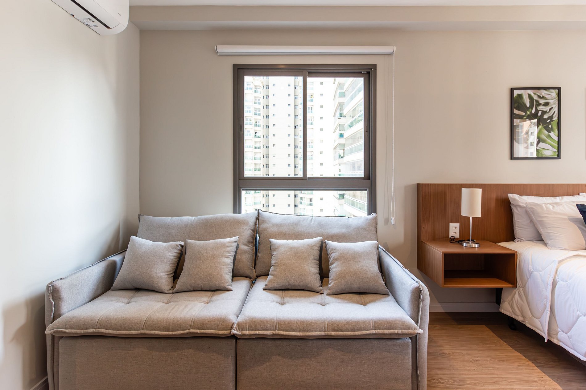 Studio moderno e aconchegante no Brooklin, perfeito para até 3 pessoas. Equipado com ar-condicionado, sofá-cama confortável e enxoval de hotelaria, oferece conforto e praticidade. A localização é estratégica, próxima a centros empresariais, restaurantes e estações de metrô, com fácil acesso às principais regiões de São Paulo. Ideal para viagens de negócios ou lazer, o espaço foi pensado para garantir uma experiência confortável e funcional na cidade.!