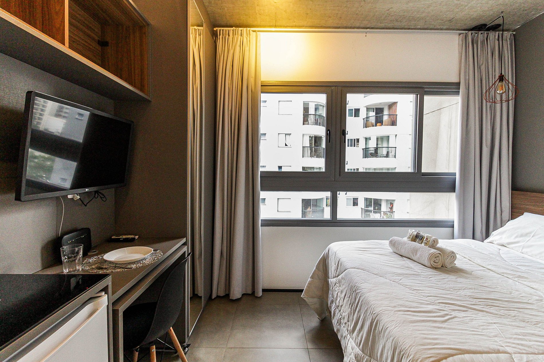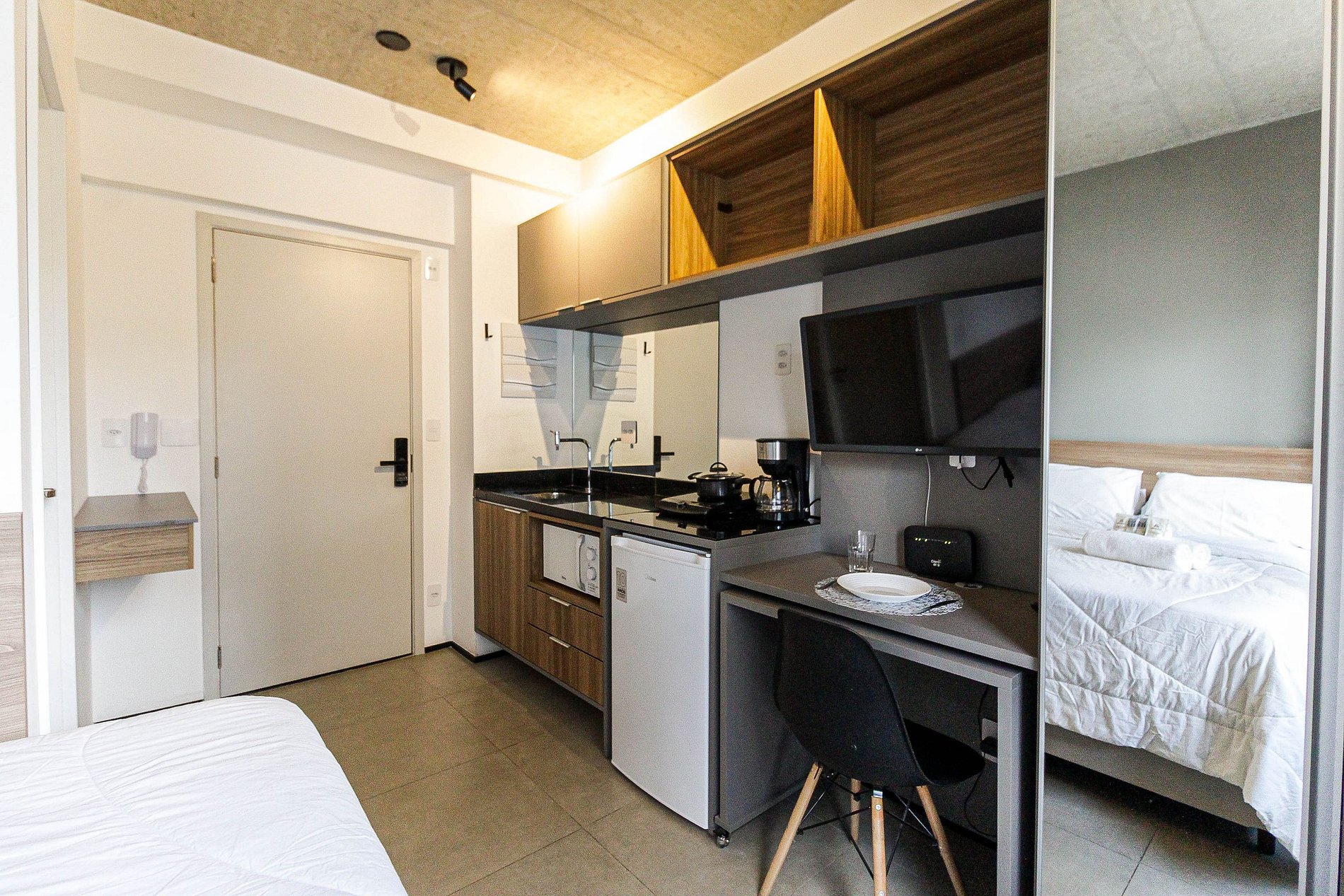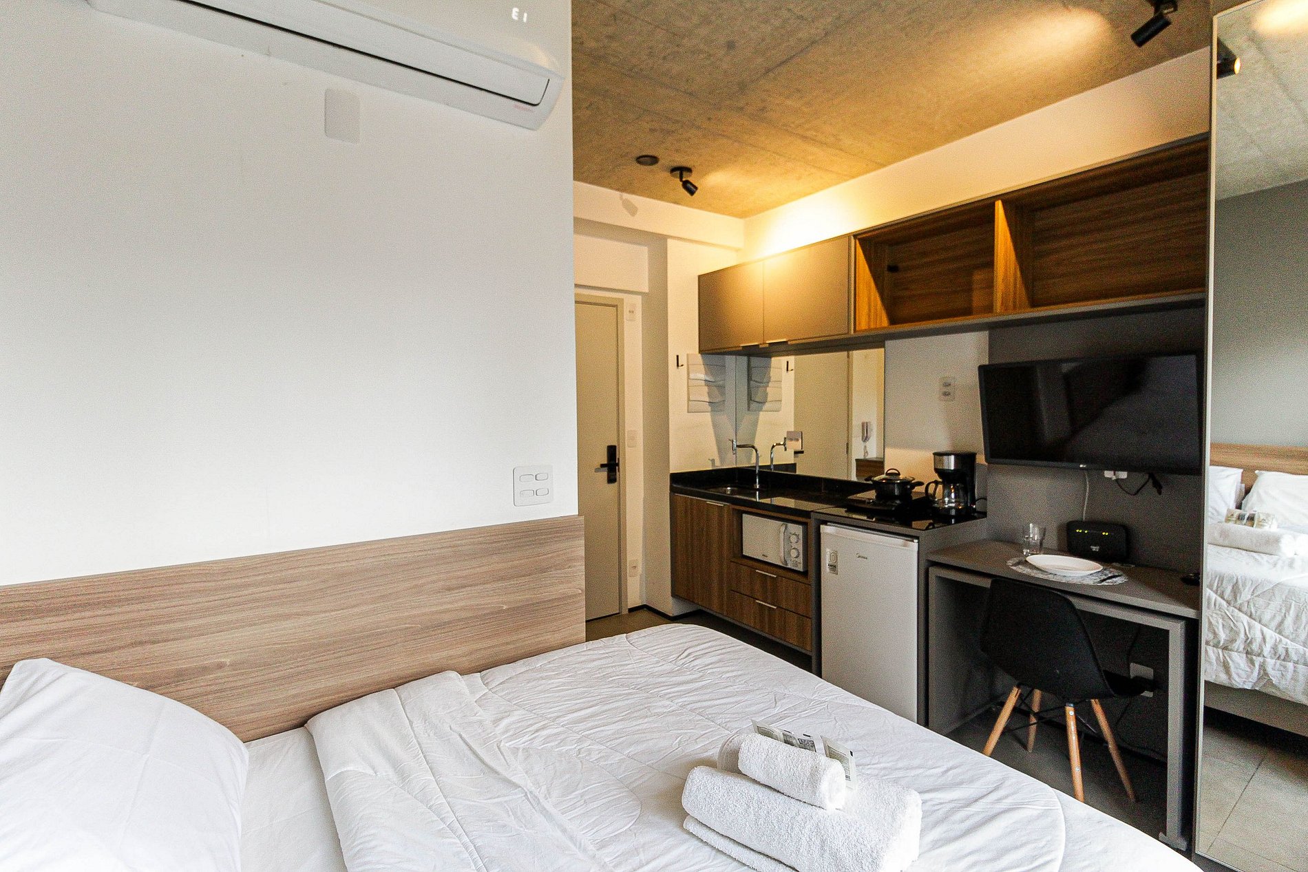 Hospede-se em um studio bem planejado e funcional na Alameda Lorena, no bairro Jardins, um dos mais charmosos e desejados de São Paulo. Este studio acomoda 2 pessoas e está equipado com tudo o que você precisa para uma estadia confortável e prática.