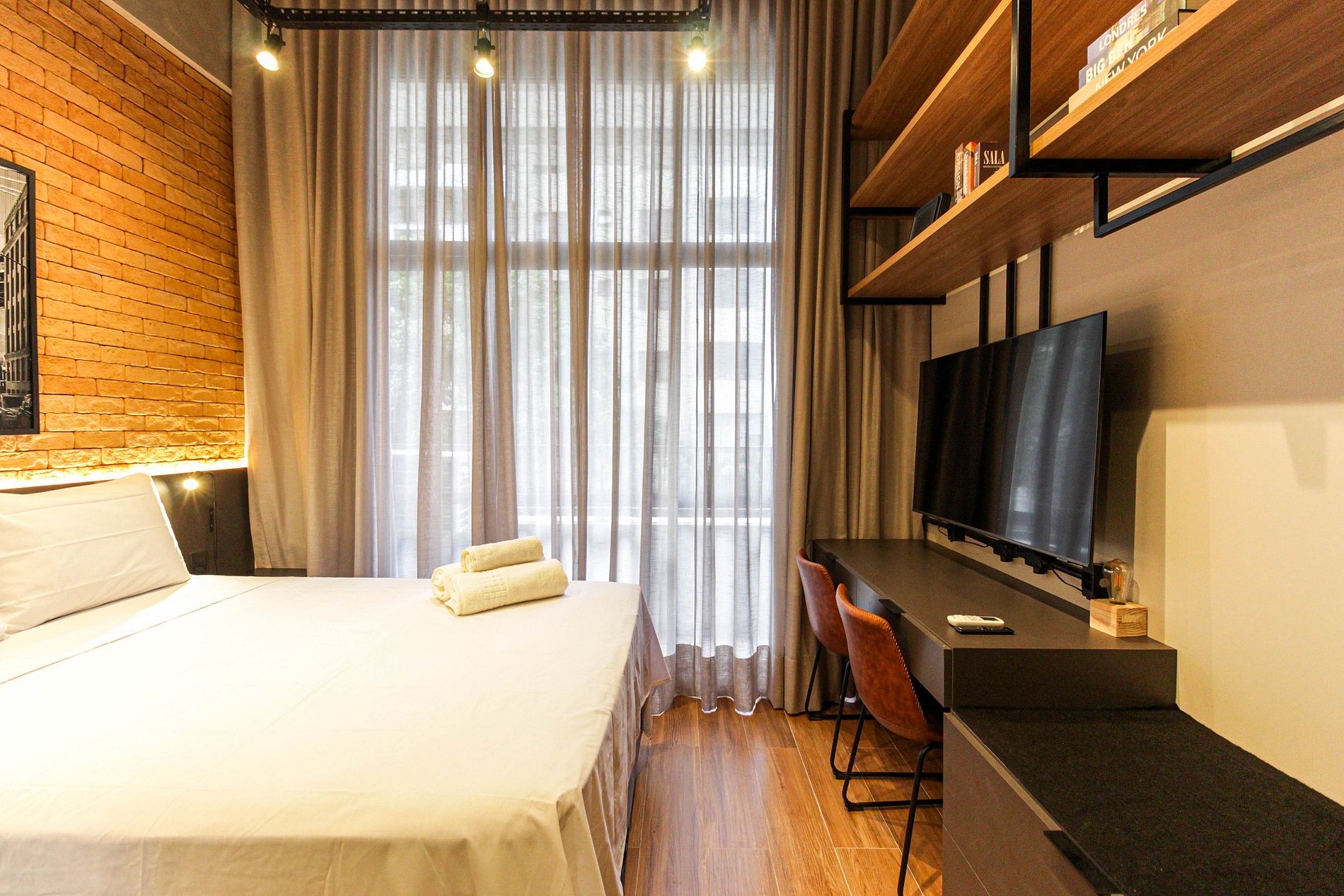 Decorado com enxoval de hotelaria, cama queen, geladeira e ar-condicionado, oferece conforto para até duas pessoas. O condomínio dispõe de lavanderia OMO, piscina, academia e coworking. A 500 metros da Estação Brooklin do Metrô, facilita o acesso à cidade. Próximo ao Shopping Morumbi e à Avenida Luís Carlos Berrini, está cercado por restaurantes renomados como o Vicolo Nostro e o Portucho. Hospitais de excelência, como o Sírio-Libanês, estão a uma curta distância.