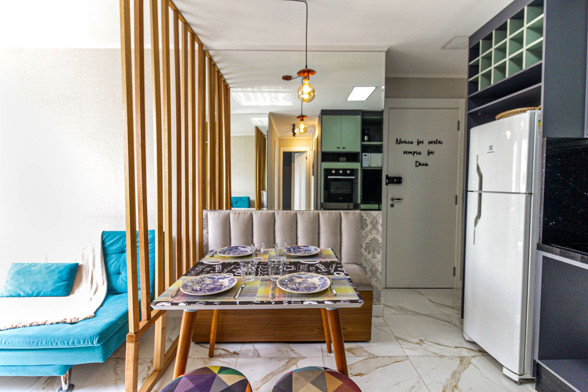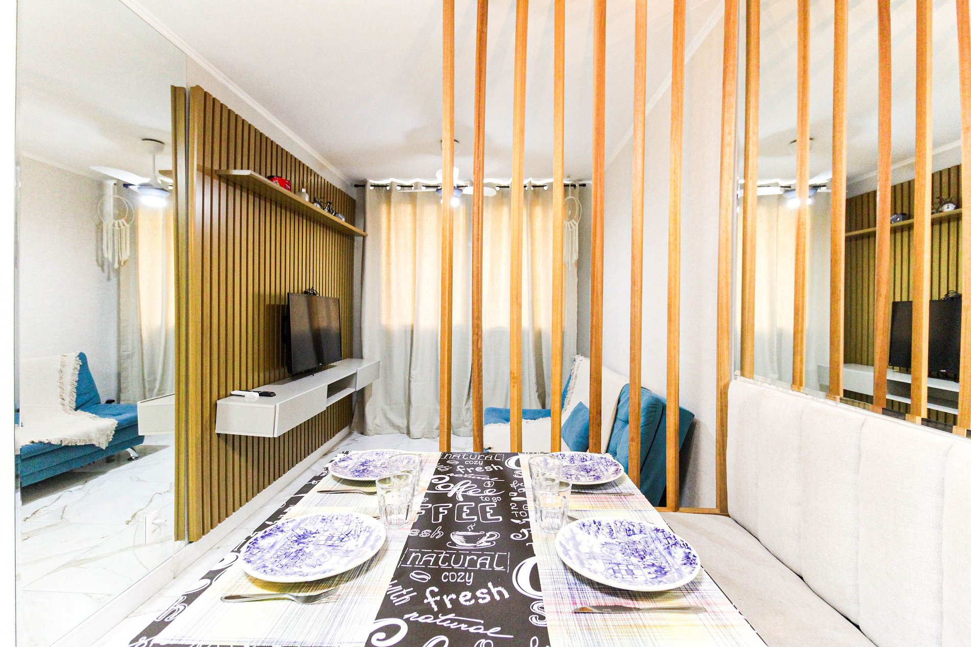 Acomoda até 6 pessoas: suíte com cama queen, quarto com duas camas de solteiro e sofá-cama na sala. Conta com Wi-Fi, enxoval completo de hotelaria, cozinha equipada e sala aconchegante com TV. Condomínio moderno com piscina, academia, área de lazer e segurança 24h. Excelente localização, em frente ao metrô, com mercados, farmácias e restaurantes próximos. Ideal para famílias, amigos ou viagens a trabalho.
