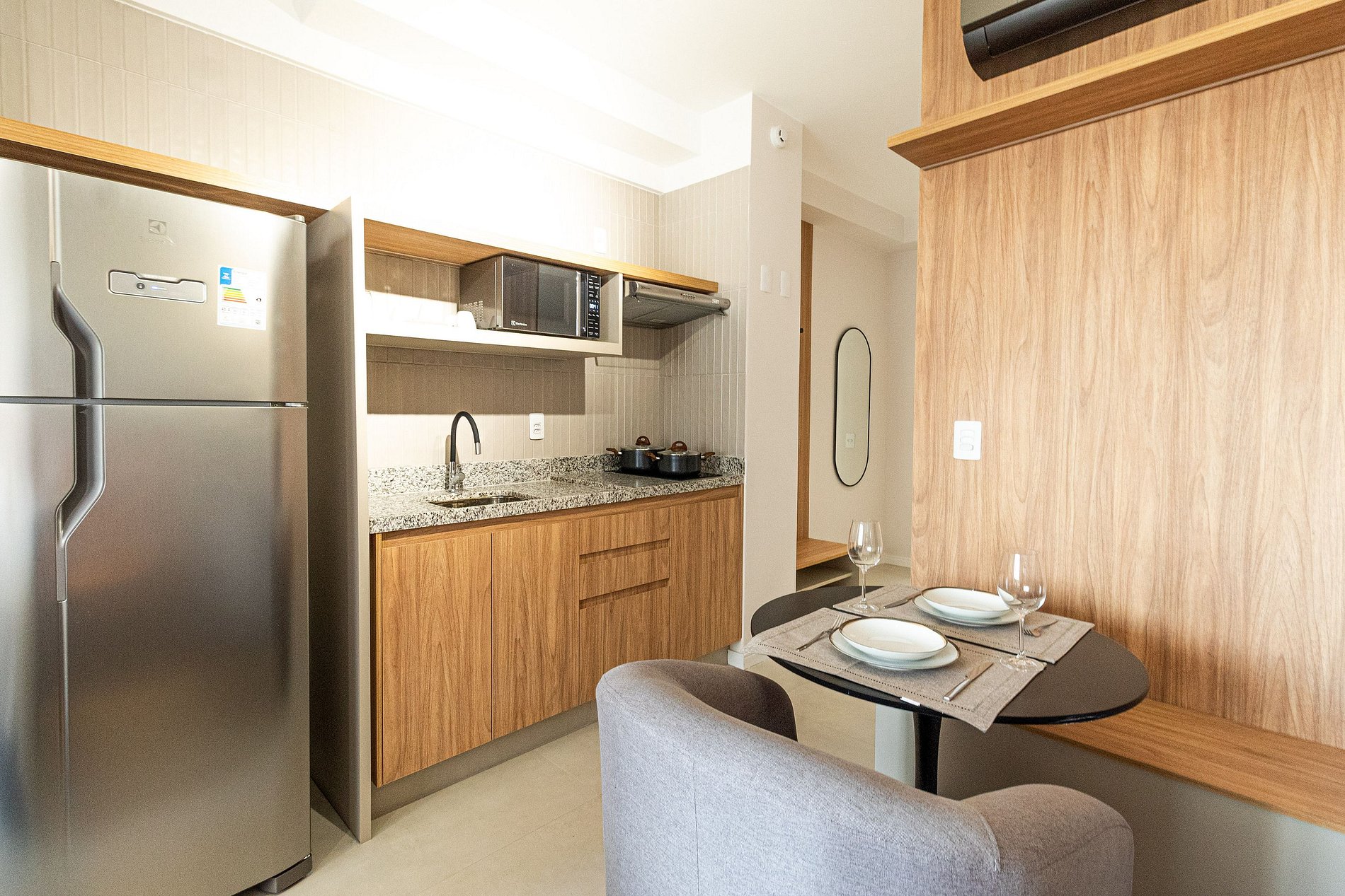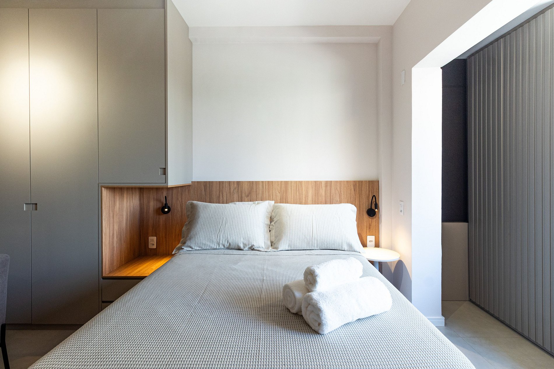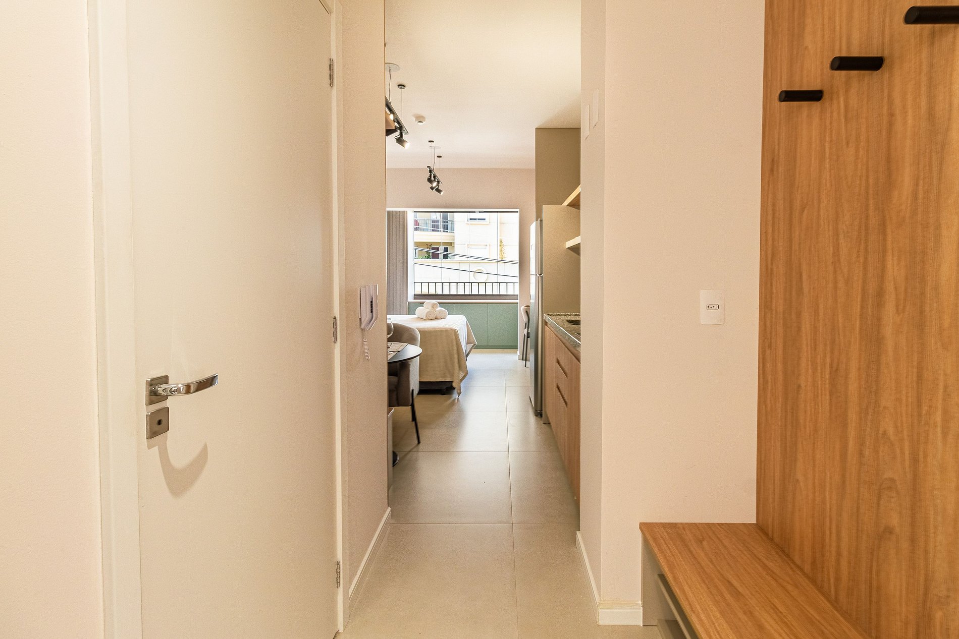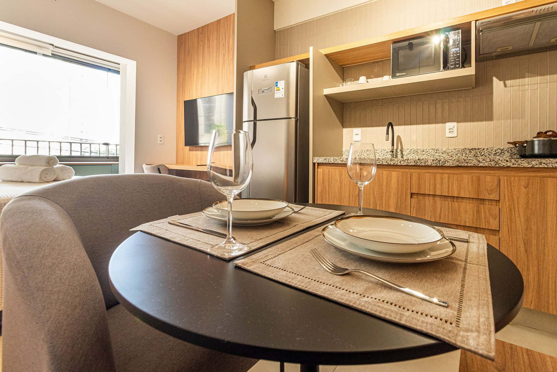 Studio moderno na Vila Nova Conceição, ao lado do Parque Ibirapuera. Ideal para duas pessoas, oferece ar-condicionado, armários espaçosos, enxoval de hotelaria, mesa de jantar e cozinha equipada e portaria 24h. Próximo a restaurantes renomados, mercados, farmácias e com fácil acesso ao metrô e principais vias da cidade.