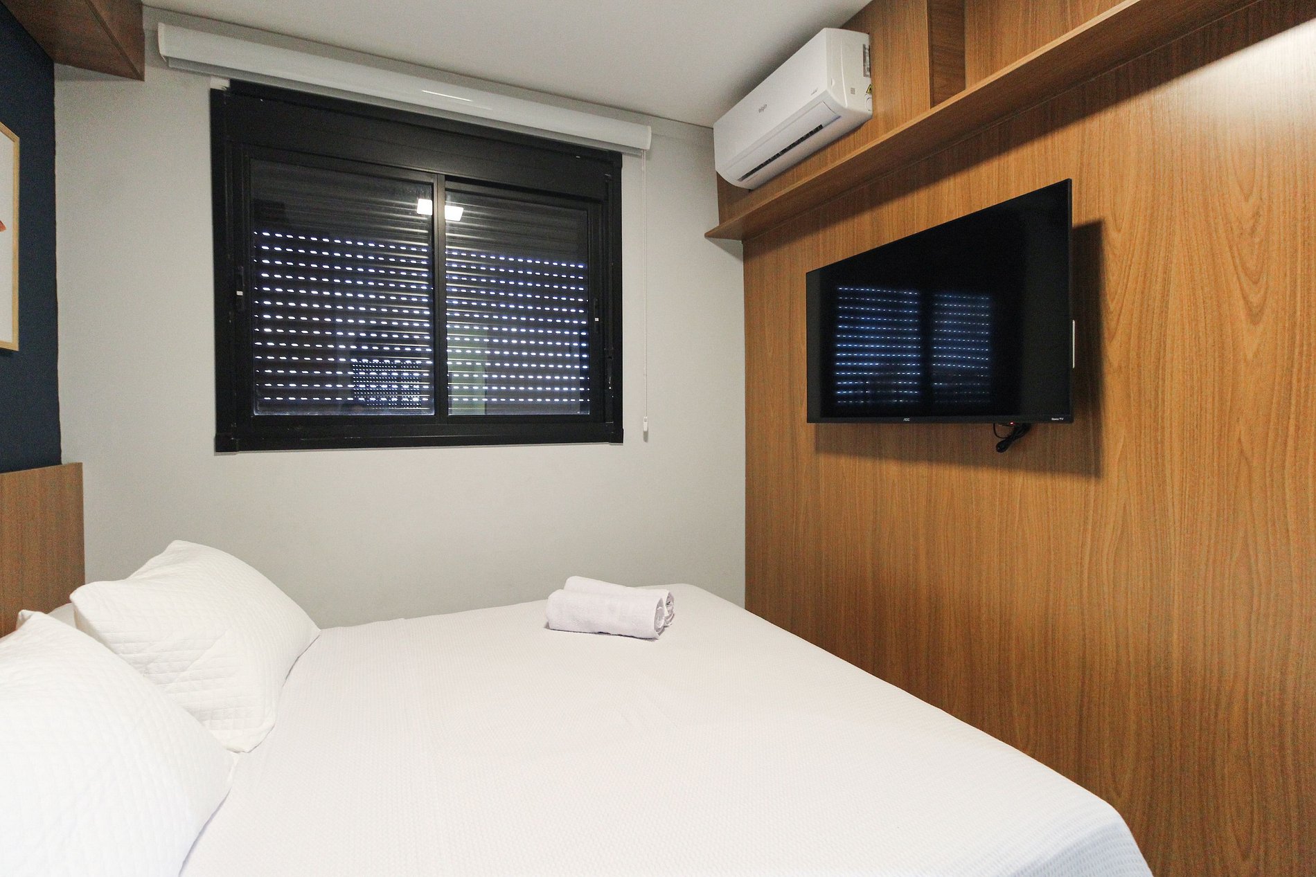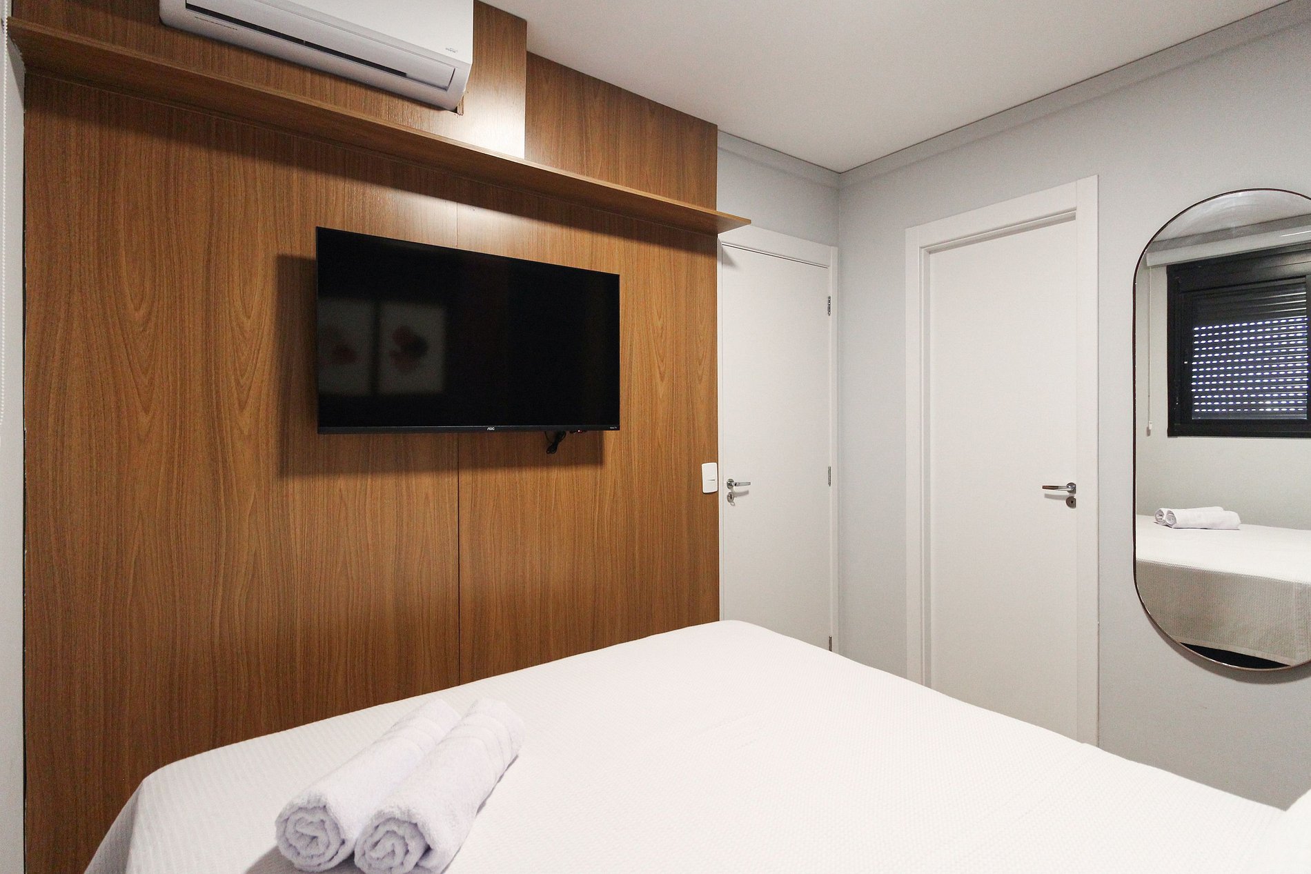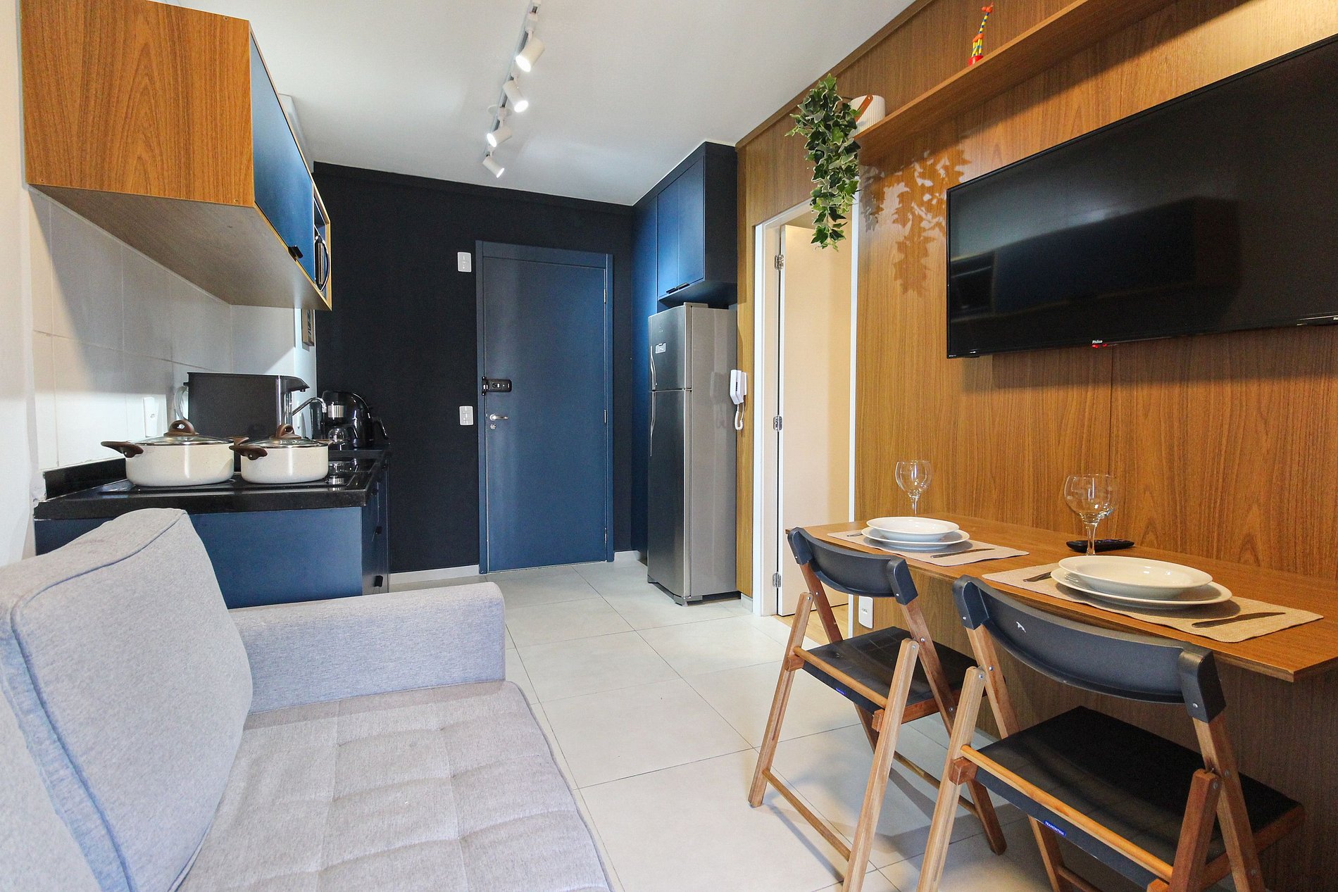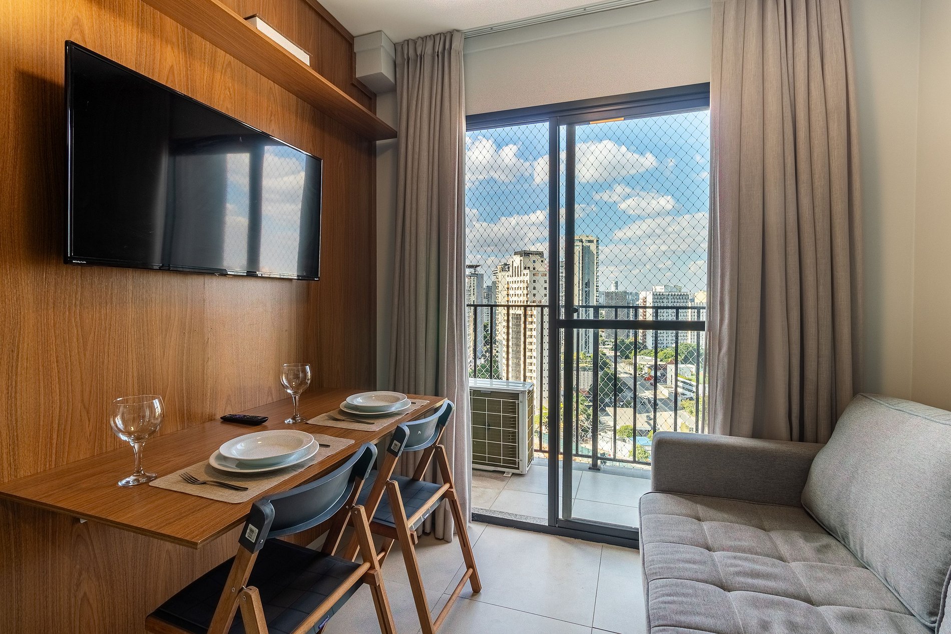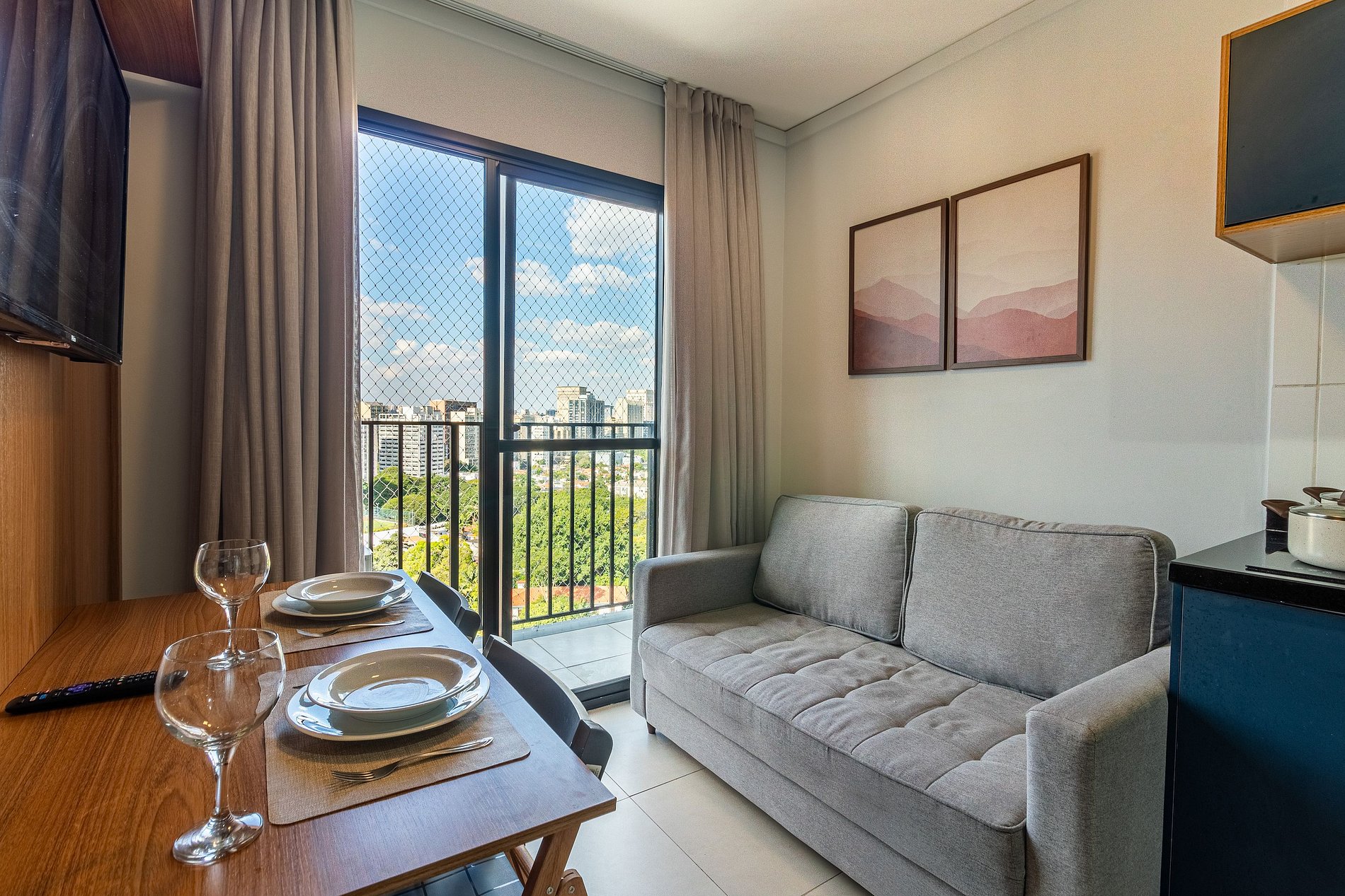 Apto completo em frente ao Shopping Eldorado! Acomoda até 4 pessoas com cama de casal, sofá‑cama, ar‑condicionado, varanda agradável e cozinha funcional. O prédio oferece piscina, academia, lavanderia e segurança. Localização excelente: 8 min do metrô Faria Lima, fácil acesso à Av. Rebouças e Marginal Pinheiros. Perto de bares, restaurantes, hospitais e pontos turísticos como a Praça Benedito Calixto.