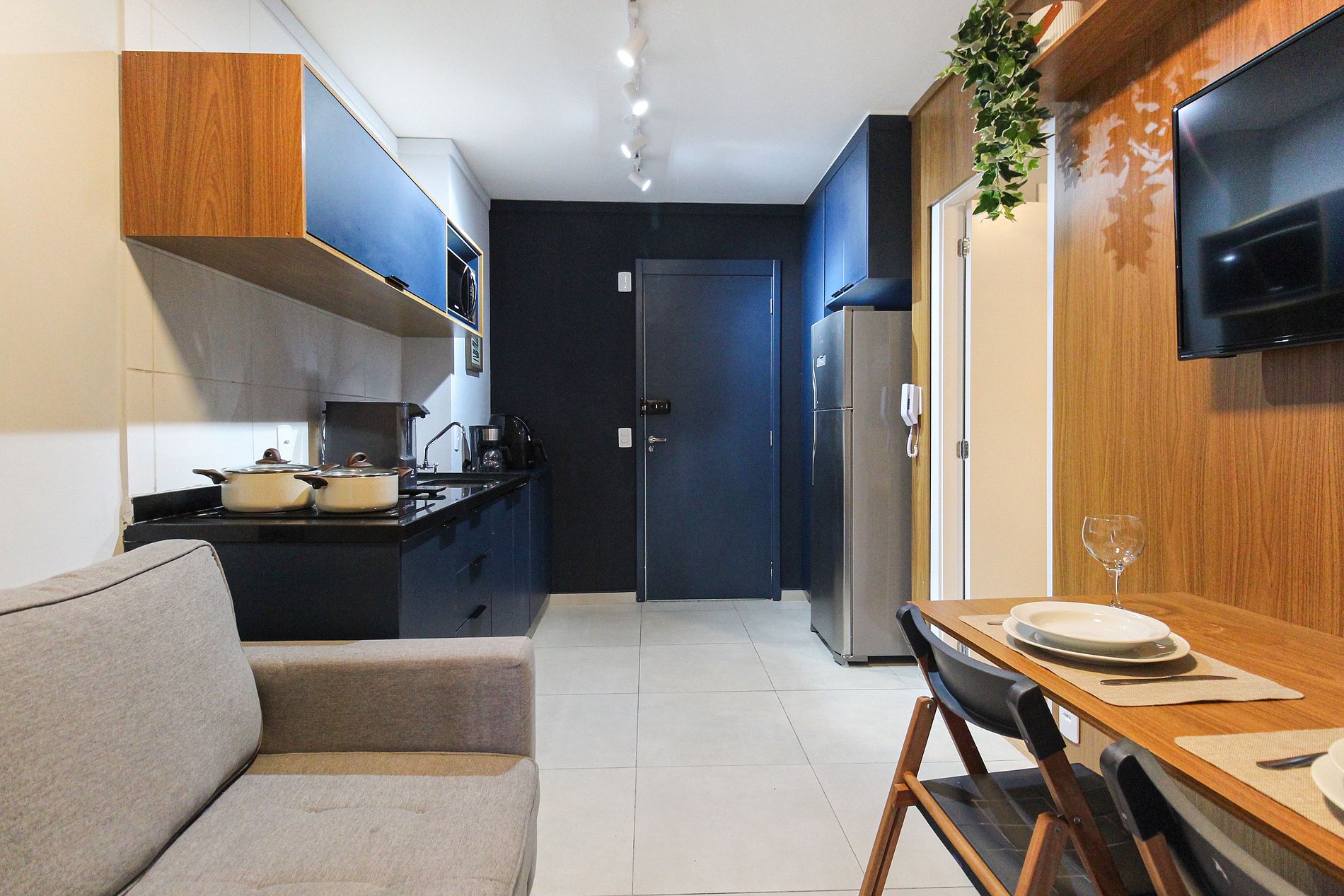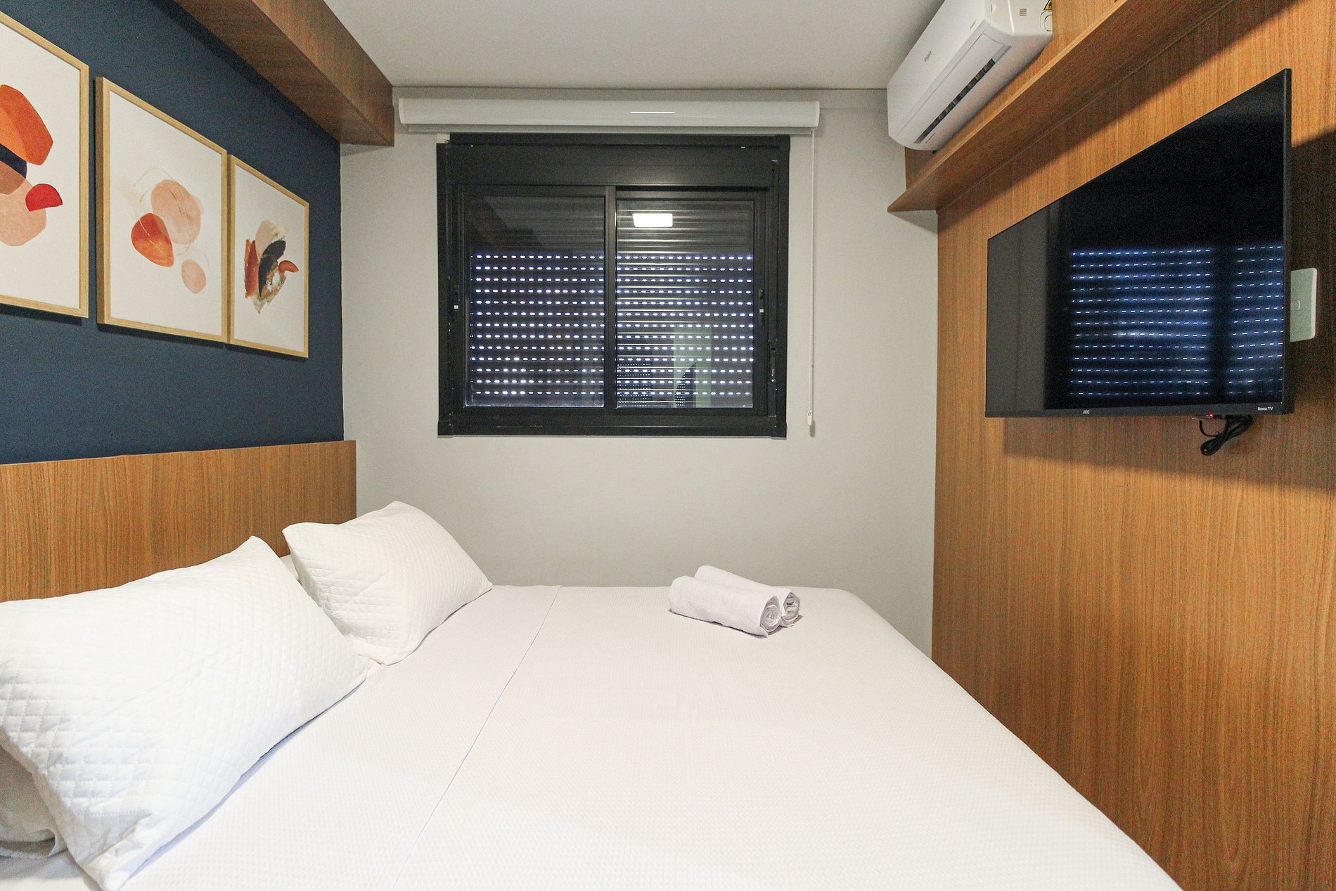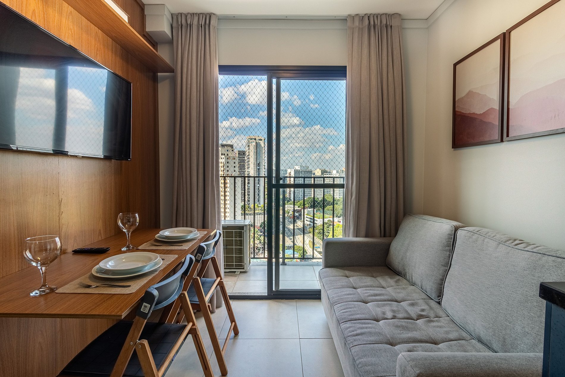 Apto completo em frente ao Shopping Eldorado! Acomoda até 4 pessoas com cama de casal, sofá‑cama, ar‑condicionado, varanda agradável e cozinha funcional. O prédio oferece piscina, academia, lavanderia e segurança. Localização excelente: 8 min do metrô Faria Lima, fácil acesso à Av. Rebouças e Marginal Pinheiros. Perto de bares, restaurantes, hospitais e pontos turísticos como a Praça Benedito Calixto.