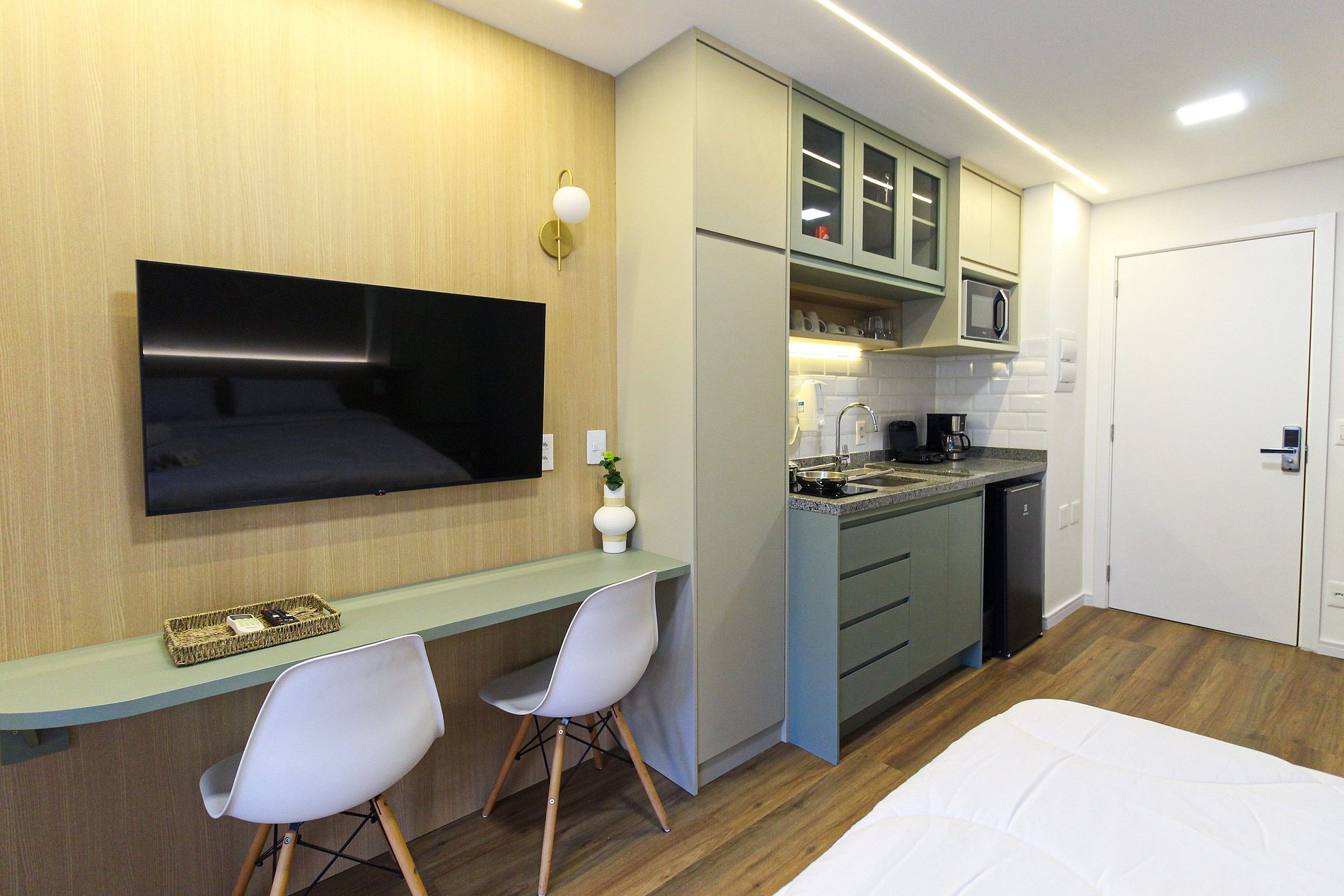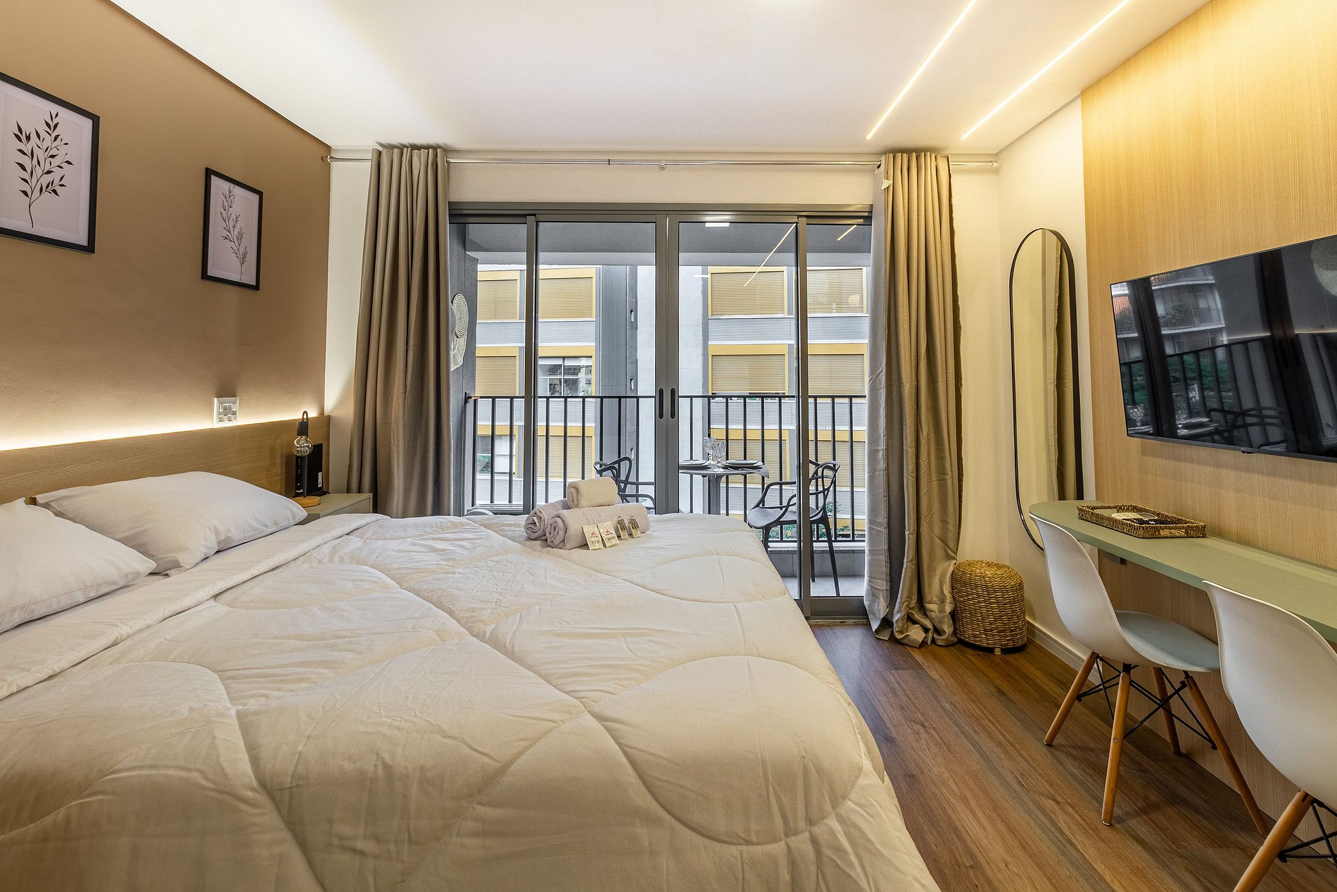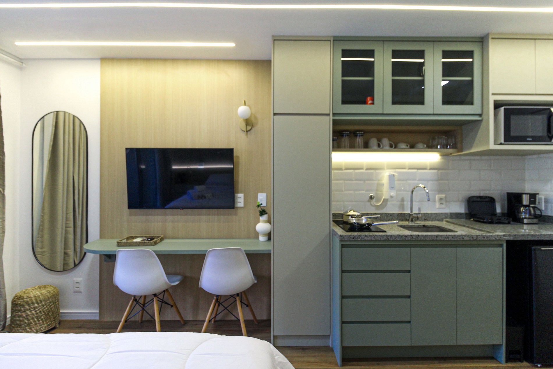 Studio acolhedor para duas pessoas, com cama de casal, ar‑condicionado e varanda privativa. Desfrute de piscina, academia e lavanderia no condomínio. Localizado na Rua da Harmonia, a poucos passos do metrô Vila Madalena, Beco do Batman, bares, cafés e centros culturais. Ideal para quem quer conforto, praticidade e explorar a vida boêmia e criativa da cidade.