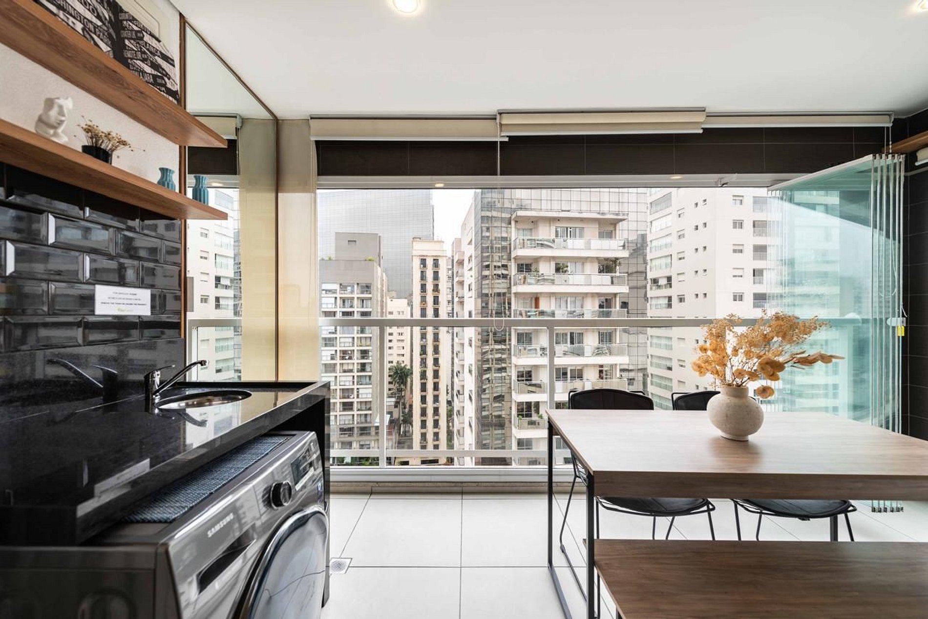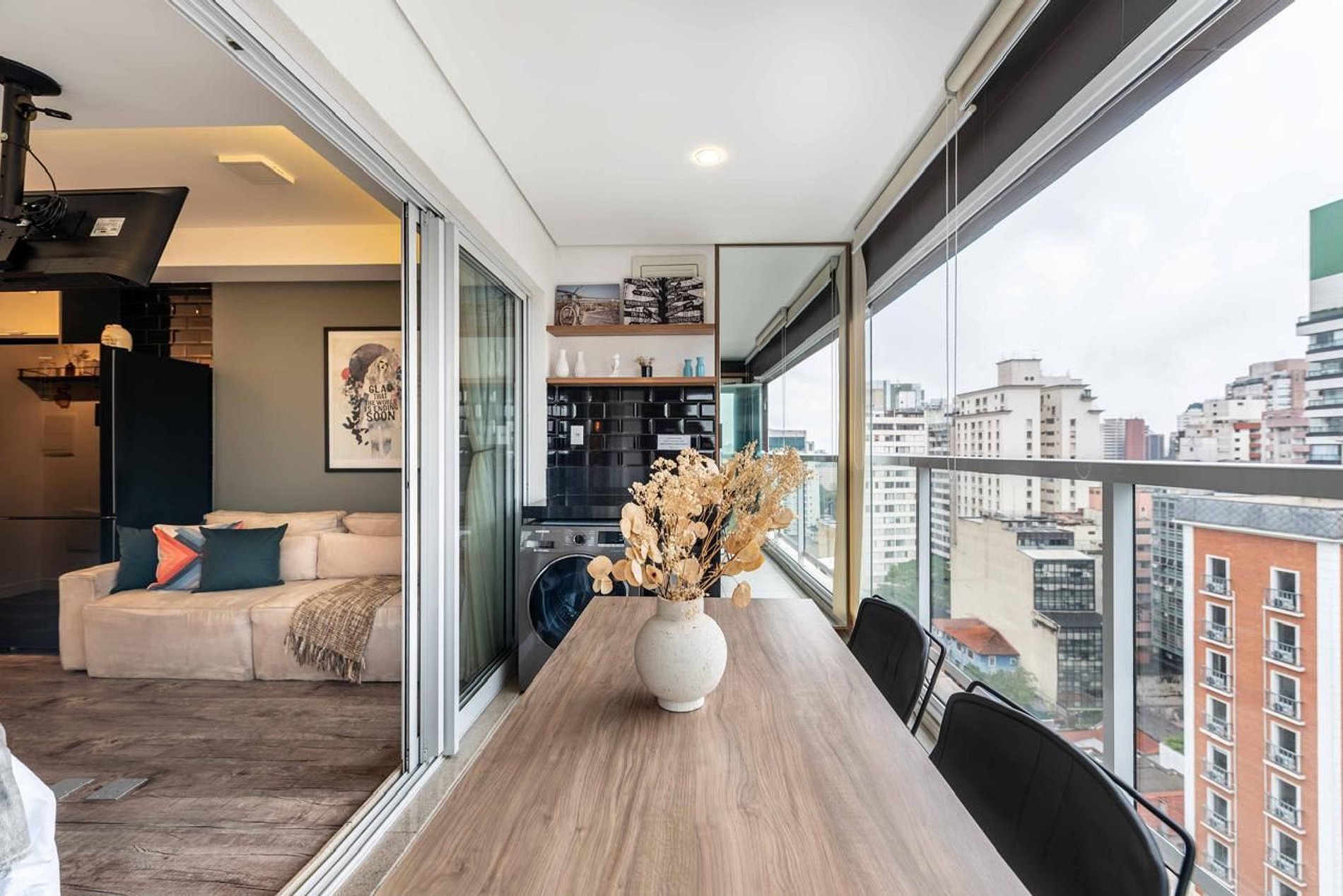 - Varanda privativa, ótima para relaxar com vista da rua Augusta.