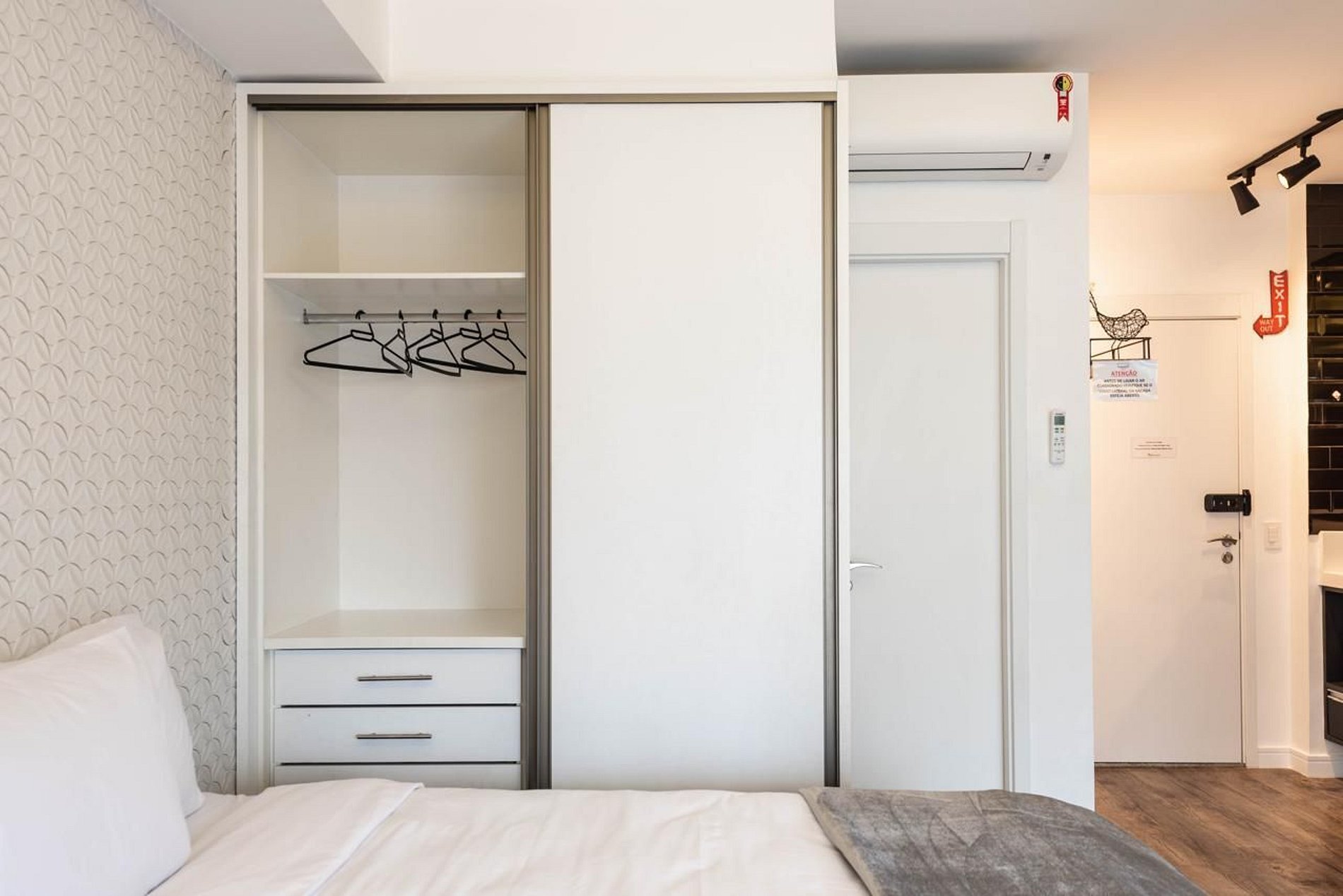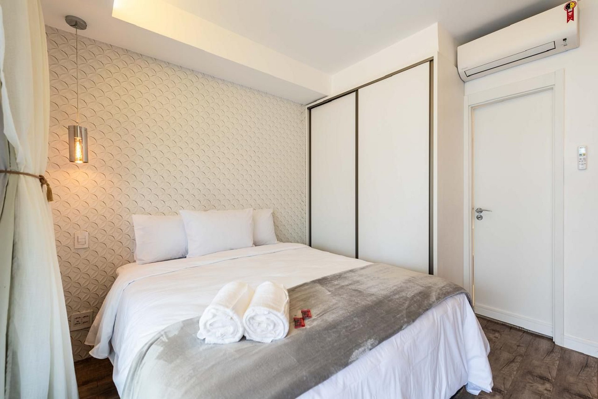 - Suíte aconchegante com cama de casal de excelente padrão e ar-condicionado split.