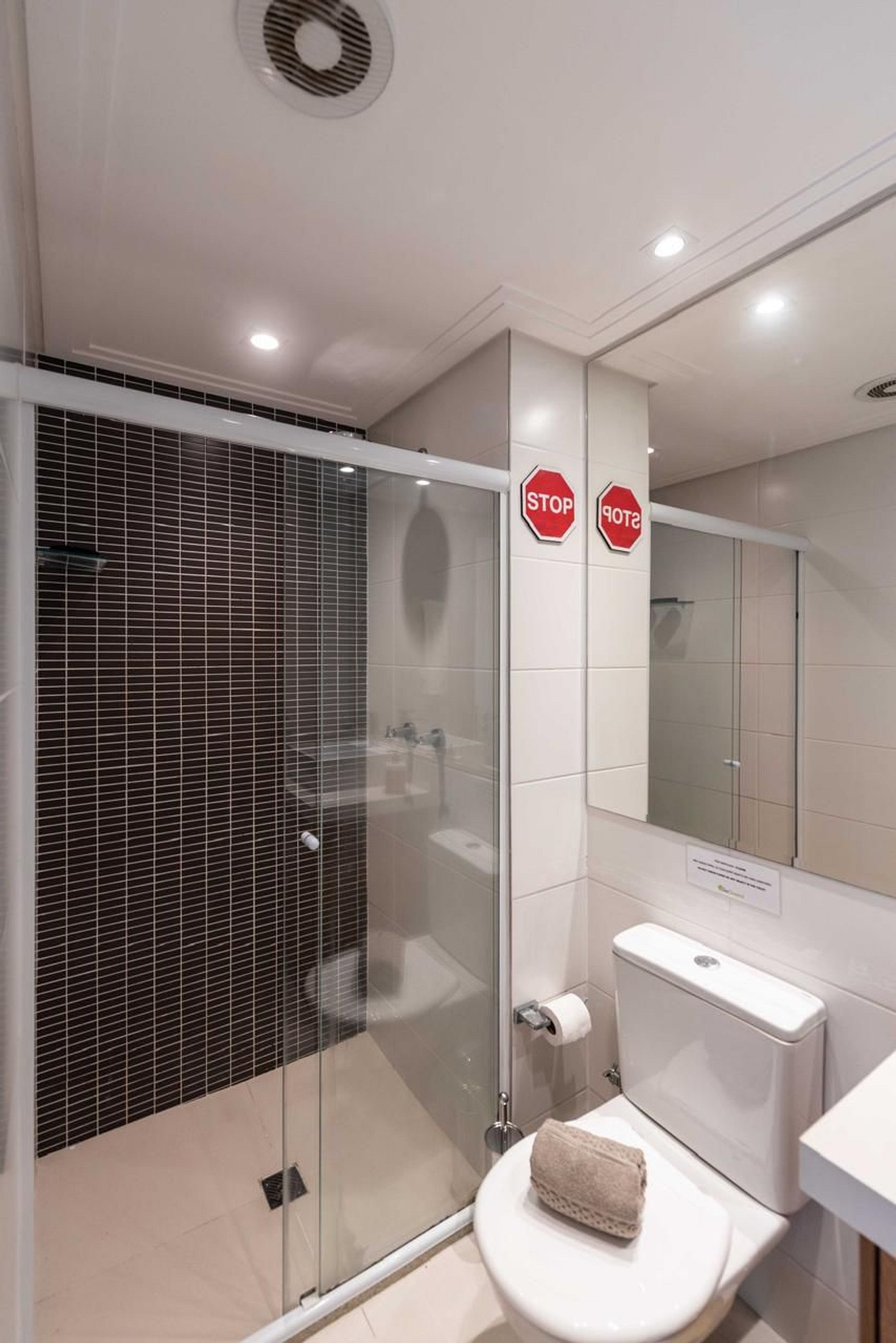 Toalhas manchadas com maquiagem: É proibido utilizar as toalhas da propriedade para remoção de maquiagem. Em caso de manchas, será cobrado o valor de R$ 50,00 por toalha danificada.
